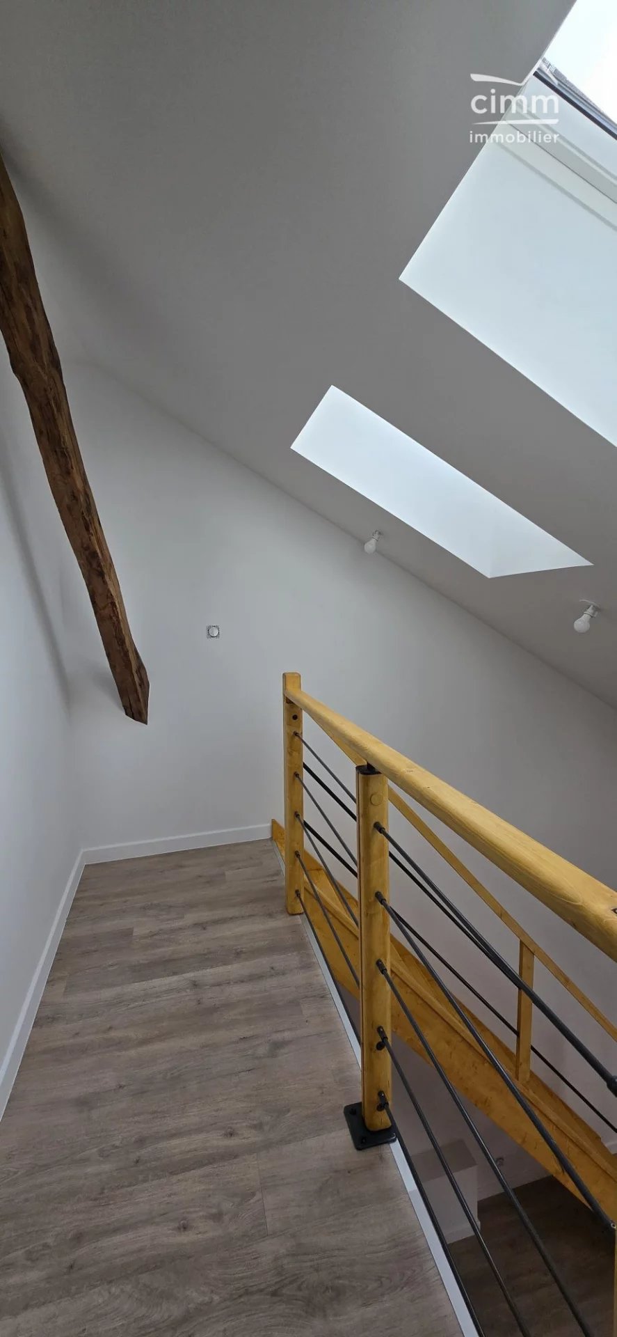 Il dispose au rdc d'une cuisine équipée ouverte sur le salon et une salle de bains avec coin buanderie. A l'étage on retrouve deux chambres et un wc.