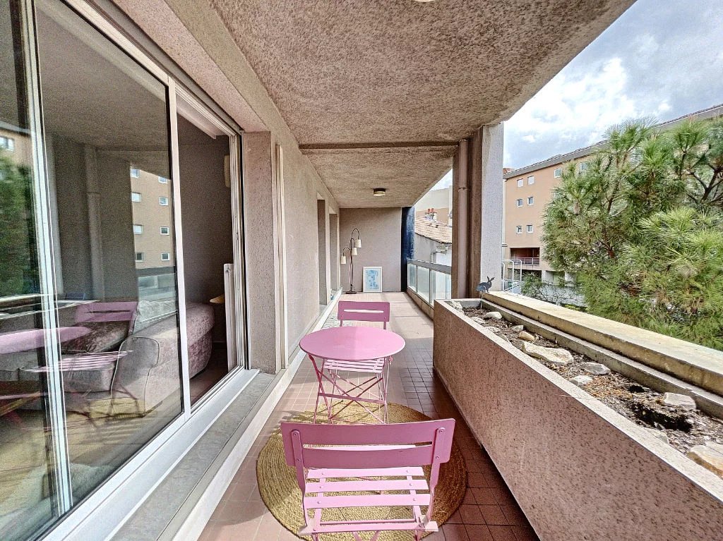 Les Angles - Sur le plateau de Bellevue - au calme, Résidence le Rive droite - à vendre au 1er étage avec ascenseur, appartement de 56 m² avec terrasse de 19 m² - cuisine séparée aménagée et équipée, grande pièce de vie, chambre, salle d'eau, wc séparé et place de parking privative en sous-sol.