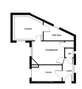 Entrée, Cuisine équipée, Séjour lumineux avec placard intégré, Chambre au calme, wc indépendant, Salle de douche moderne et cave en sous-sol.