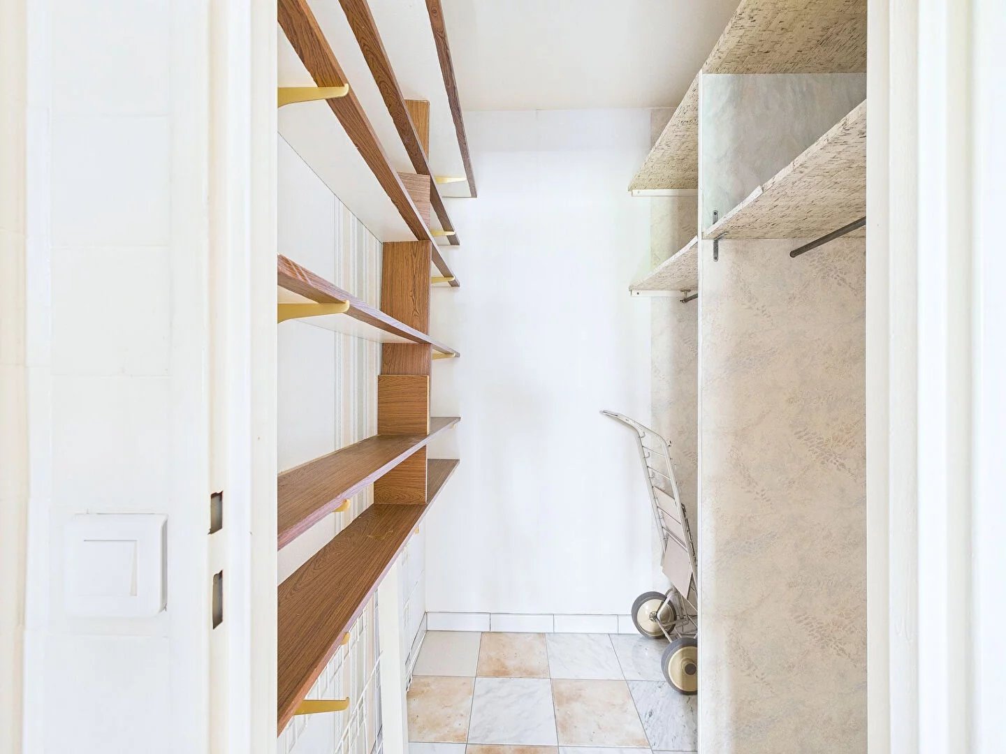 Actuellement composé d'une entrée, un séjour (18.2m²) avec balcon de 5m² exposé sud ouest, une cuisine indépendante, 2 chambres (9.9 et 12.6 m²), une salle d'eau, des WC et beaucoup de rangements.