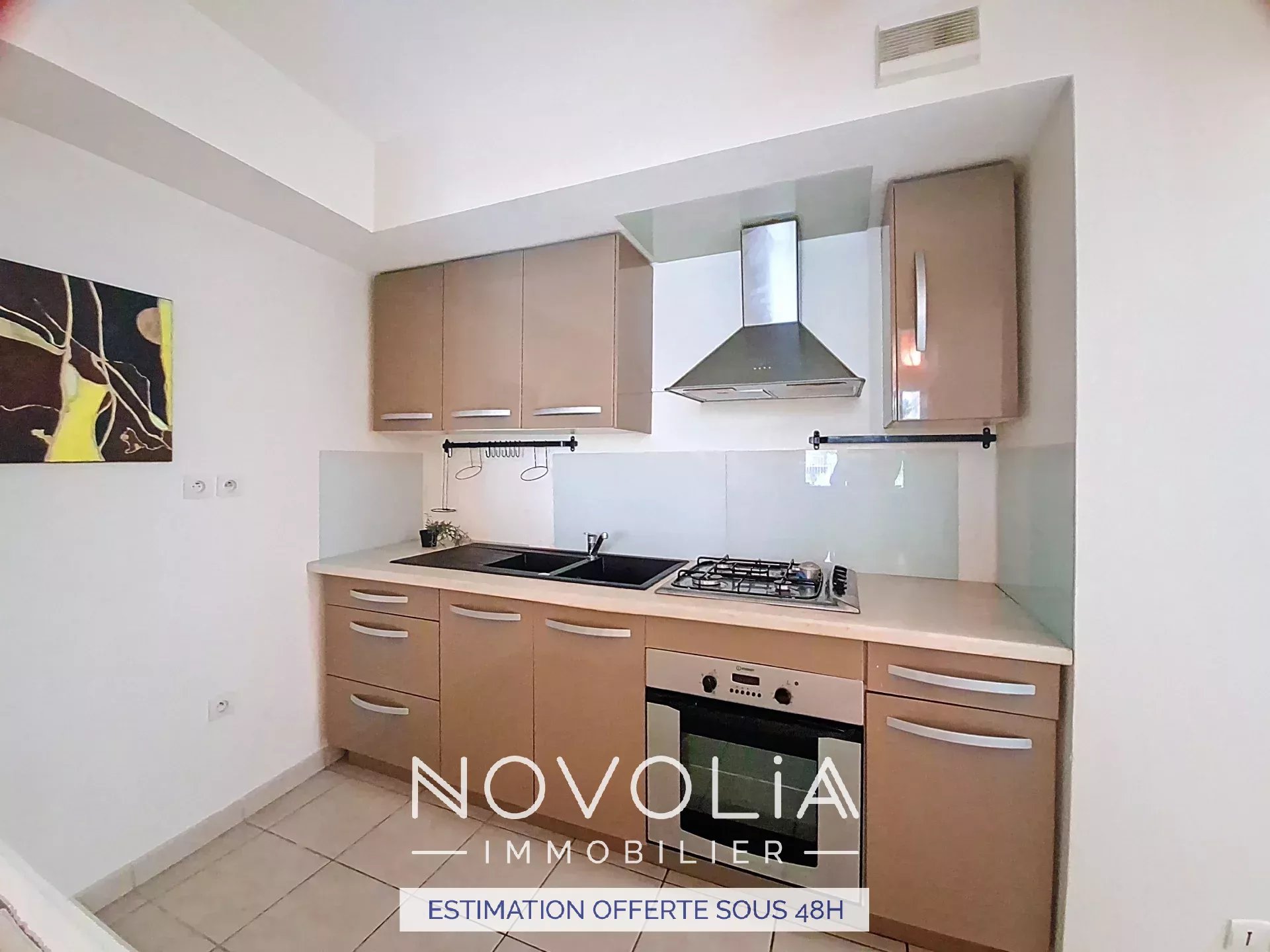 Joli T2 de 48 m² situé au 1er étage dans un immeuble standing construit en 2008 avec ascenseur. L'appartement donne sur une coursive avec une vue en surplomb sur le jardin arboré de la copropriété.