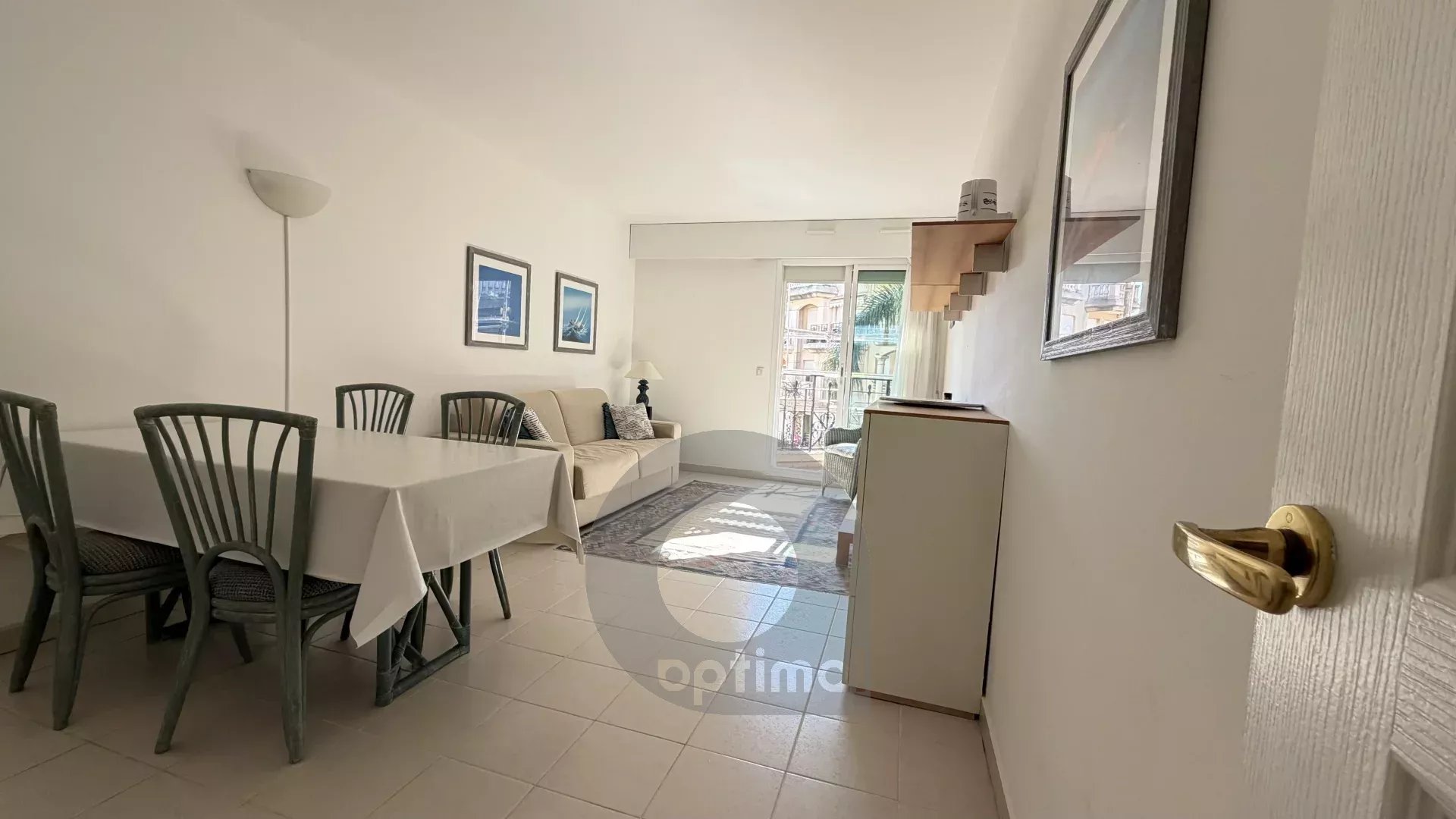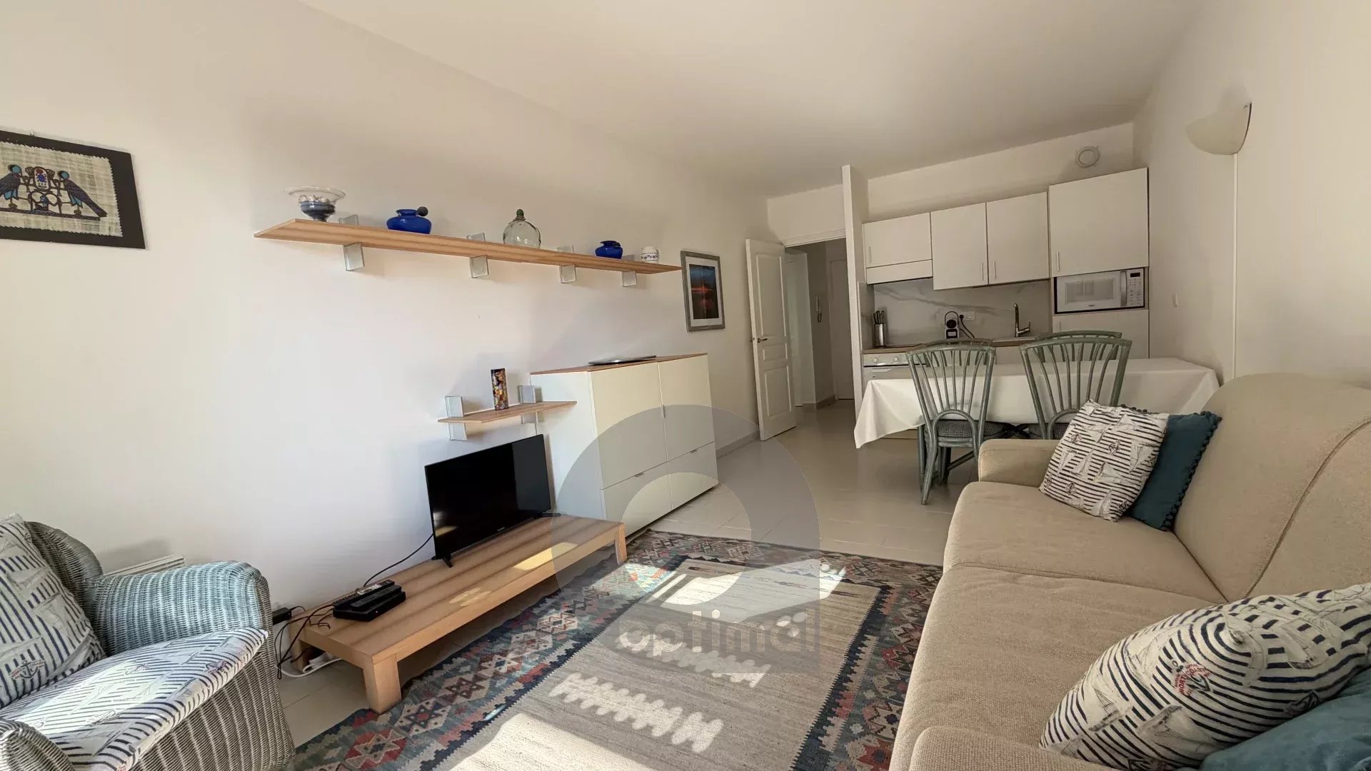 L’appartement se compose d’un séjour lumineux avec cuisine équipée, ouvrant sur un balcon offrant une agréable vue sur les jardins de la cour intérieure et petite échappée mer, l'idéal pour profiter d’un cadre de vie paisible en plein cœur de la ville.