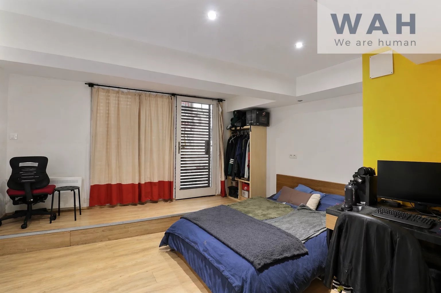 D'une superficie de 109 m2, il se situe au 1er étage d'une petite copropriété. Il se compose d'une pièce de vie avec cuisine ouverte, ainsi que de deux chambres situées à ce niveau.