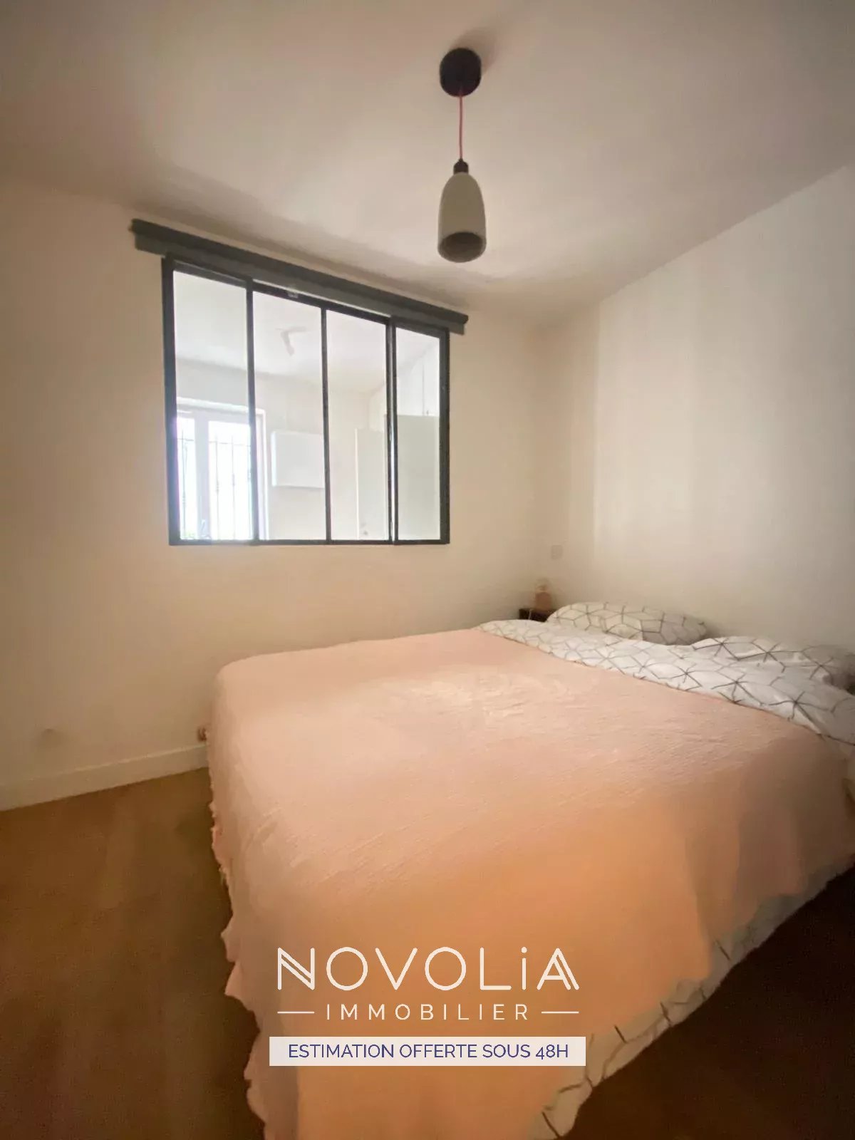 L’espace séjour ouvert sur la cuisine est doté de 2 fenêtres, la chambre traitée en verrière dispose d’un rangement intégré. La salle d’eau et son espace buanderie complète le tout.