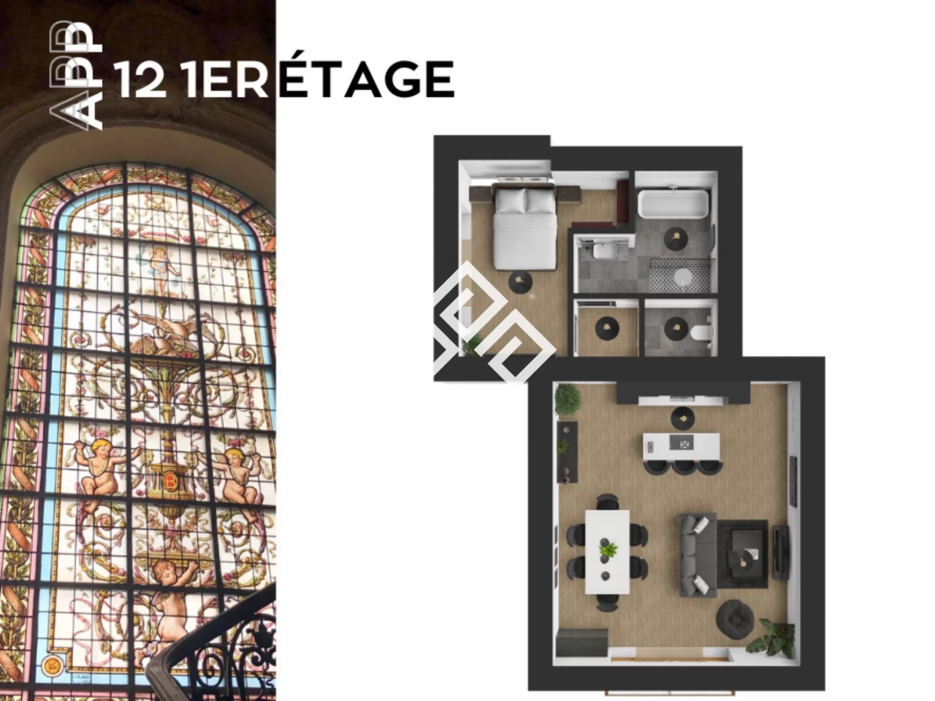 Ces logements uniques allient le charme de l'ancien au confort contemporain, avec des prestations soignées et de grande qualité. Chaque appartement dispose d'une terrasse, d'une cave et d'une place de parking privative. Dès l'entrée, vous serez séduit par l'architecture, les moulures d'époque et un magnifique vitrail qui témoignent du cachet authentique des lieux.