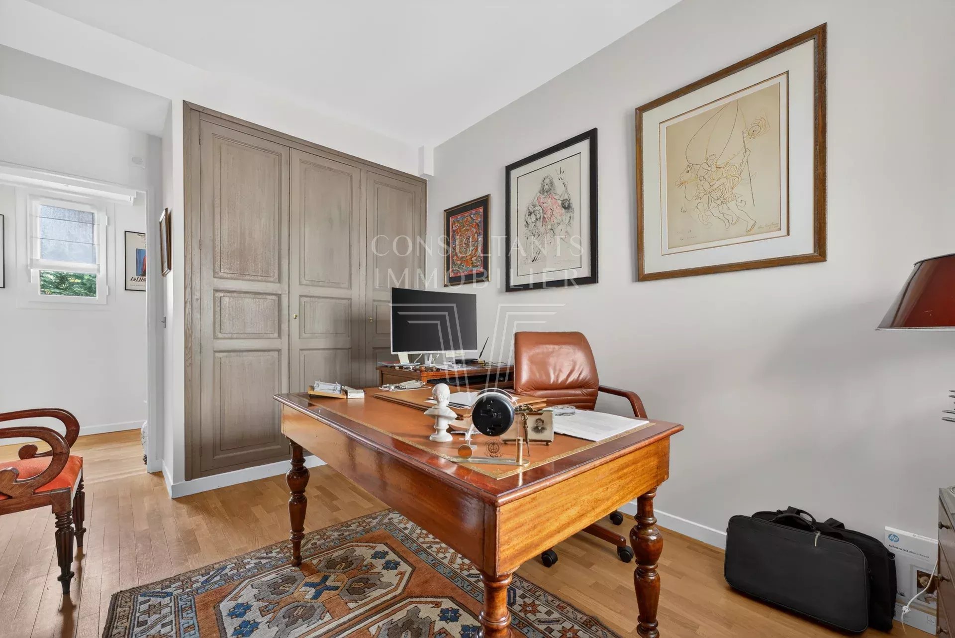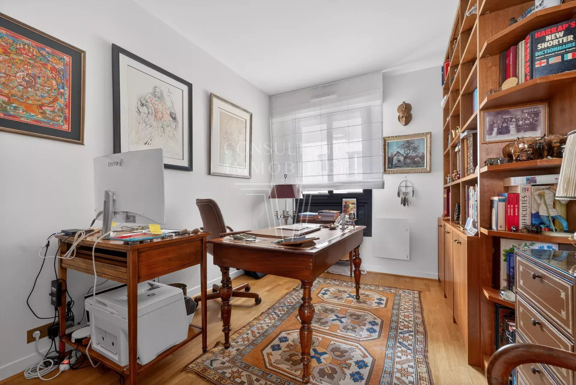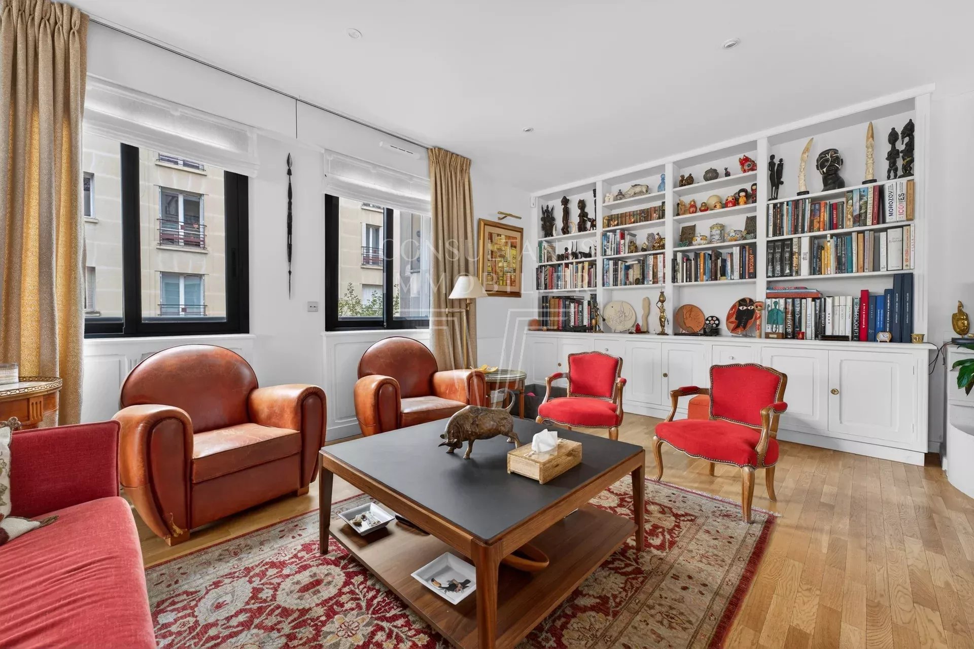 Au deuxième étage d'un immeuble des années 90 de très bon standing avec une gardienne, situé dans une rue calme et prisée à proximité du bois de Boulogne, de tous les commerces, écoles et crèches et des transports :