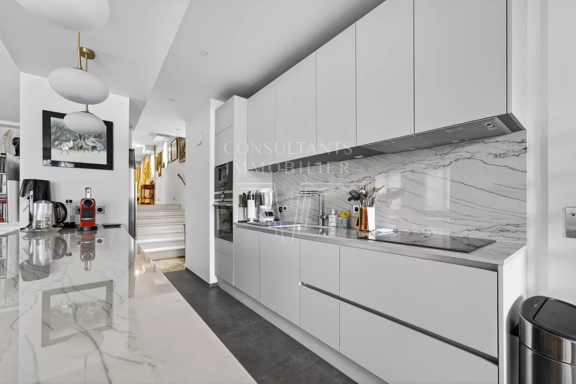 Il comprend une entrée, une vaste réception ensoleillée de 55 m² avec salle à manger d'angle se prolongeant par le balcon par de grandes baies vitrées, une cuisine ouverte, une chambre disposant de placards et penderies, une salle de douche, un dressing, une chambre parentale dotée de placards sur mesure, ouverte sur un balcon avec une seconde grande salle de douche, une buanderie et des toilettes séparées.