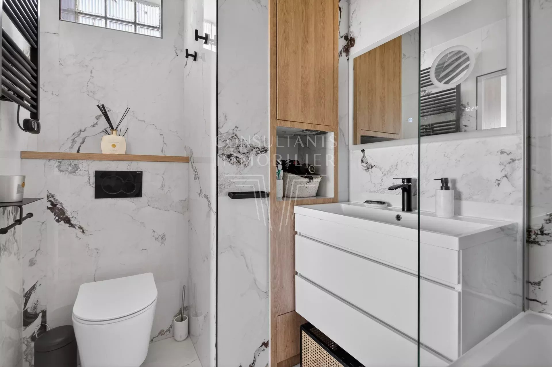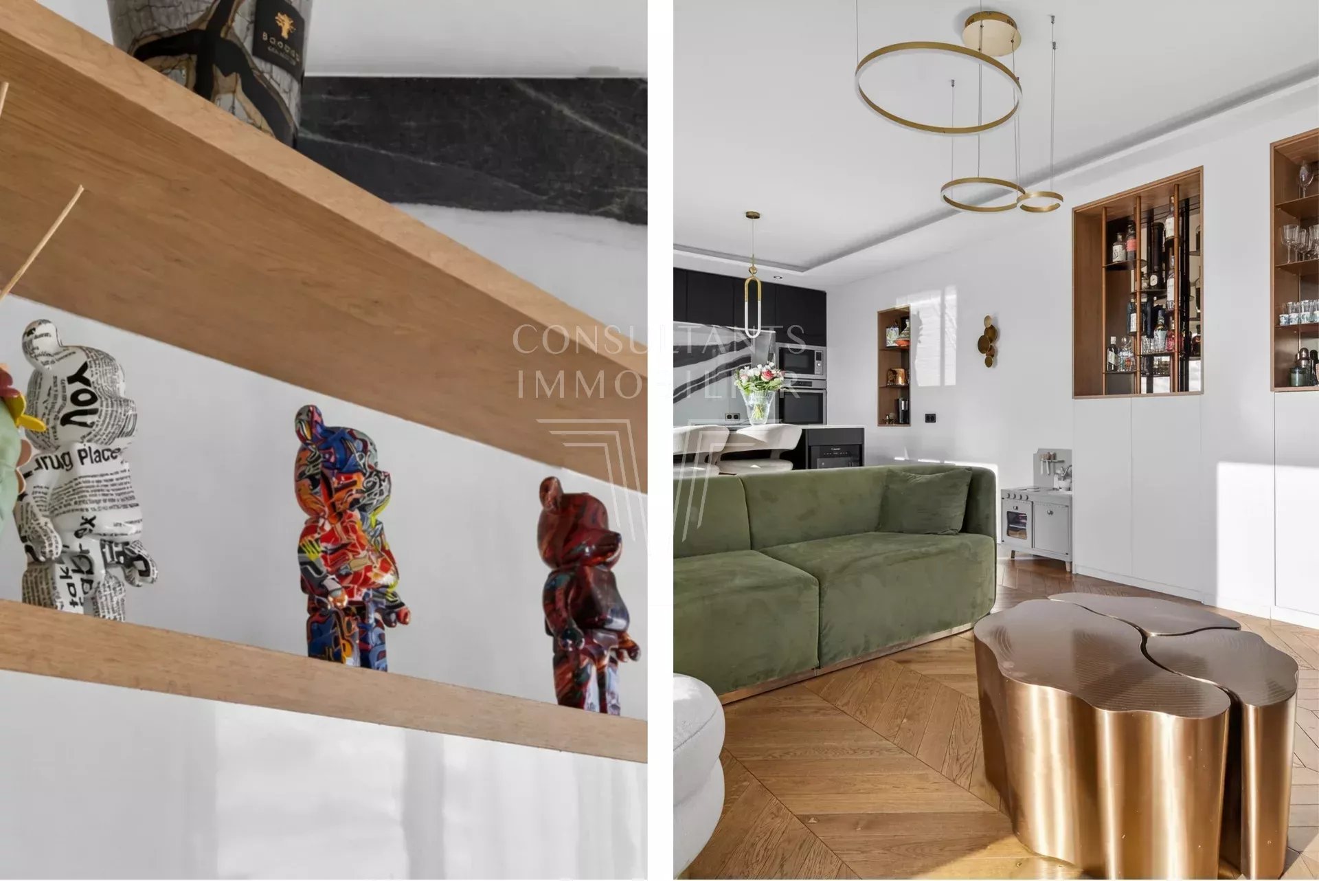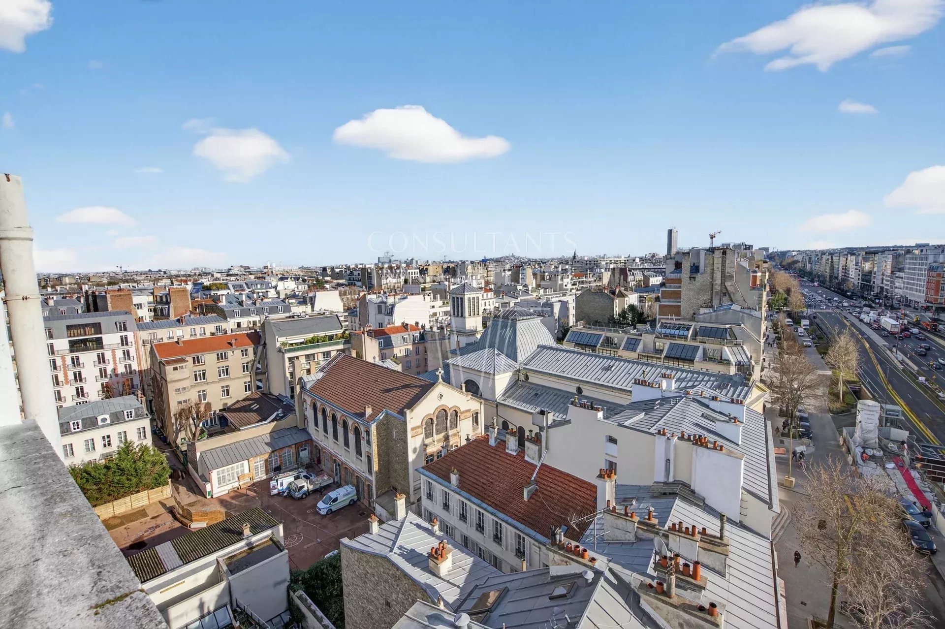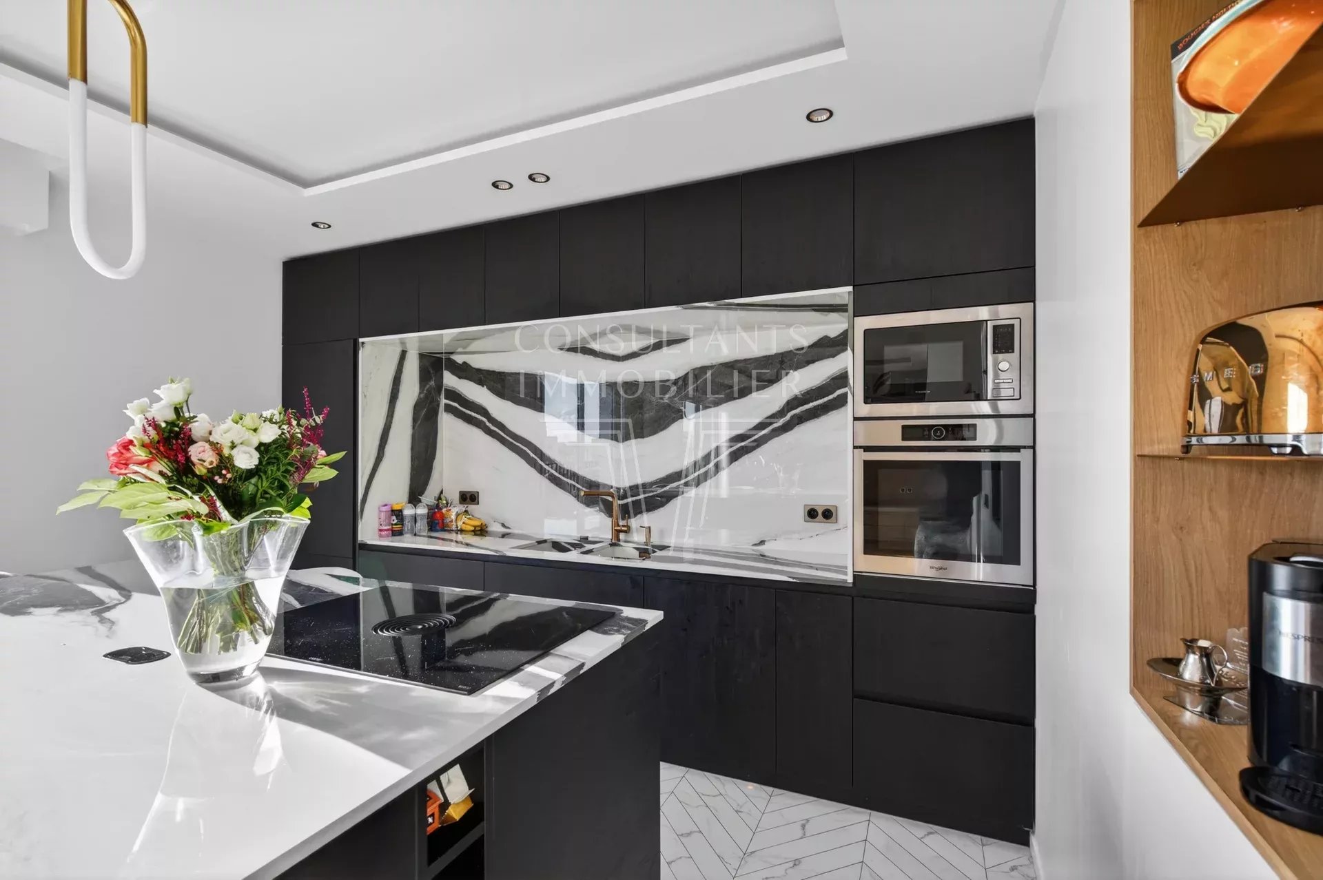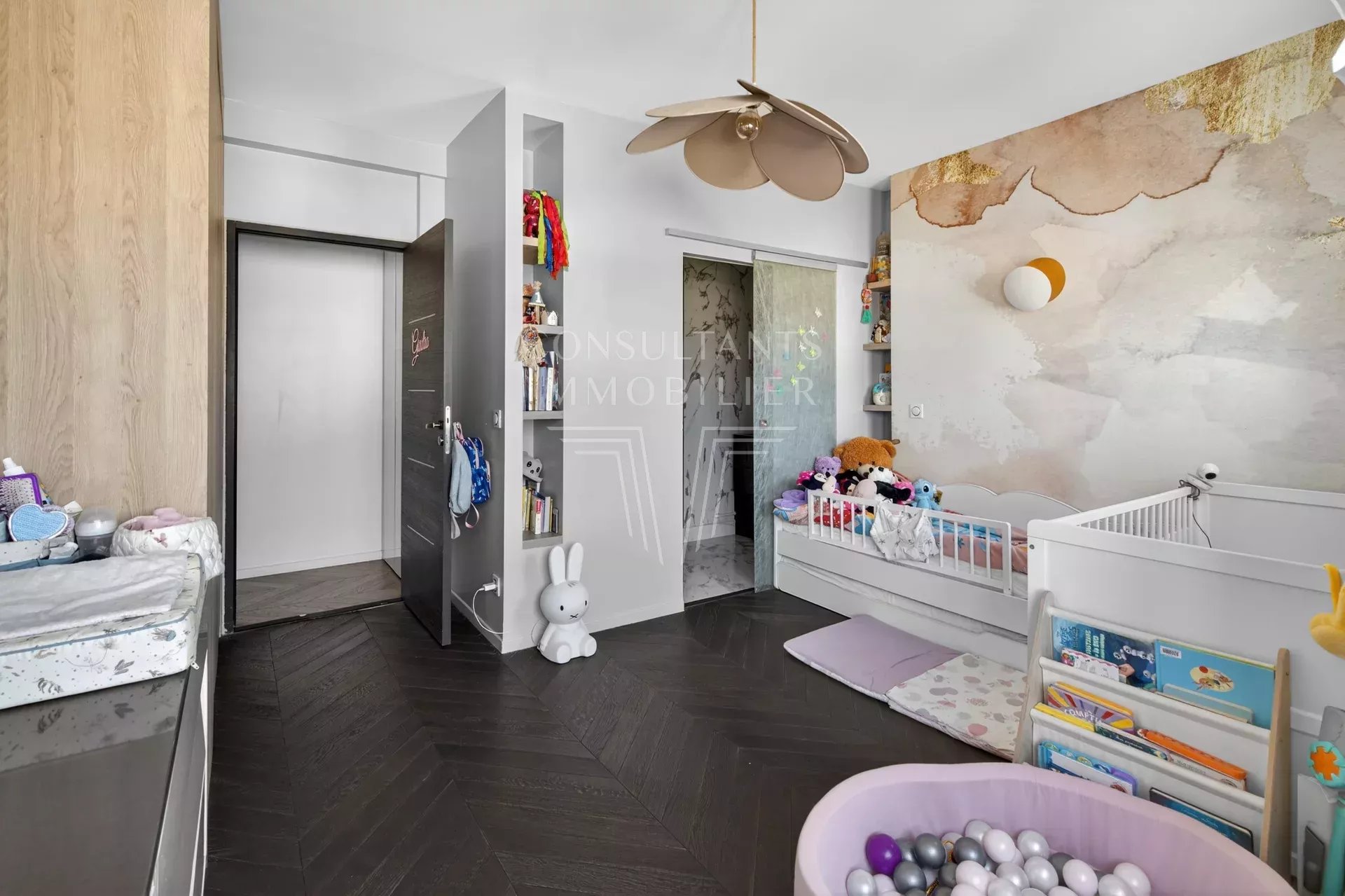 1 890 000 €VUES PANORAMIQUES. DERNIER ETAGE TERRASSE. Appartement situé au 8ème et 9ème étage, d'un immeuble récent, offrant des vues panoramiques de tous les cotés. Appartement REFAIT PAR ARCHITECTE, traversant et extrêmement lumineux. D'une surface de 91m² avec 111m² d'extérieur. Il se compose d'une entrée, deux chambres avec de nombreux rangements, deux salles de douche dont une avec toilettes, des toilettes invités, un séjour exposé plein sud, cuisine américaine toute équipée, cave à vin, ilot central et un terrasse de plain pied de 20m² au niveau du séjour. A l'étage supérieur, accessible par escalier privatif, une véranda de 28m² avec une cuisine murale, aménagée puis tout le toit terrasse au calme, sans aucun vis à vis et vues exceptionnelles !