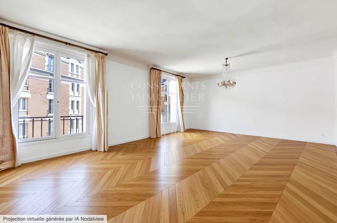 Au quatrième étage d'une belle copropriété des années Trente de grand standing avec gardien et parties communes élégantes, située dans une rue calme à deux pas des commerces, du métro L1 et à cinq minutes du bois de Boulogne :