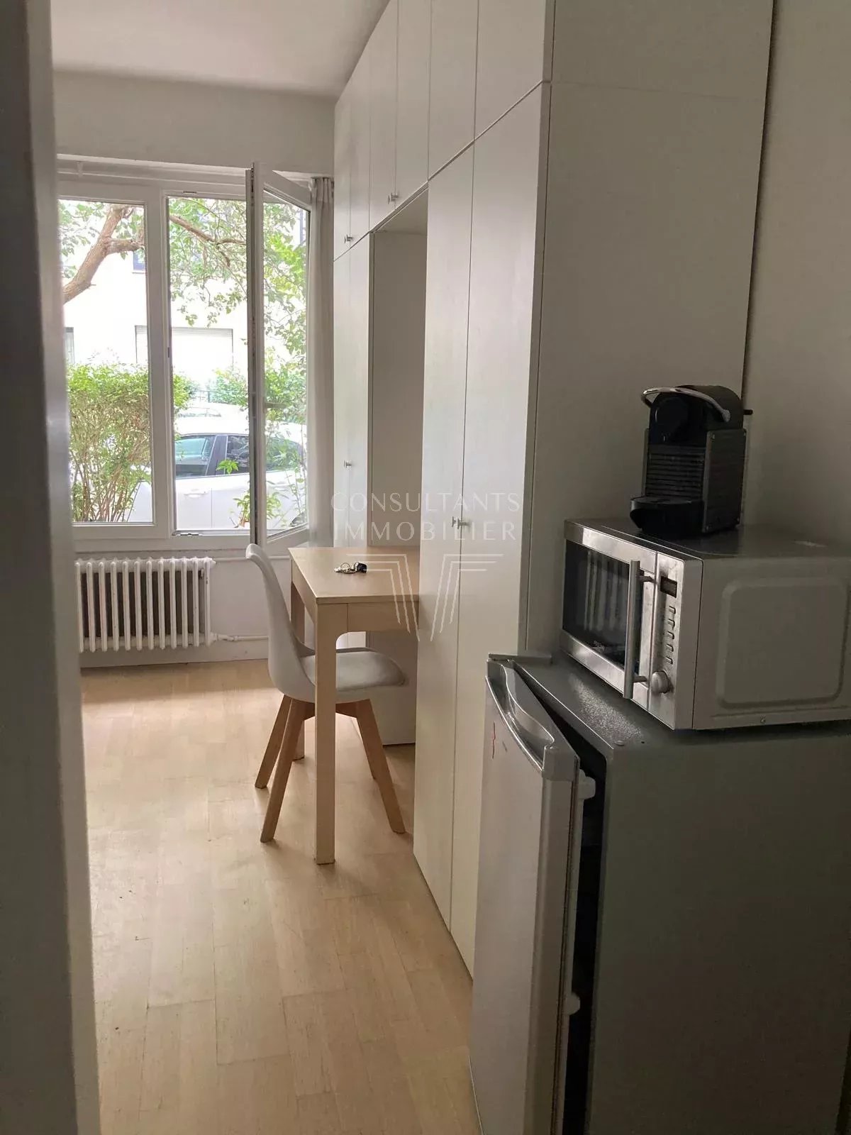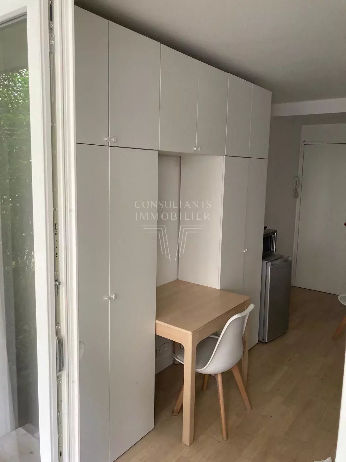 NEUILLY SAINT-JAMES PROCHE PONT DE NEUILLY - Situé dans une rue calme, au rez-de-chaussée d'un immeuble récent de standing sécurisé par un gardien, digicode et interphone - Studio d'une superficie de 14 m²loi Carrez. Il comprend : une entrée, une pièce de vie exposée plein sud avec coin cuisine (plaques, micro-ondes, frigo, lave-linge) et une salle de douche avec toilettes. Nombreux rangements. Le plan est optimisé, aucune perte de place. Proche du bois de Boulogne, des commerces et à 6min de la ligne 1 du métro. DPE E.