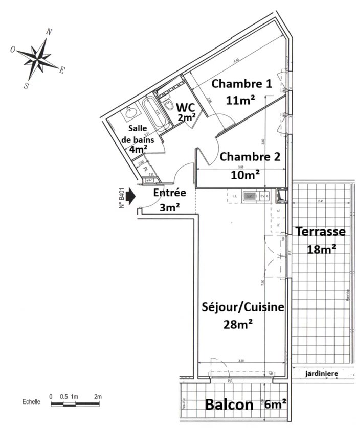 Au 4ᵉ et avant-dernier étage d’une résidence contemporaine et sécurisée, ce bien lumineux bénéficie d’une double exposition traversante et d’un agencement fonctionnel jour/nuit. Il se compose d’un grand séjour de 28 m² avec cuisine équipée, ouvert sur une vaste terrasse couverte, de deux chambres donnant sur le jardin intérieur, d’une salle de bain avec branchement lave-linge et d’un WC séparé.