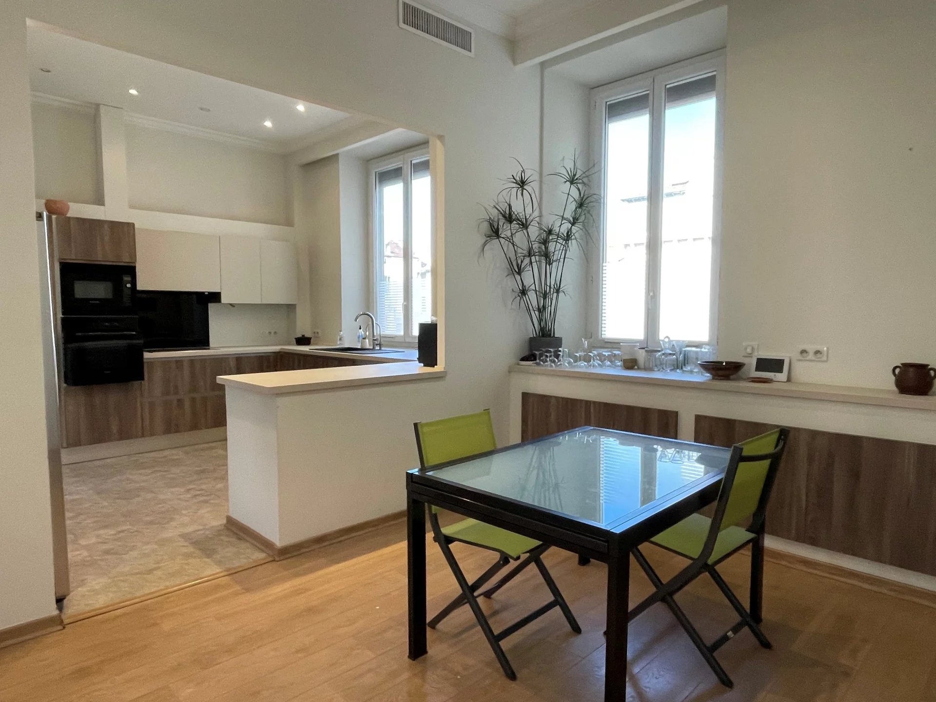 Dans bel immeuble bourgeois, vaste 6 pièces de 150 m2. Séjour, 4 chambres , cuisine - salle à manger. Appartement familial. Possibilité profession libérale ou mixte. 1 cave. Proche parking Nice Etoile.