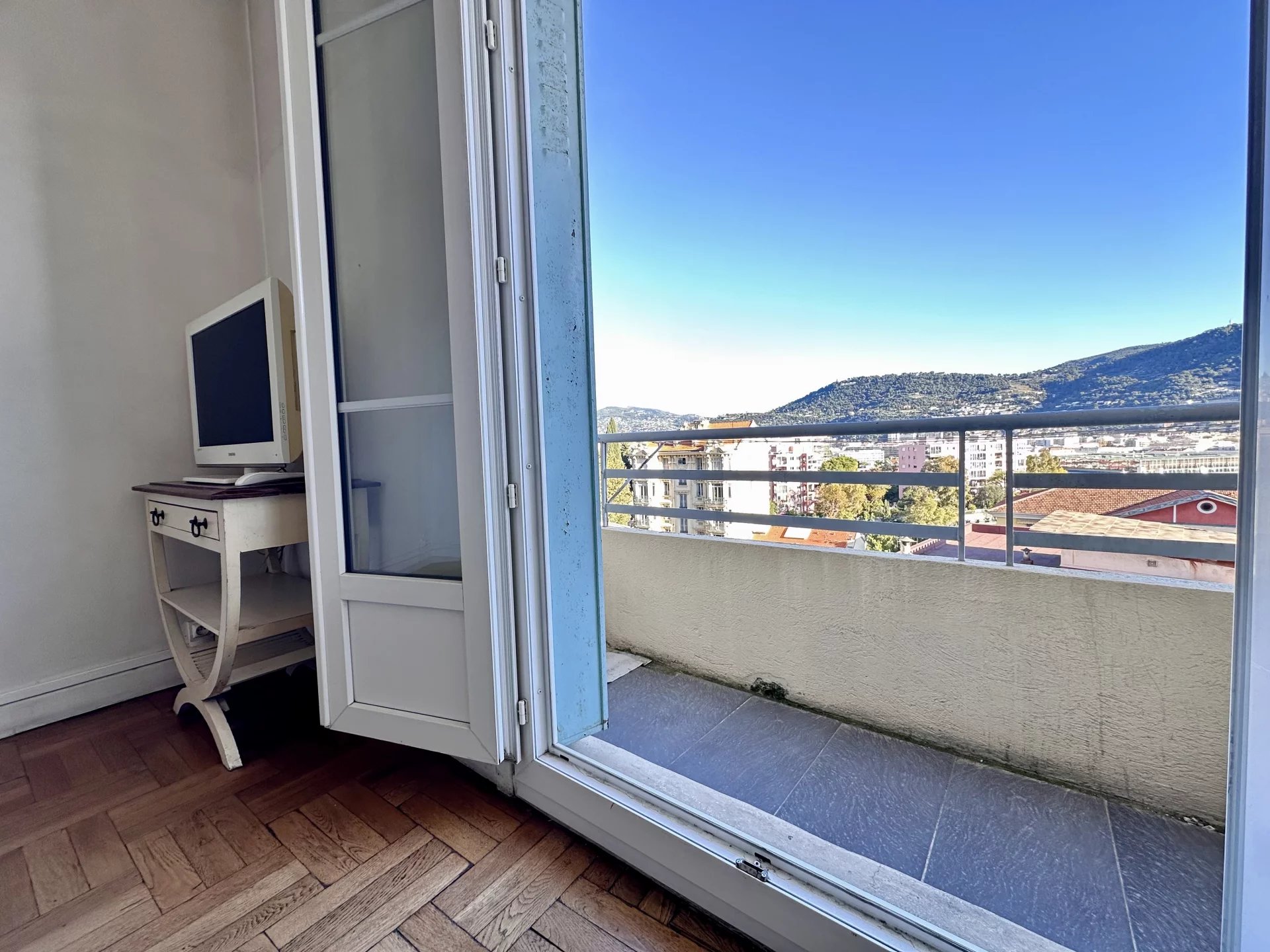 BAS-CIMIEZ/MENDIGUREN: IDEAL POUR PROFESSIONS LIBERALES, PLACEMENT LOCATIF (LOCATION SAISONNIERE POSSIBLE) et HABITATION PERSONNELLE! dans petite copropriété ravalée et bien entretenue, 3 PIECES 55m² Loi Carrez + balcon (pour table bistrot et 2 chaises), triple expo, à la fois niveau rez-de-chaussée par l'entrée d'immeuble et 3ème étage par séjour et balcon, calme et ensoleillé, belle vue dégagée sans vis-à-vis. Cave saine et pratique.