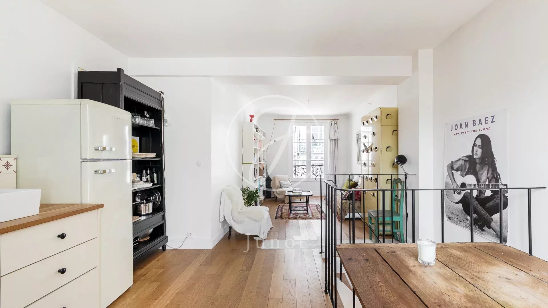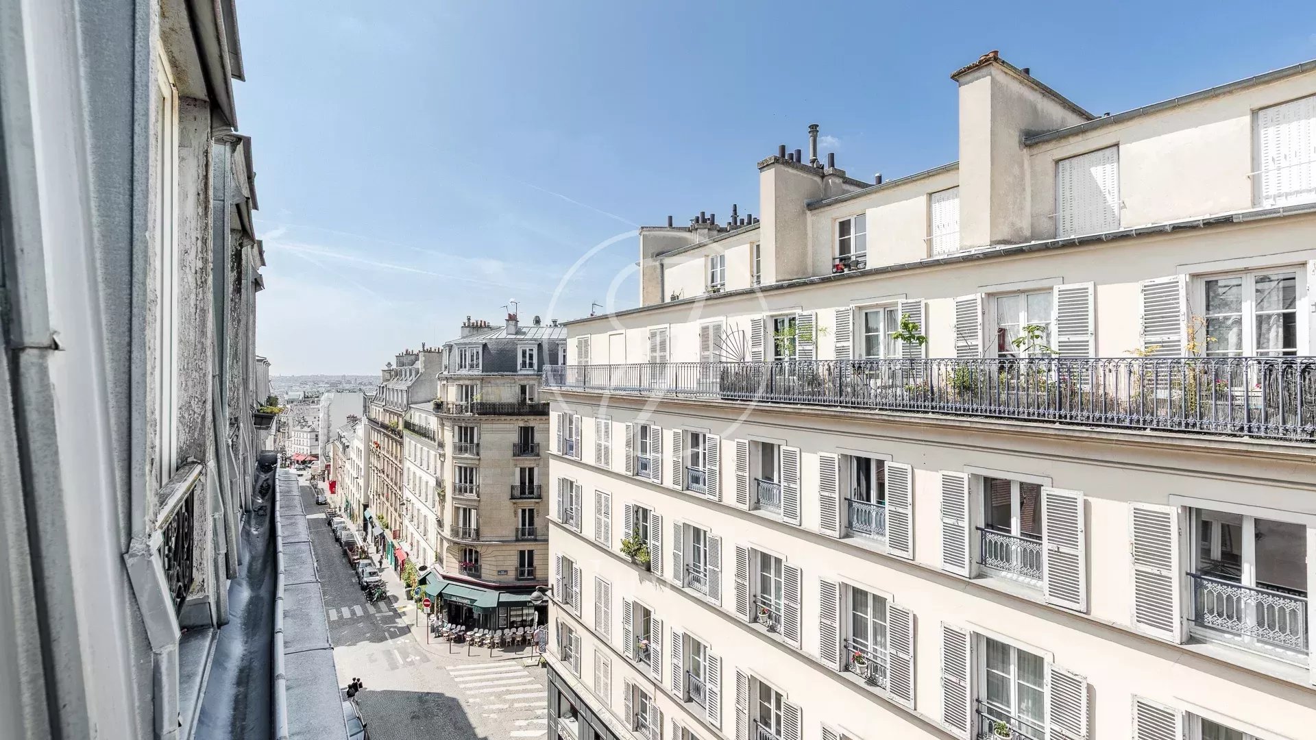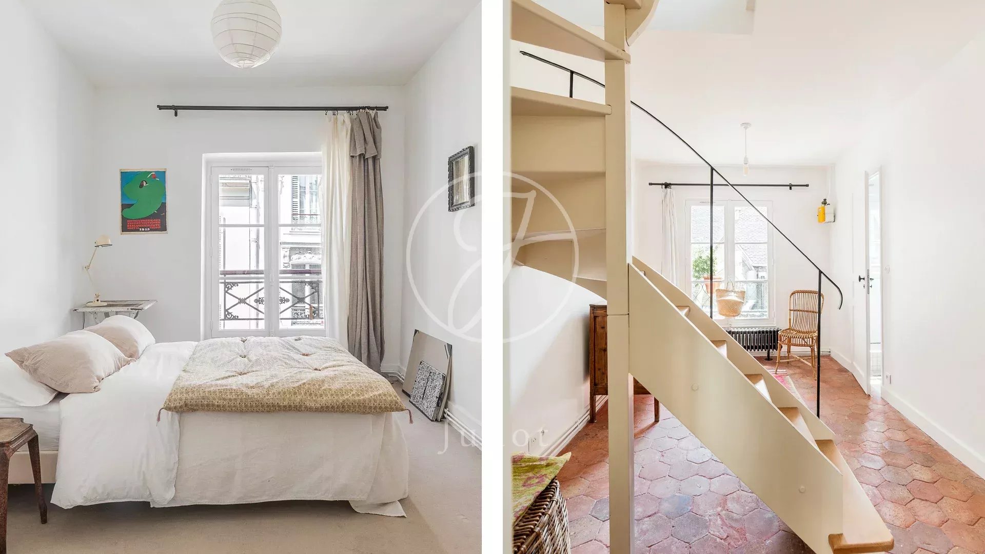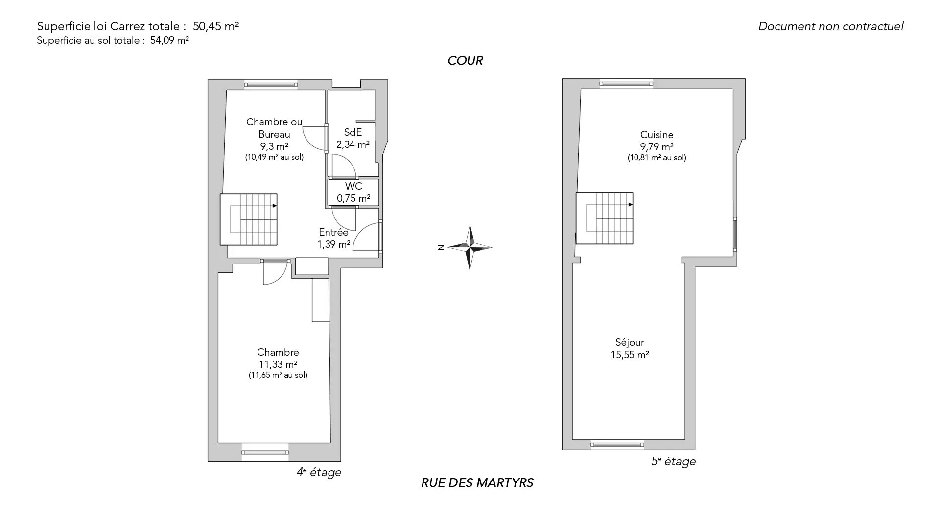 Situé au cœur du quartier très prisé des Abbesses, dans la partie haute de la rue des Martyrs, ce charmant appartement en duplex occupe les deux derniers étages d’un immeuble ancien (accès au 4ème étage). Rénové avec goût et avec de belles prestations en 2022, il offre une superficie de 50,45m² loi Carrez (54,09m² au sol) Traversant est ouest et baigné de lumière, le plan optimisé comporte au quatrième étage : un espace chambre bureau modulable et une chambre chaleureuse avec rangements intégrés, une salle de douche et des toilettes séparées.
