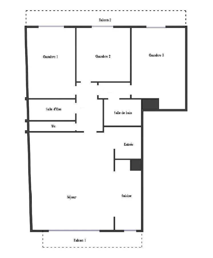 Il se compose d'une entrée, d'un séjour lumineux exposé plein sud, prolongé par un large balcon sur rue, une cuisine ouverte sur la pièce de vie, trois chambres donnant sur un balcon offrant une vue sur un jardin au calme; une salle de bain, une salle de douche, WC séparés + une cave.