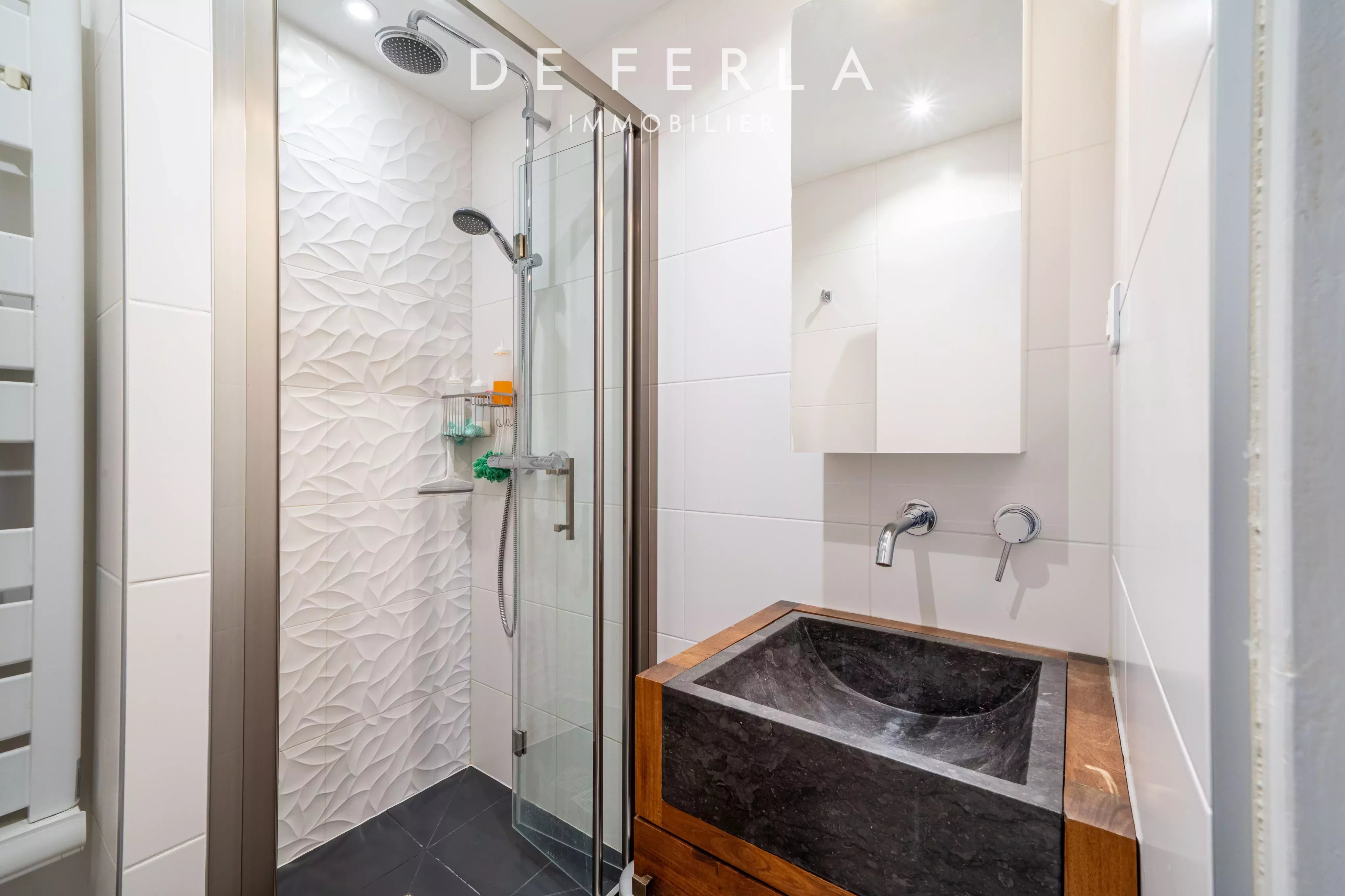 Une entrée avec rangements, une cuisine séparée entièrement aménagée et équipée, un double séjour lumineux exposé Sud-Est, un WC indépendant, deux salles d’eau et deux chambres au calme donnant accès à un petit balcon. Le plan initial offrant 3 chambres, il est possible de créer à nouveau une troisième chambre.