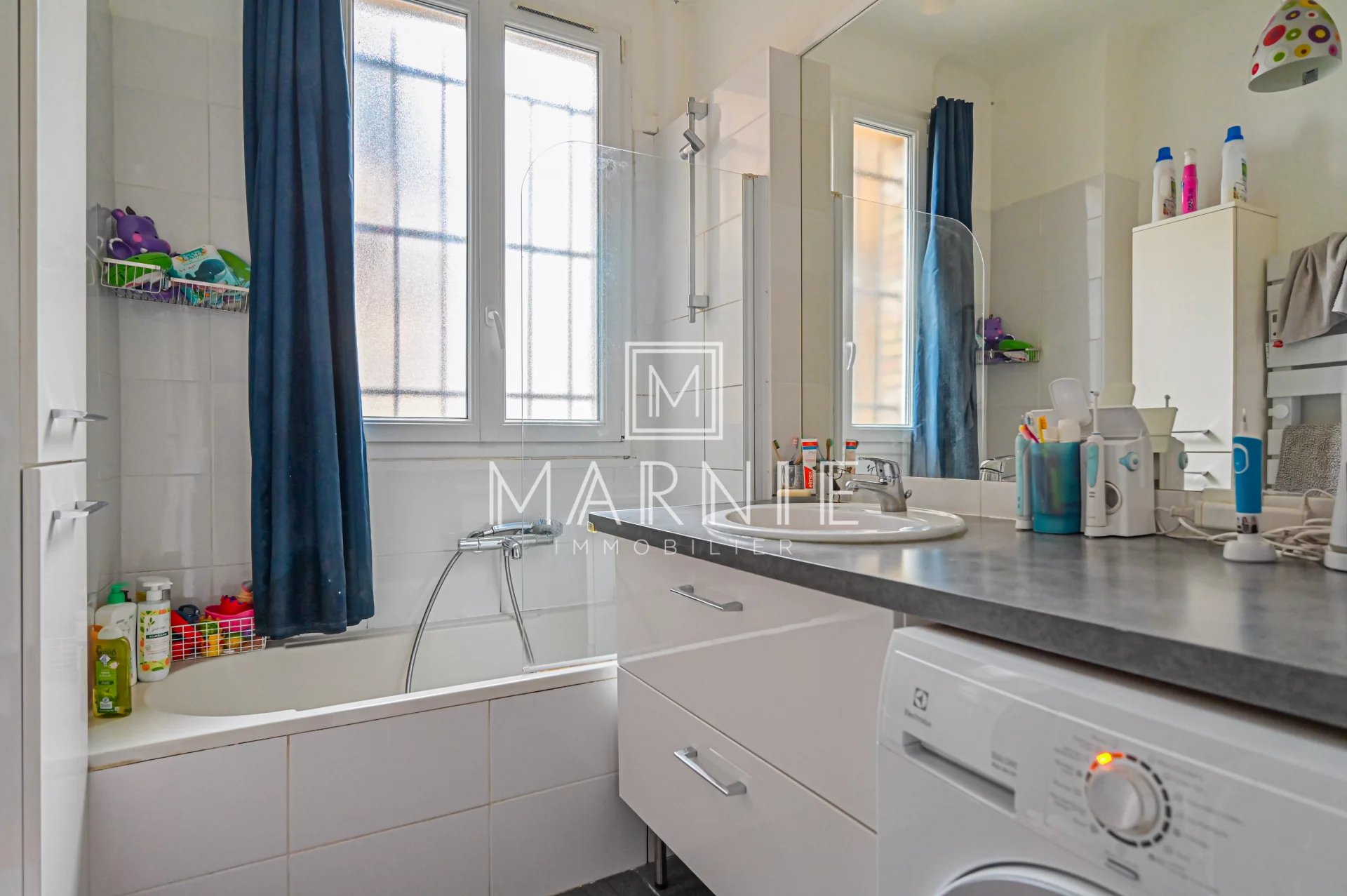Il se compose également d’une salle de bains, de WC séparés, ainsi que de rangements optimisés.