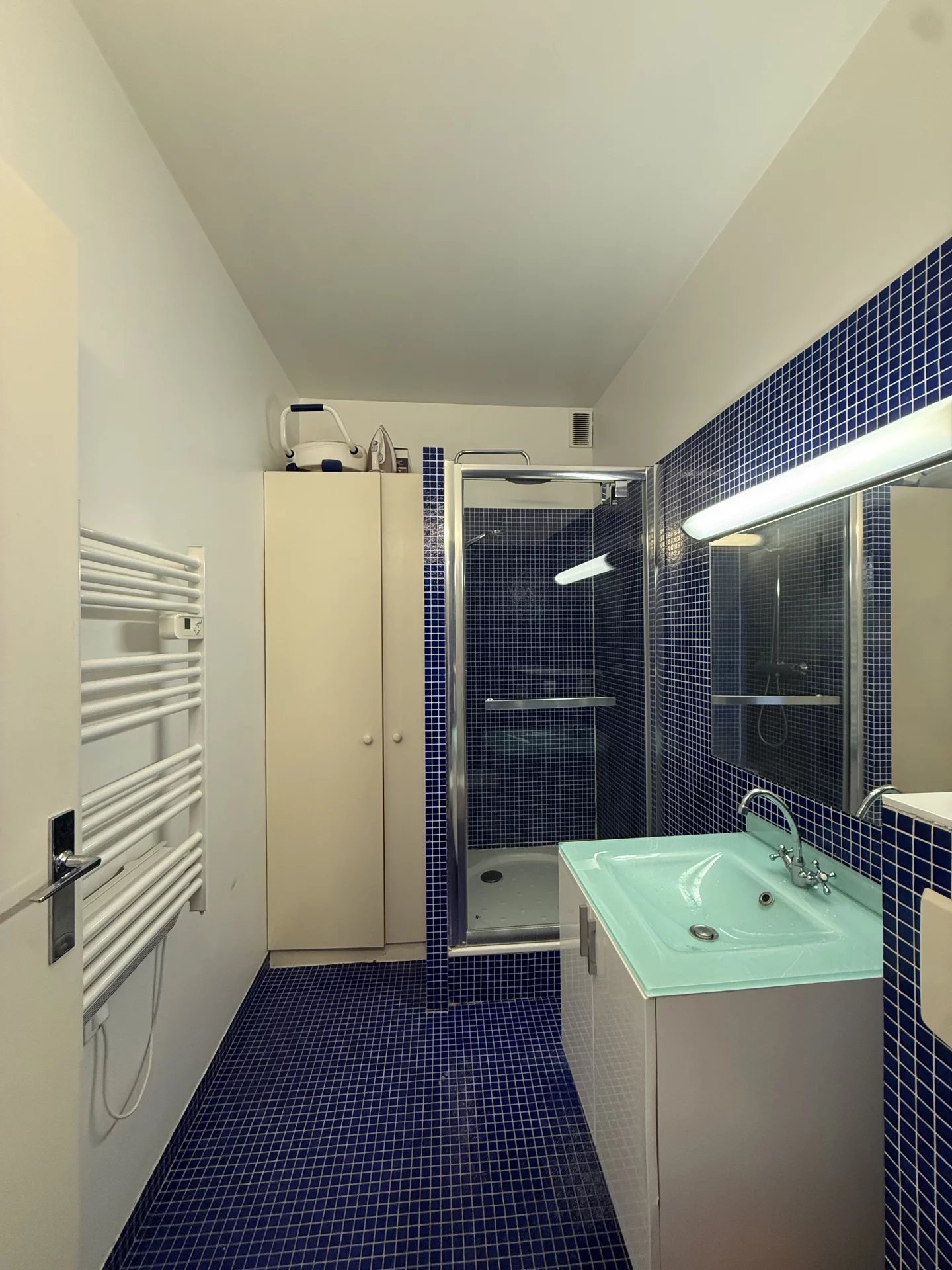 La salle d'eau: Restée dans son jus "sixties", cette pièce offre une opportunité de rénovation pour apporter votre touche personnelle et moderniser l'ensemble à votre goût.