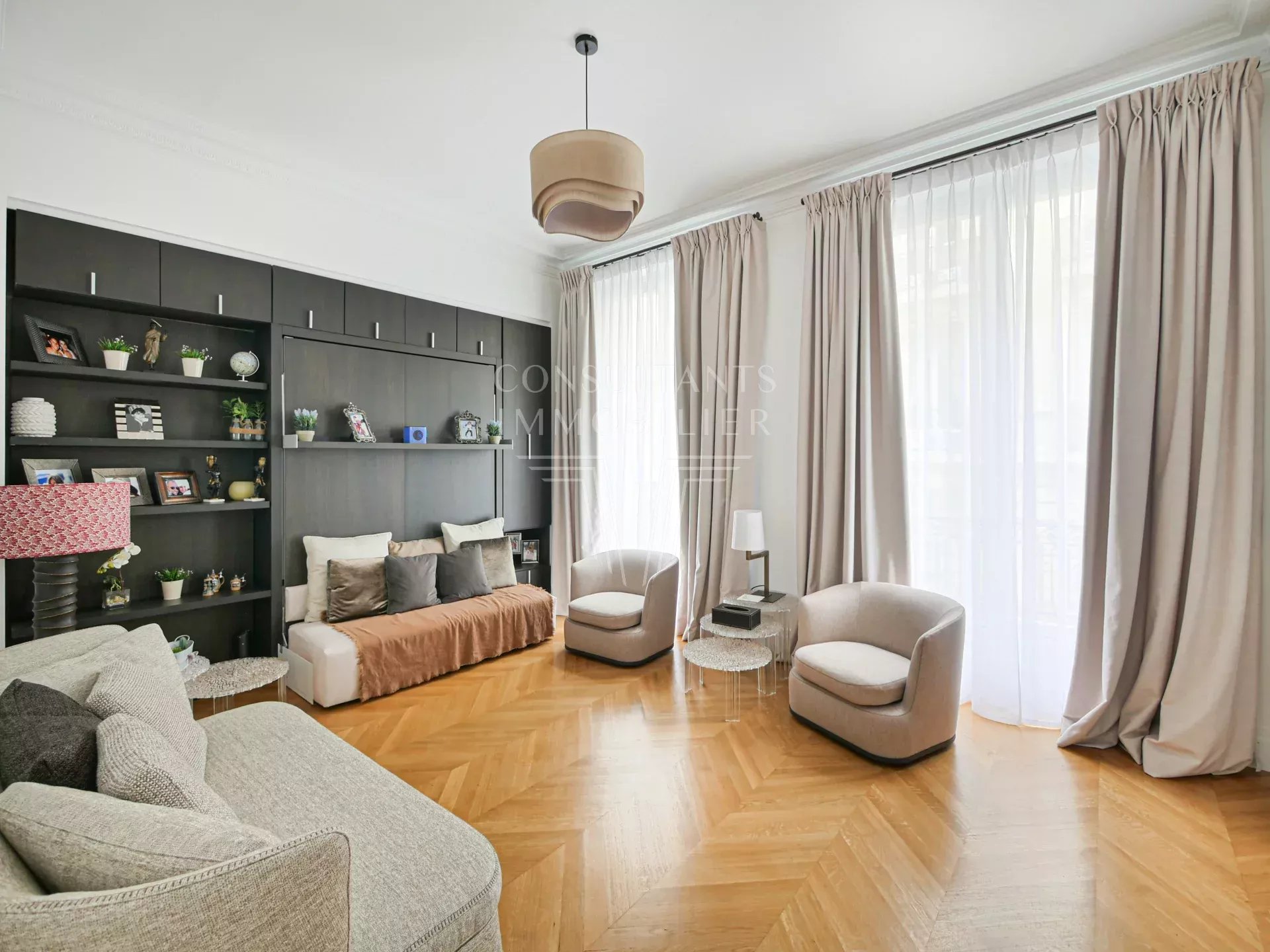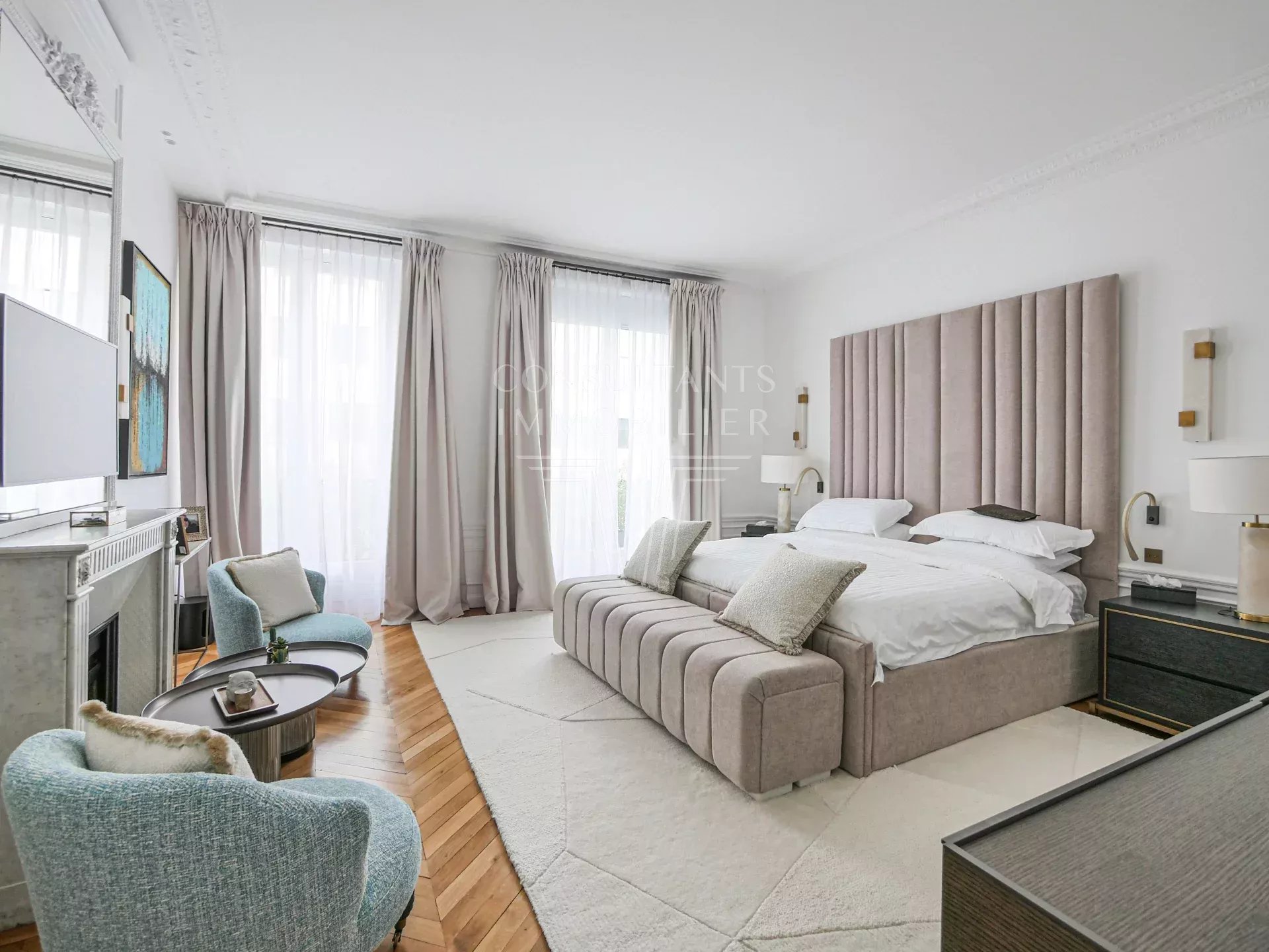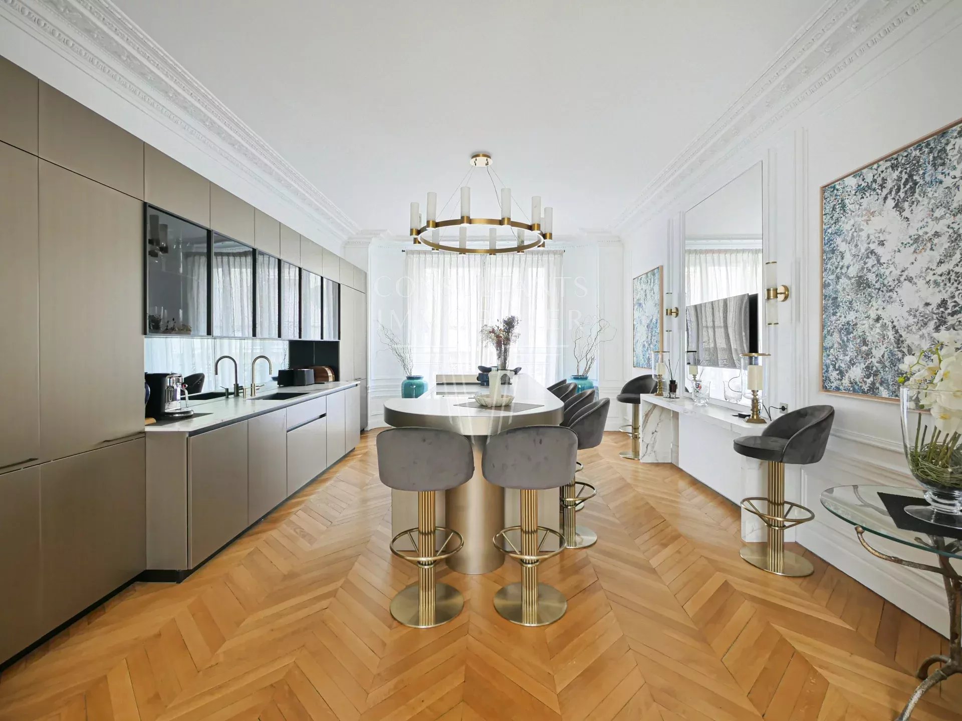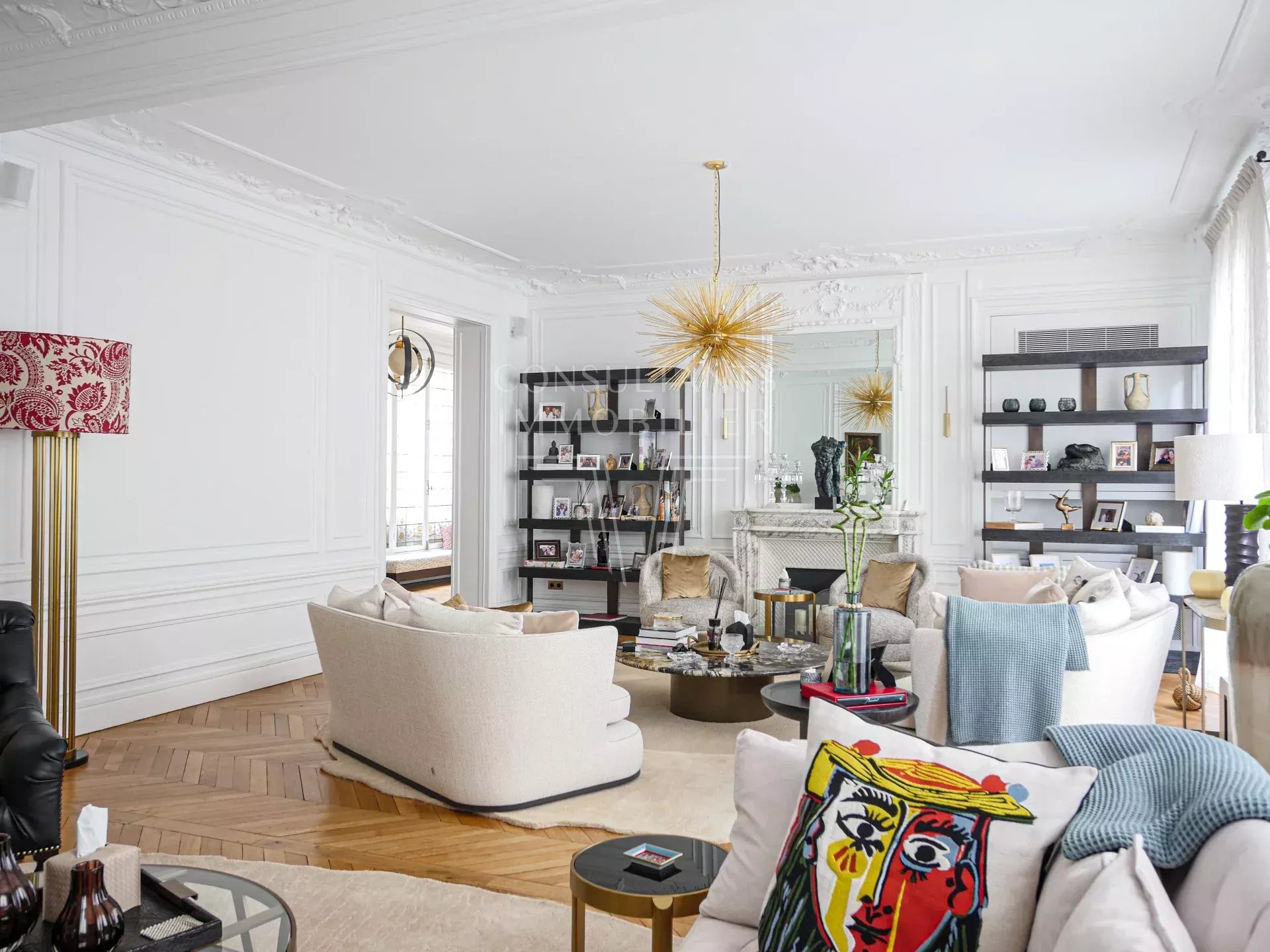 Appartement d’exception climatisé en excellent état, exposé sud. À la fois familial et de réception, il est d'une superficie de 286 m² et bénéficie de superbes volumes avec une hauteur sous plafond de 3,20 mètres avec un excellent plan.