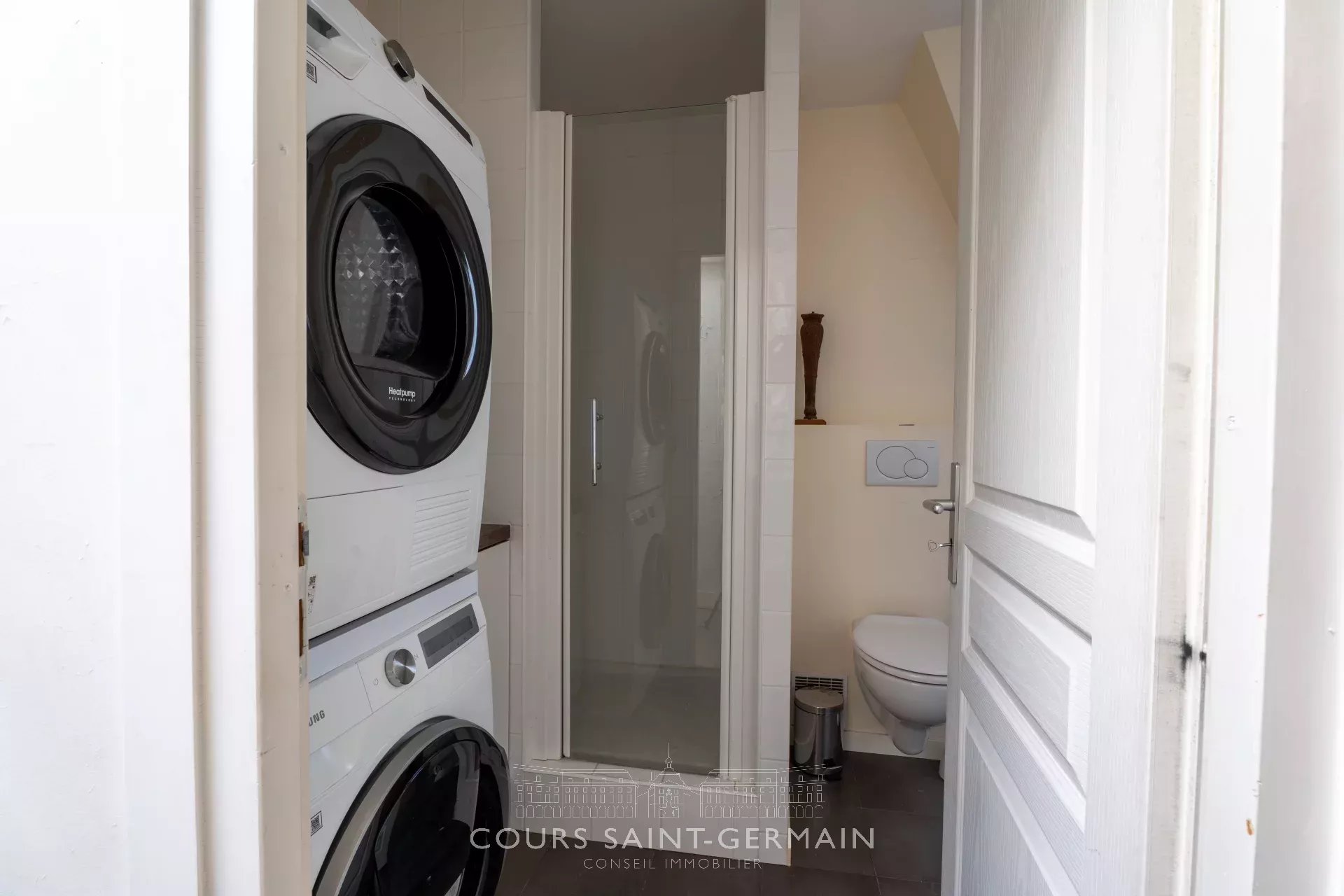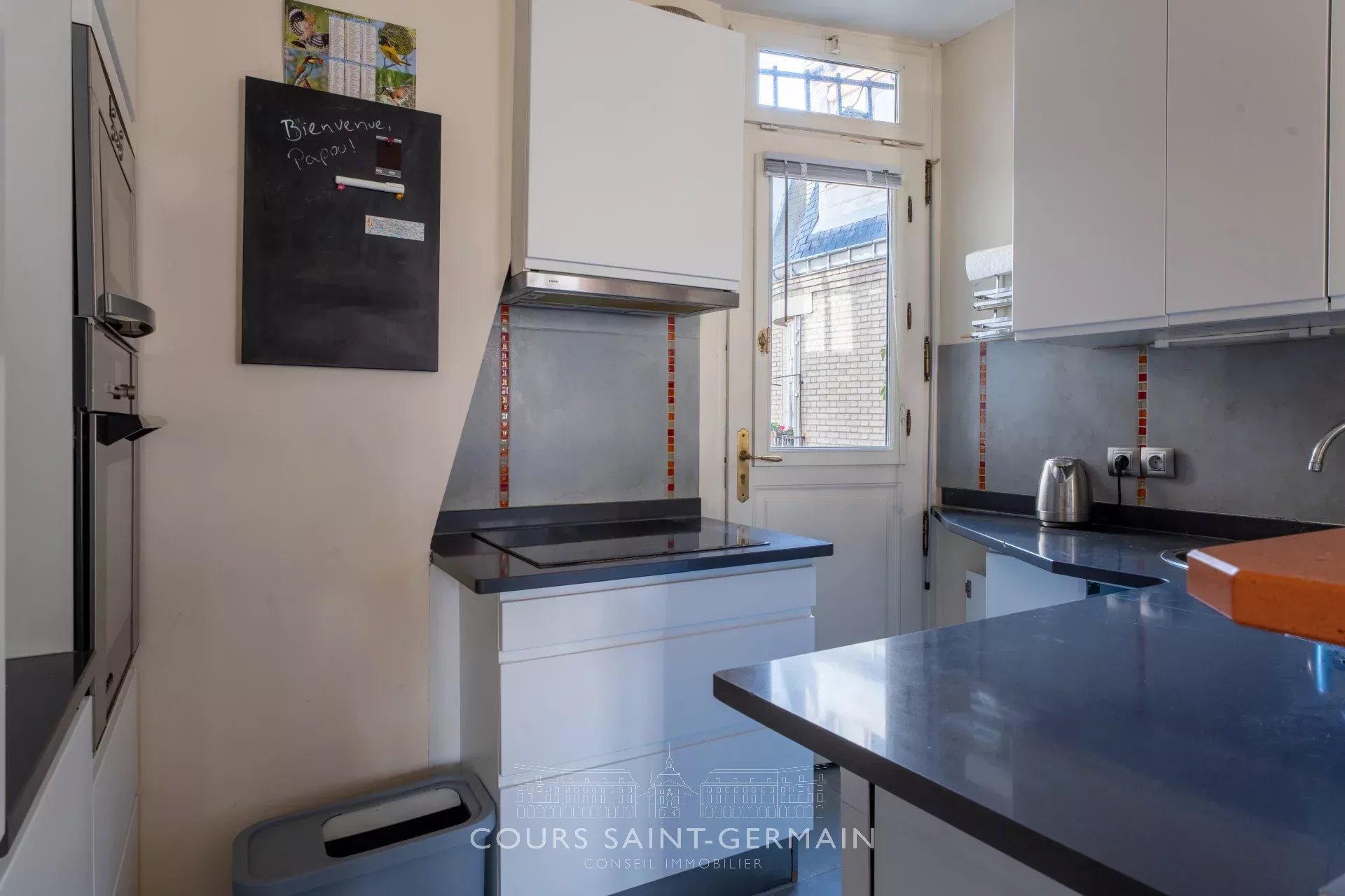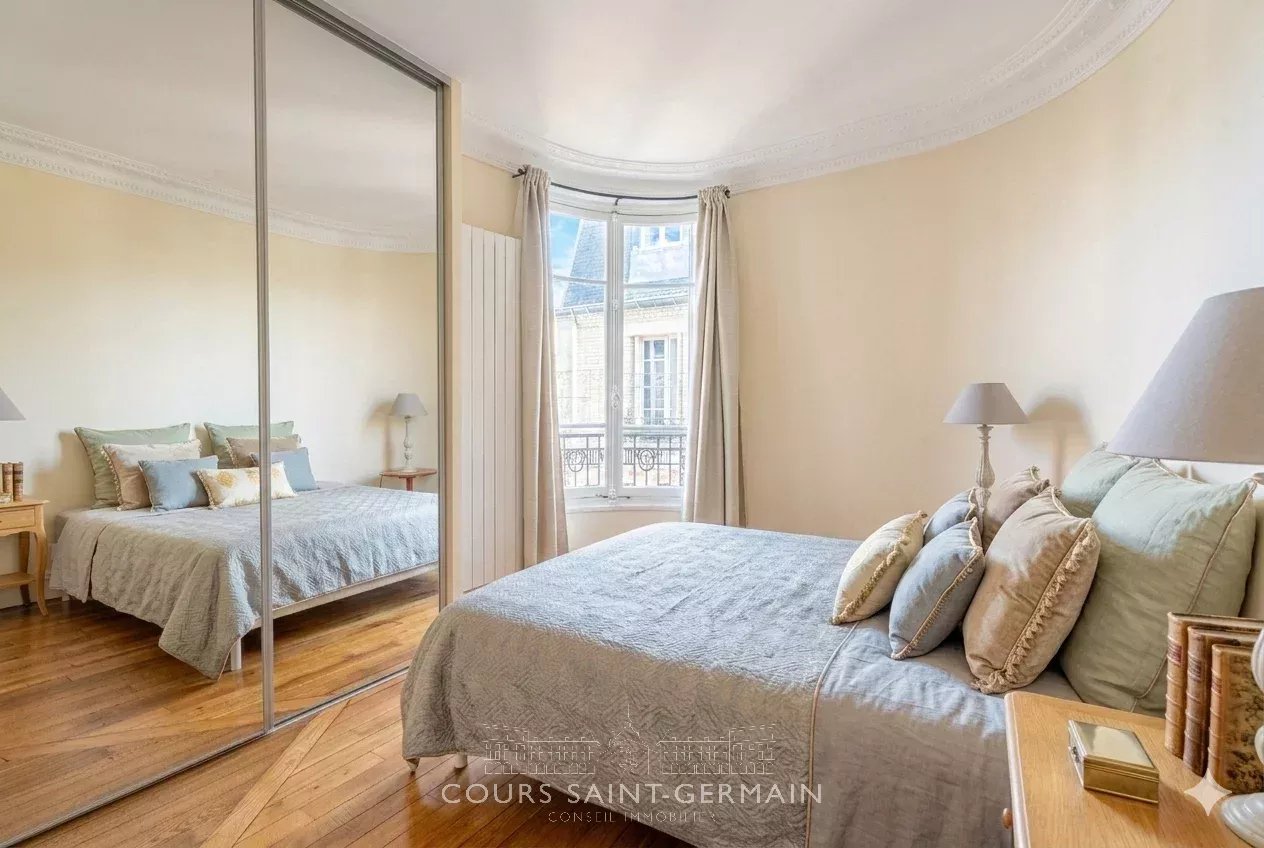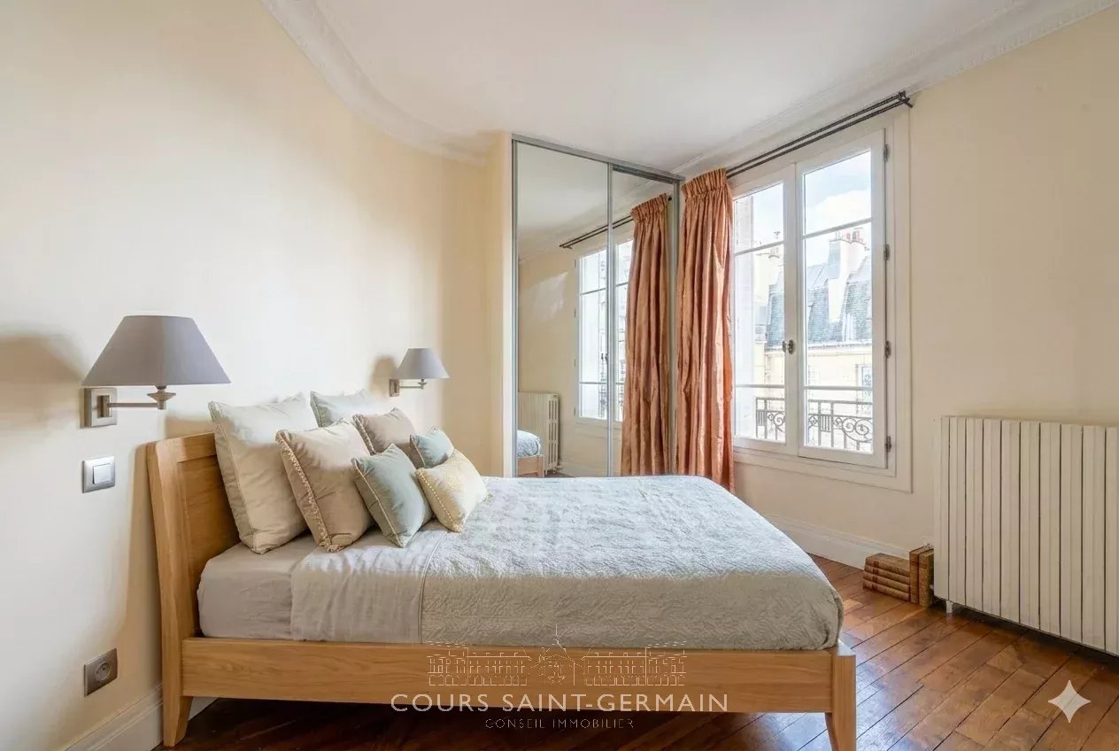 850 000 €Bel appartement familial au 6 ème et 7ème étage d'un immeuble bourgeois dans une voie sans issue. Un 4 pièces avec Une entrée, un double séjour de exposée ouest avec balcons, un salon avec cheminée, une salle à manger, une cuisine ouverte aménagée, donnant sur un balcon exposé est, deux chambres exposées sud, une salle de bains, un toilette indépendant, des rangements. De la salle à manger un escalier en colimasson monte dans la troisième chambre située au 7ème, face à laquelle il y a une salle de douches avec wc ( accès par couloir du 7ème).