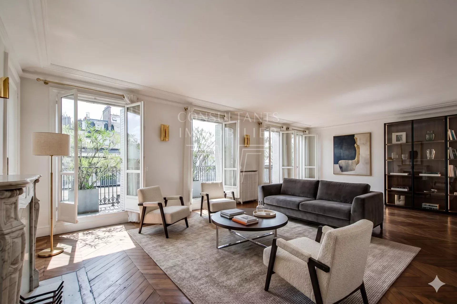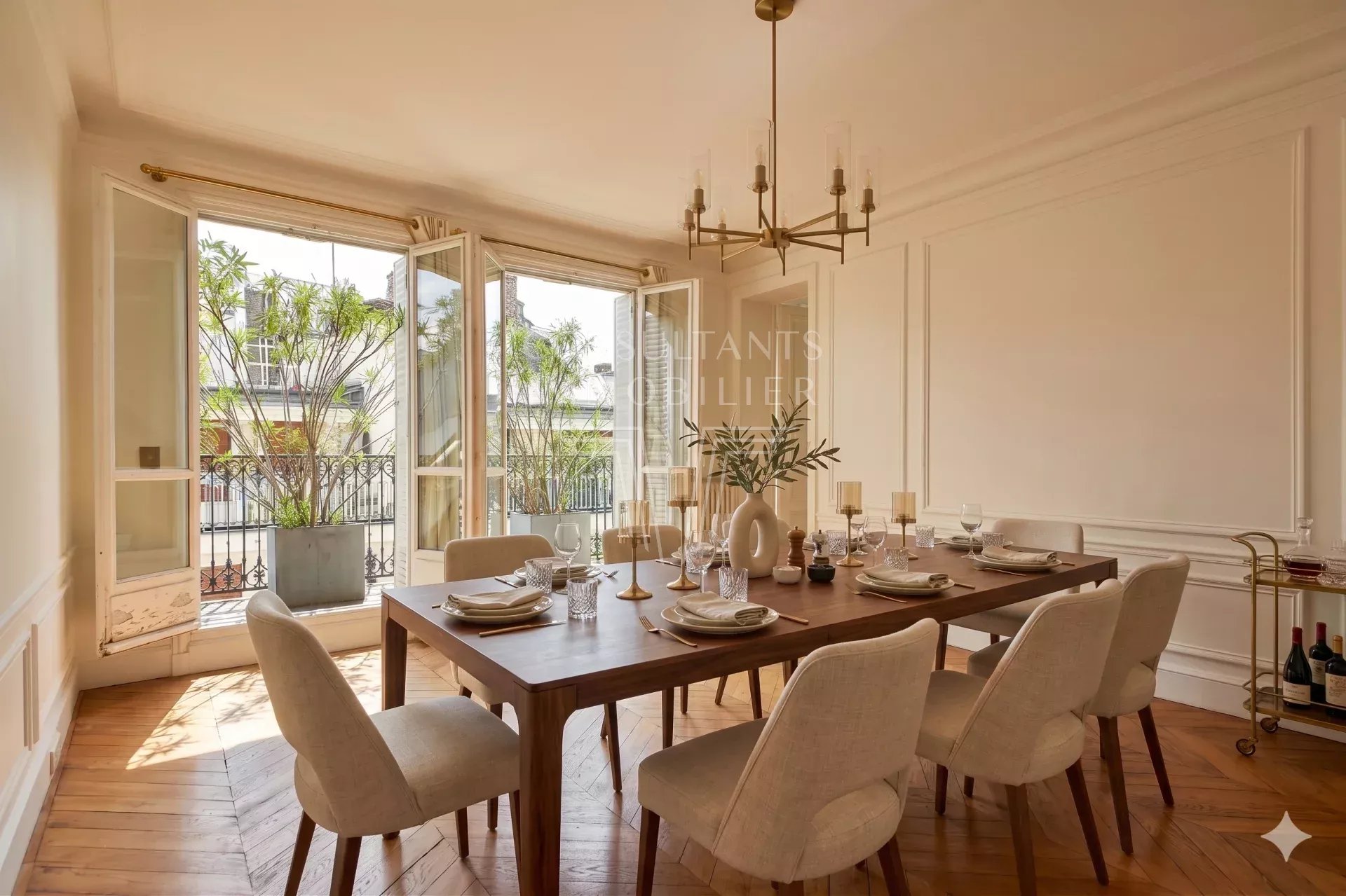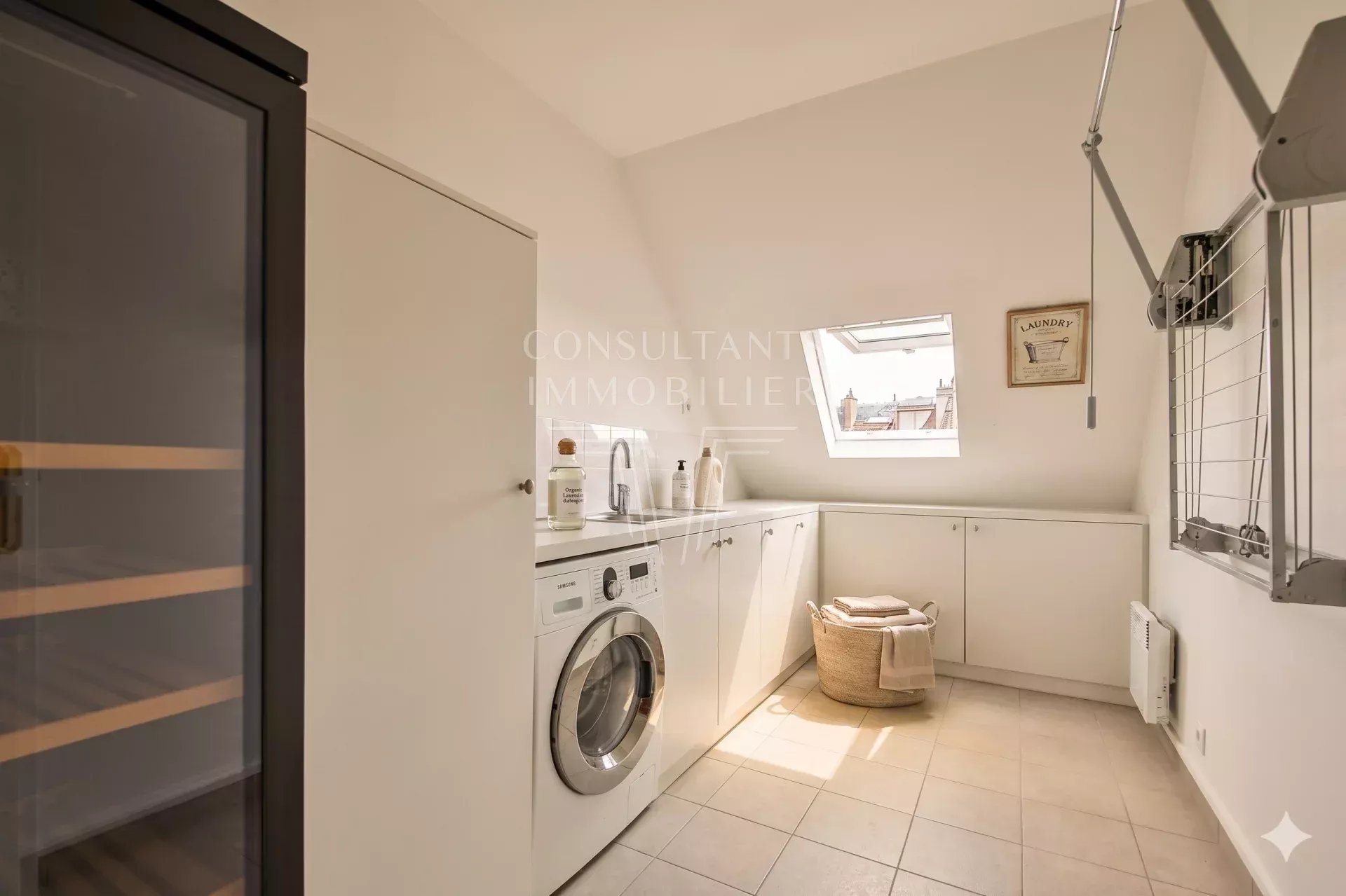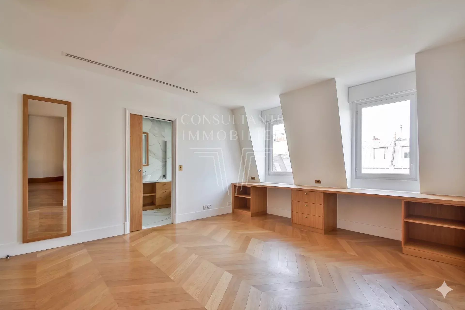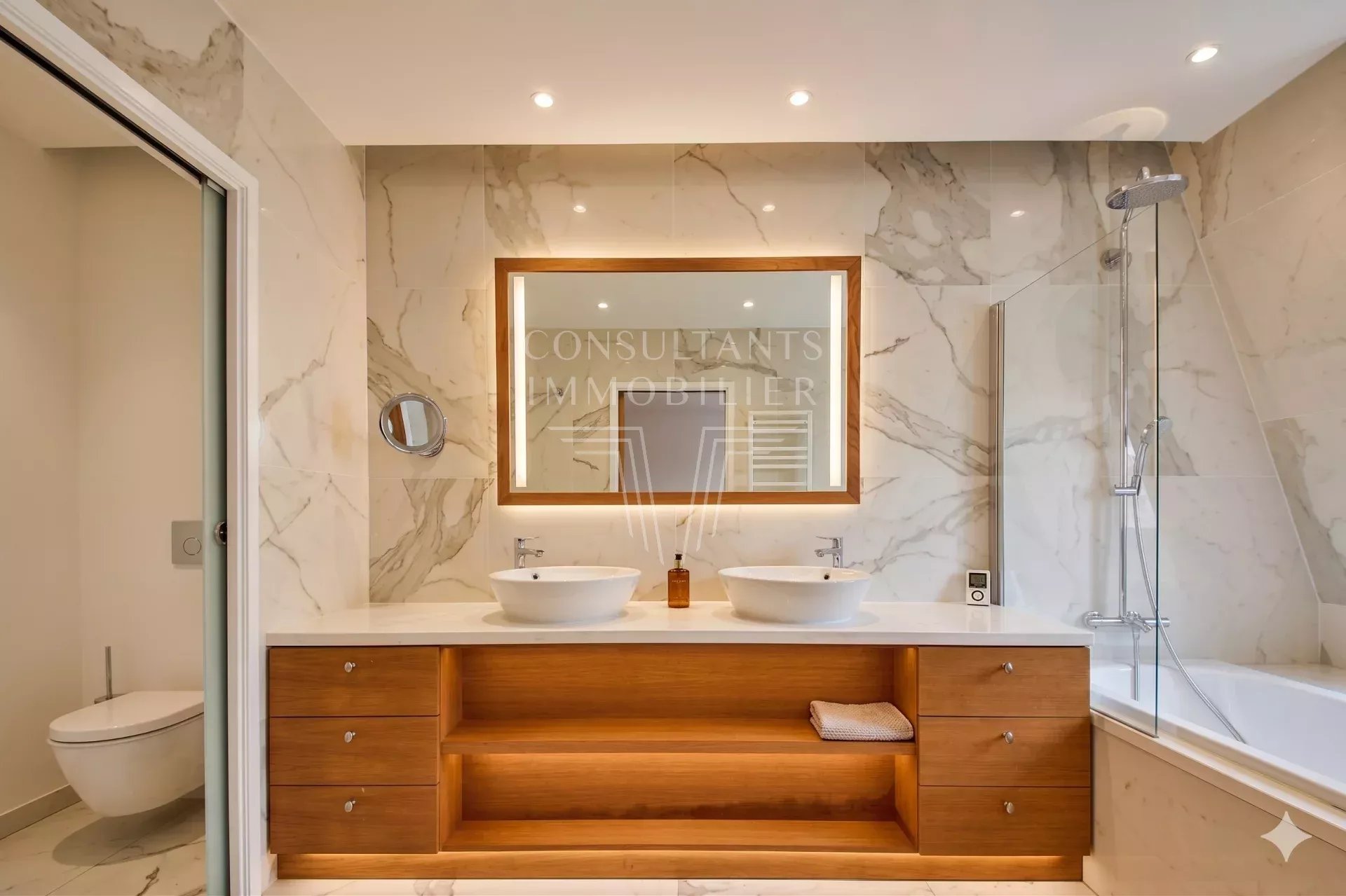 Appartement climatisé, en duplex, seul sur le palier, en excellent état, d'une superficie de 231,28 m² - 265 m² au sol - parfaitement distribué, bénéficiant d'une vue dégagée sur Paris et la tour Eiffel, ainsi que de plus de 13 m² de balcon filant.