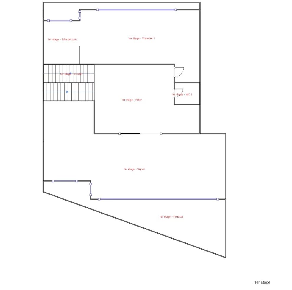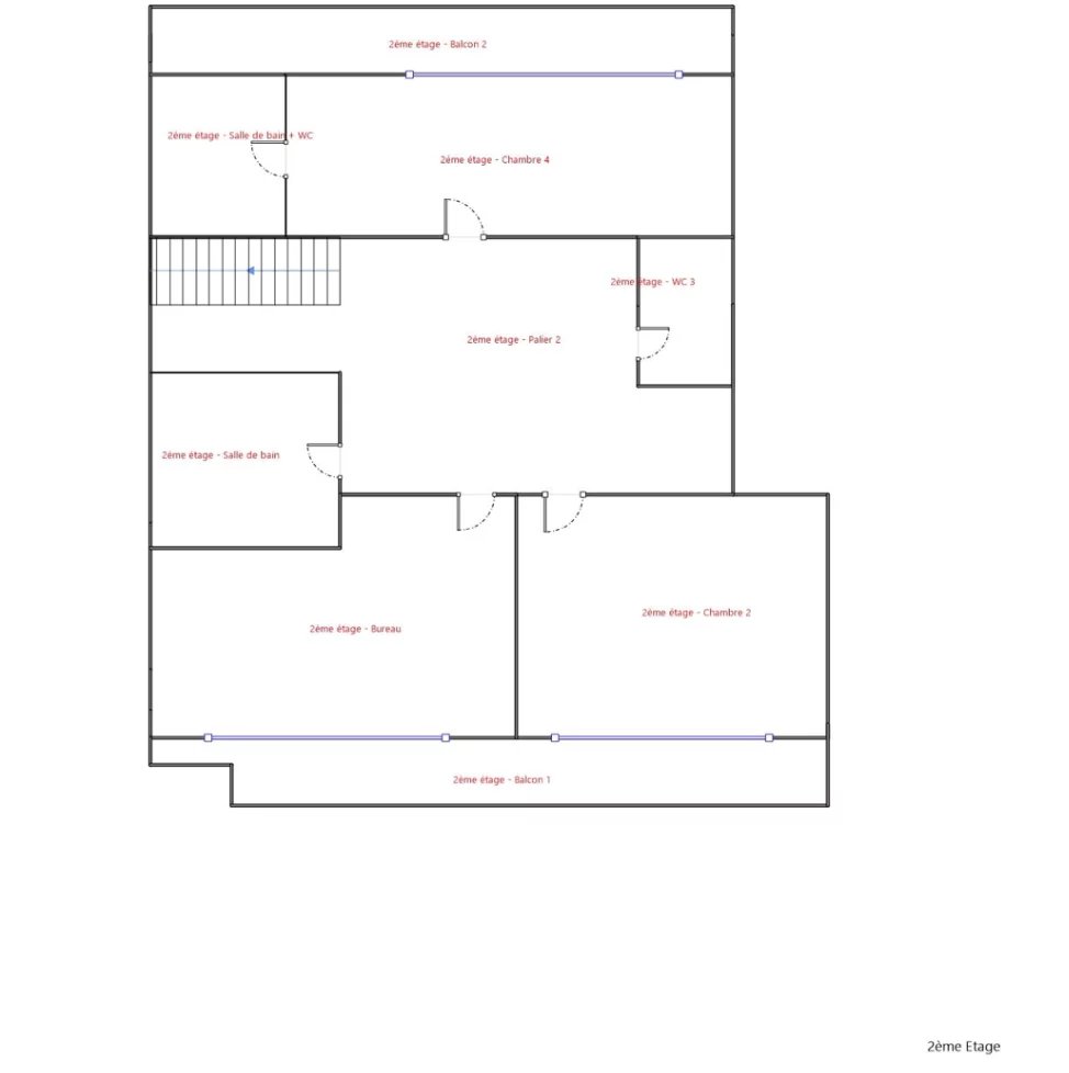 Le deuxième et dernier étage du bâtiment, dispose d'une grande chambre avec sa salle d'eau privative, d'une chambre supplémentaire ainsi que d'un bureau. Une salle d'eau indépendante et un toilette sont également présents à cet étage.