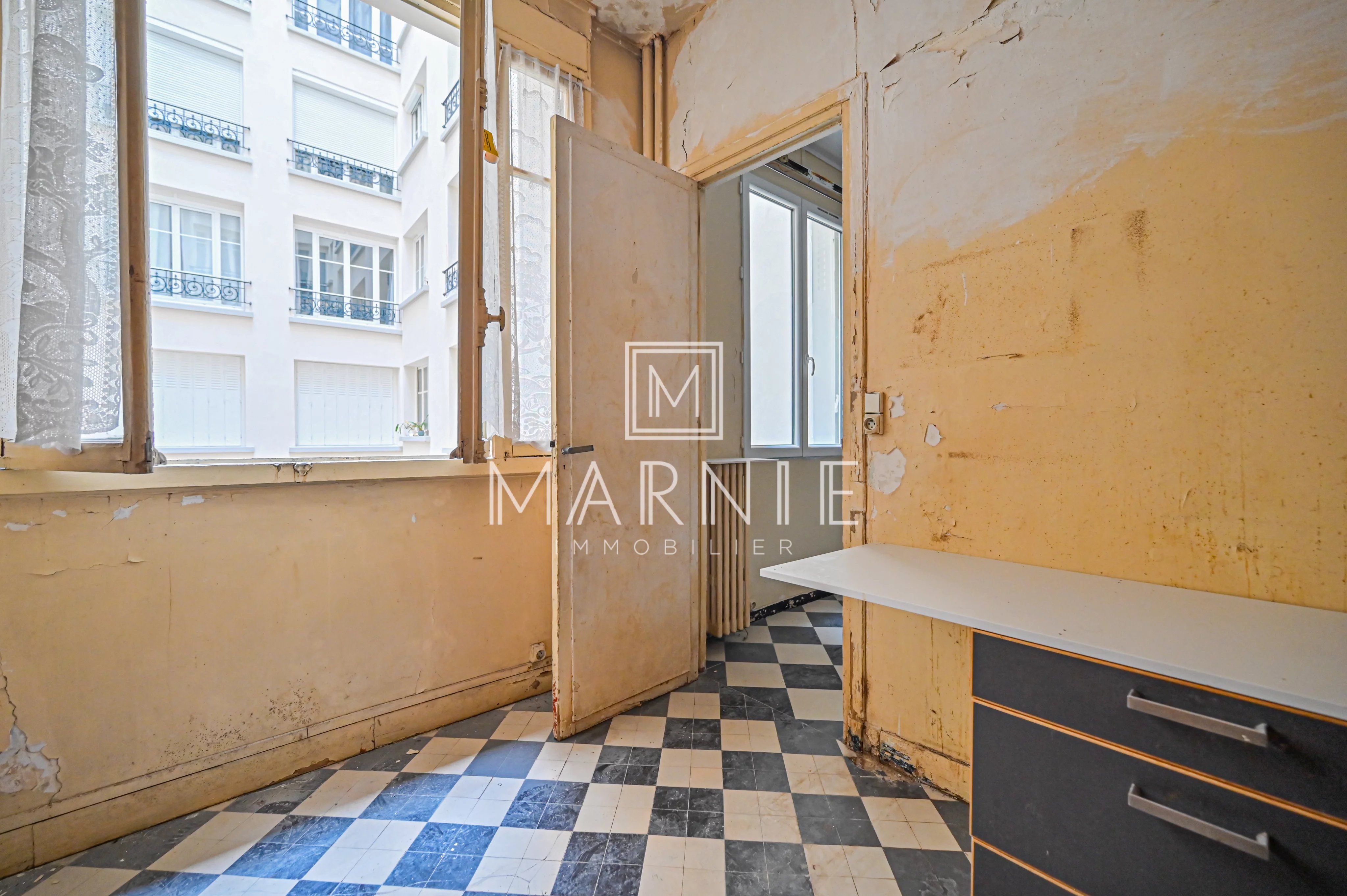 Marnie Immobilier vous propose, à deux pas du métro Rome, au sein d’un bel immeuble des années 1930, une ancienne loge de gardienne de 48,2 m² Carrez, à rénover entièrement.