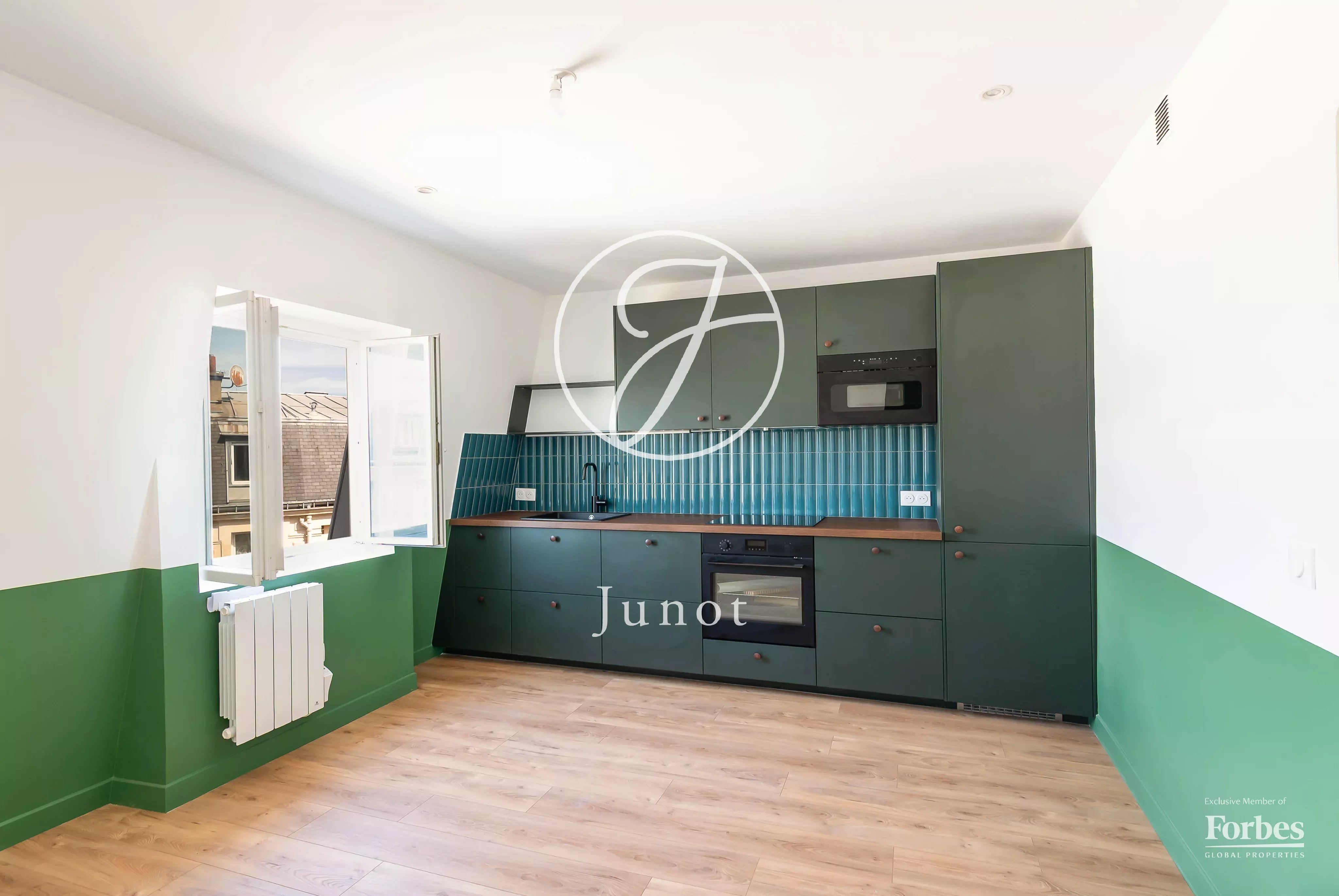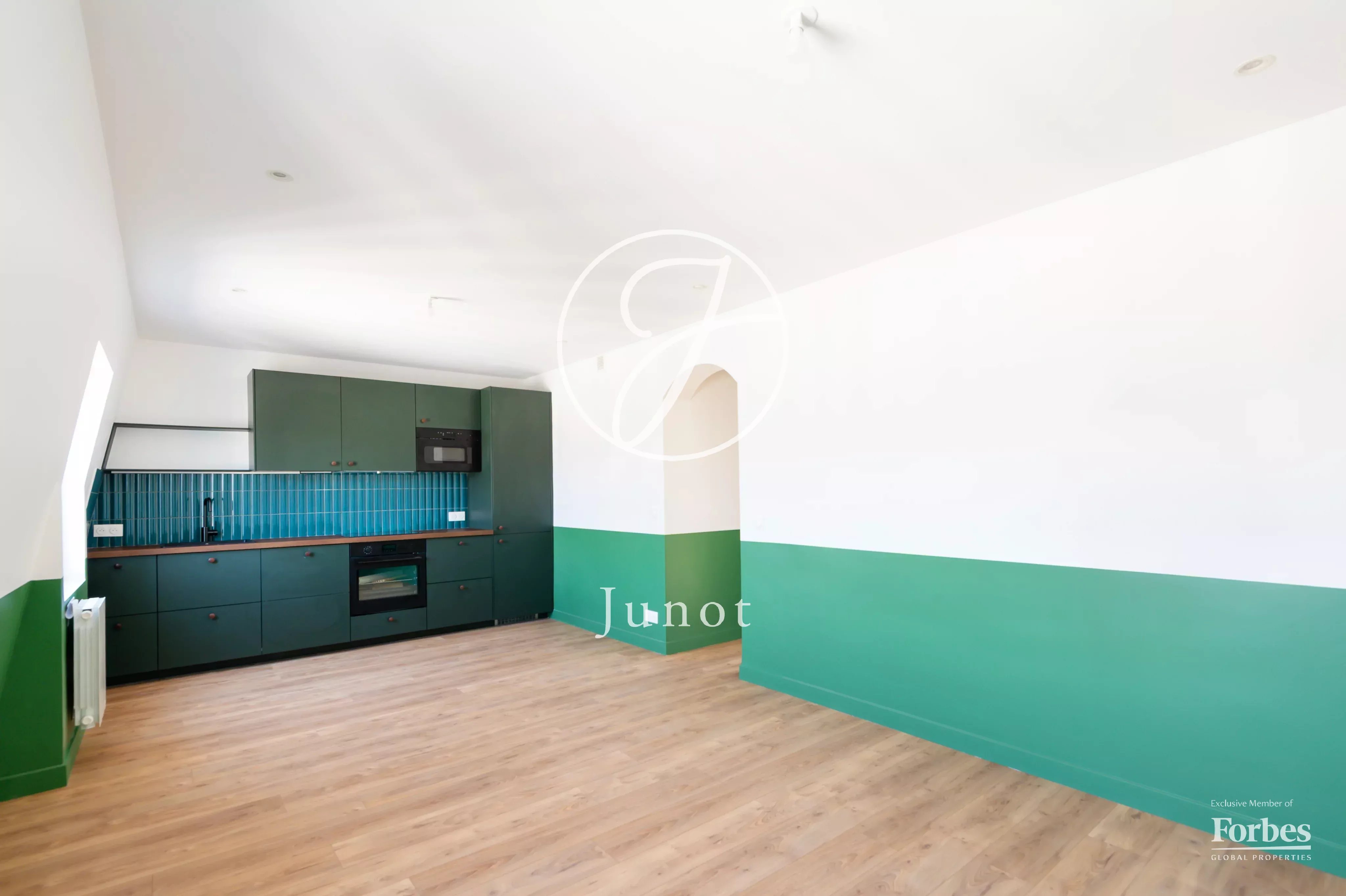 À proximité des commerces et des transports, au sixième et dernier étage par escalier d’un bel immeuble ancien bien tenu, appartement de 47.56m² Carrez et 50.87m² au sol en cours de rénovation par architecte.