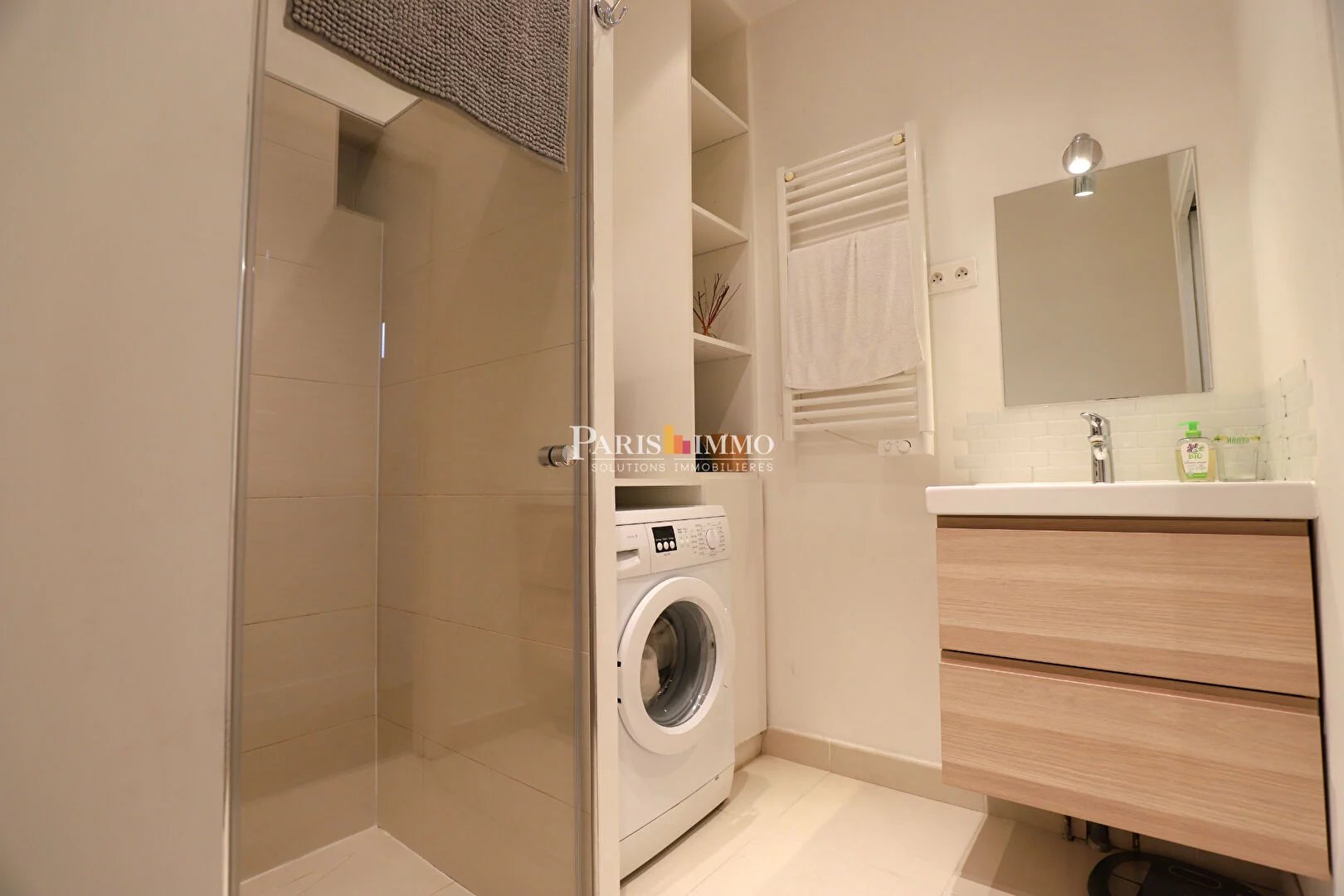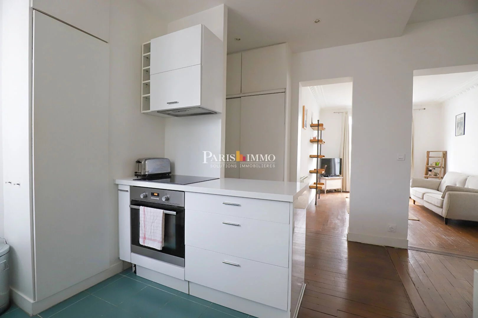L'appartement à été rénové par architecte, composé d'une entrée, cuisine semi ouverte dinatoire, séjour avec cheminée exposé Est, chambre sur cour avec vue dégagée sur le passage des Cloys, au calme, salle d'eau, wc séparé et cave. Garage à vélo.