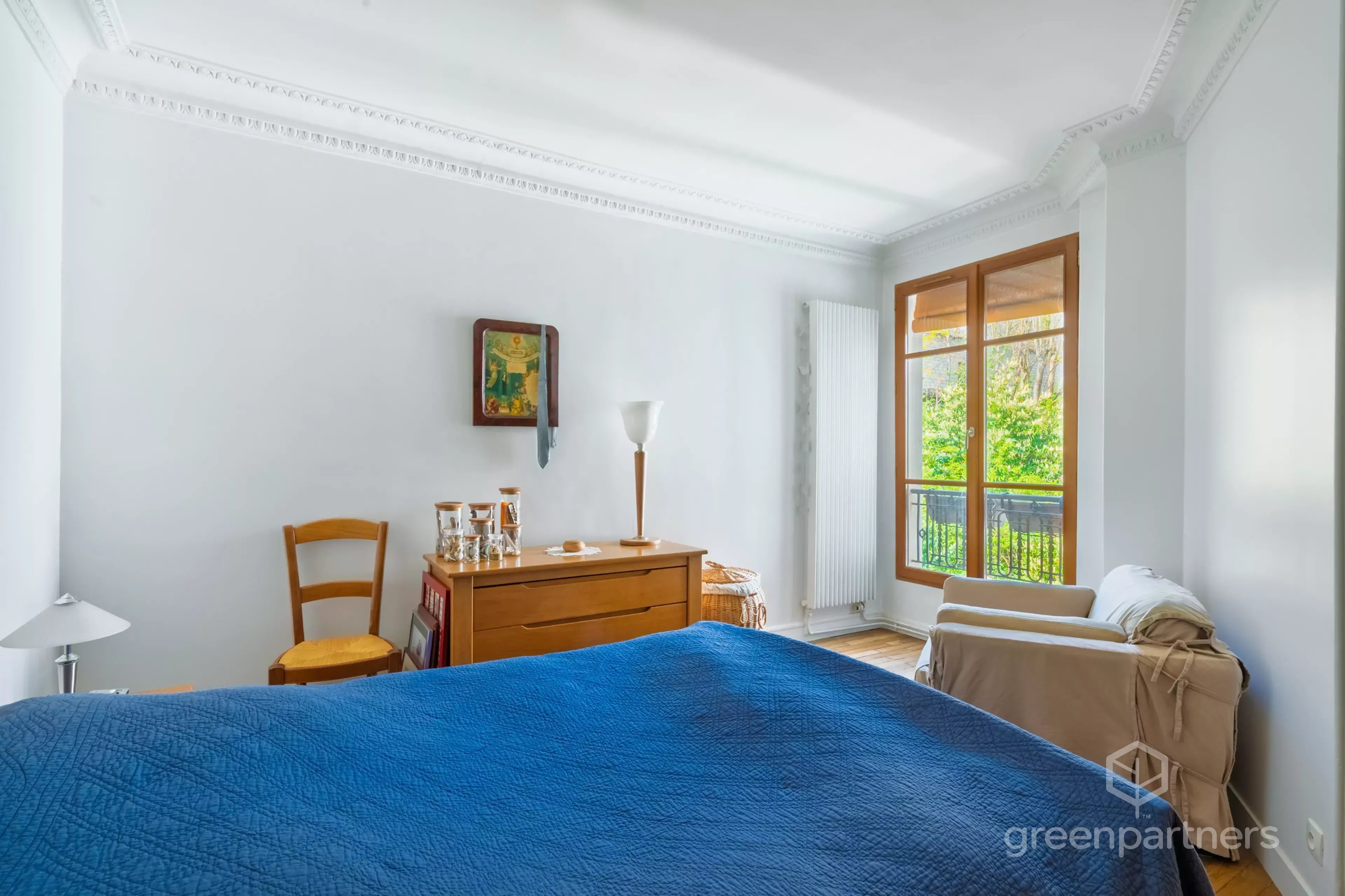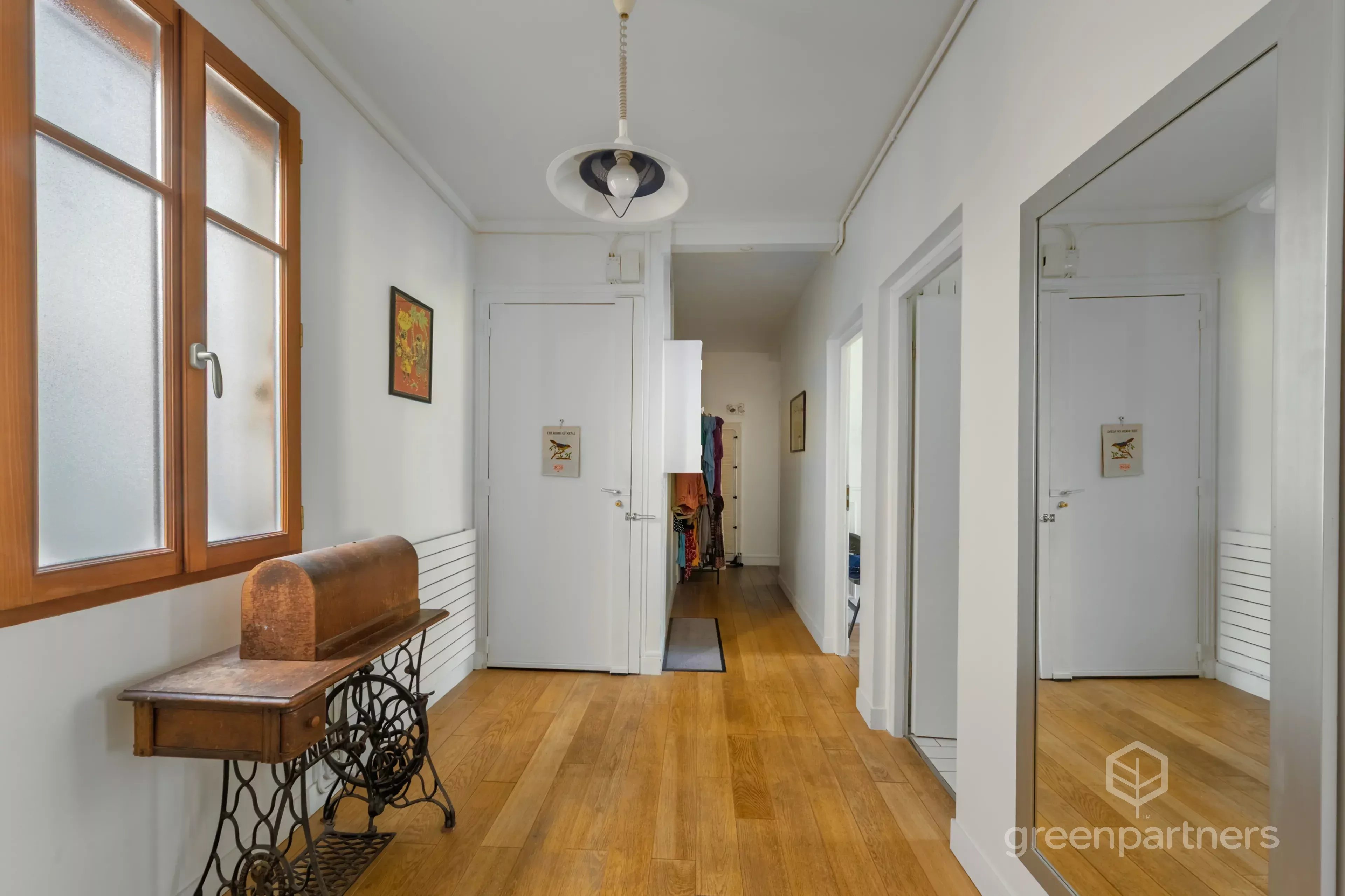 Traversant, lumineux et au calme, il profite d’une agréable vue dégagée sur un jardin arboré, avec un séjour orienté à l’ouest. Il comprend une entrée, un séjour, une cuisine indépendante équipée, deux chambres, un dressing, une salle de douches et des toilettes séparées. Une cave complète l’ensemble.