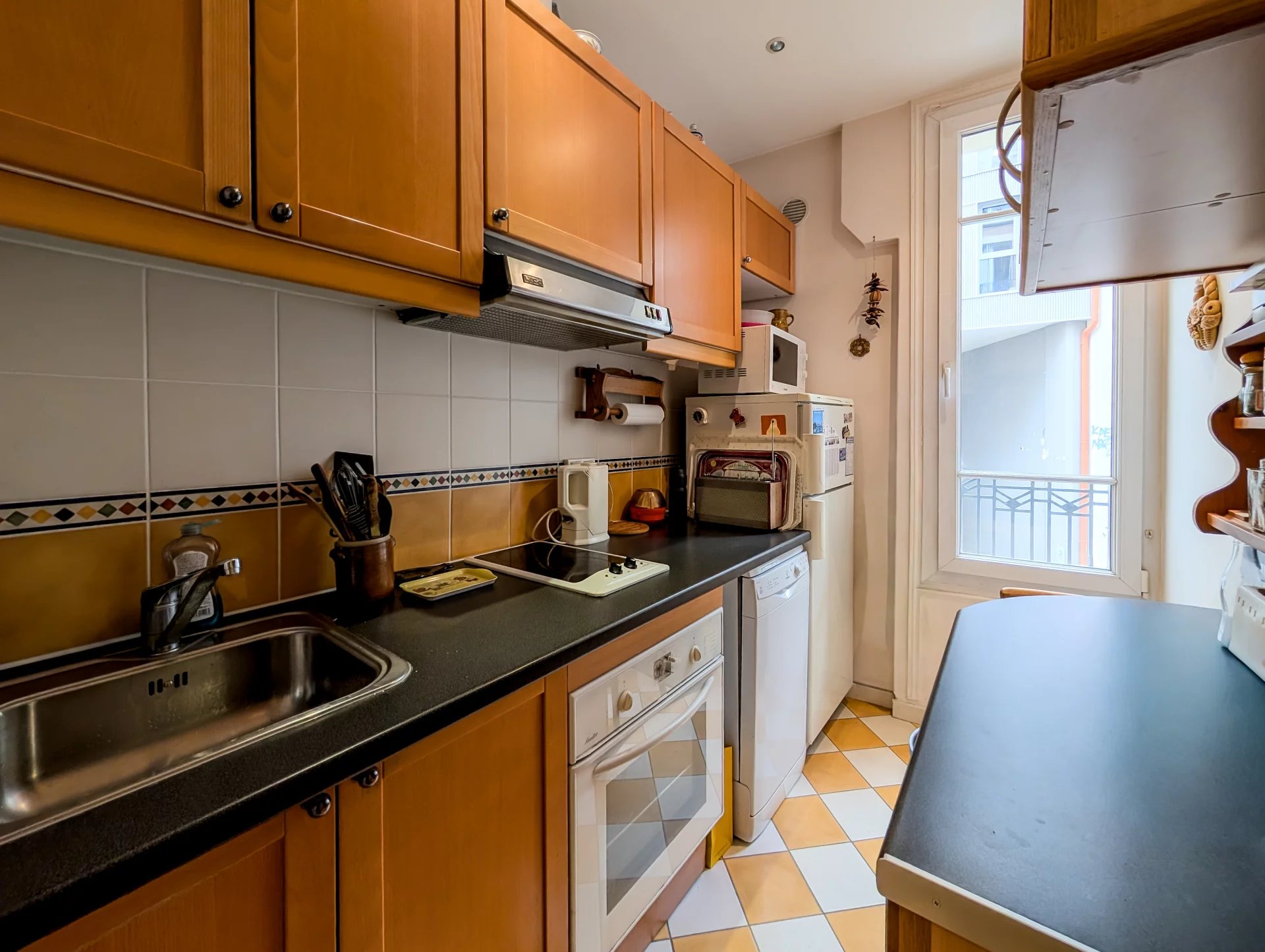 Traversant et parfaitement distribué grâce à son plan en étoile particulièrement fonctionnel, cet appartement séduit par tout le charme de l’ancien : parquet, belle hauteur sous plafond et volumes agréables. Il se compose d’une entrée, d’un séjour sur rue, d’une chambre au calme sur cour, d’une cuisine indépendante équipée, d’une salle d’eau ainsi que de WC séparés.