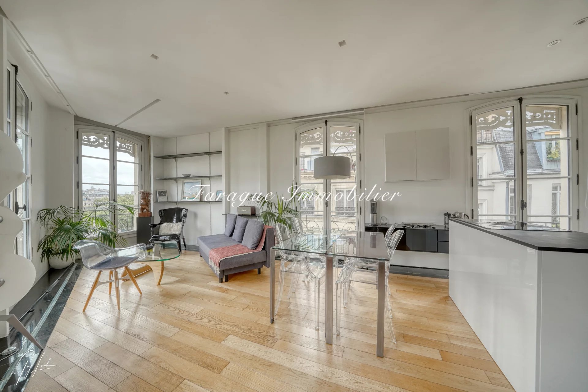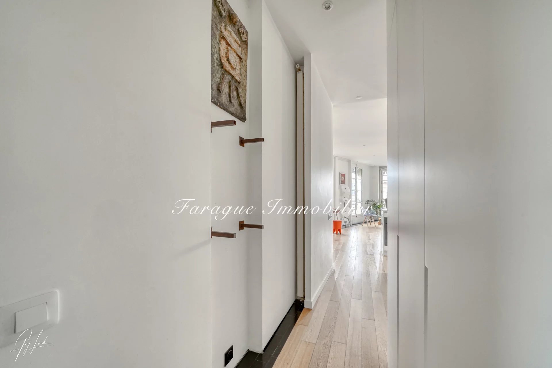 840 000 €Entre élégance intemporelle et confort contemporain, cet appartement rare proposé en exclusivité s’impose comme une adresse de choix pour les amoureux du Paris authentique et raffiné, perché au quatrième étage d’un immeuble ancien sans ascenseur il profite d’une position dominante qui lui confère calme absolu, luminosité généreuse et une atmosphère singulière, dès l’entrée un dégagement harmonieux distribue une salle de bain élégante ainsi que des toilettes indépendantes et ouvre face à une première chambre dotée d’une véranda intimiste, le couloir s’étire ensuite vers une seconde chambre lumineuse avant de dévoiler un vaste séjour d’angle de plus de trente-deux mètres carrés où s’intègre une cuisine ouverte aux lignes contemporaines, l’espace de réception baigné de lumière est magnifié par de larges baies vitrées qui cadrent l’une des vues les plus spectaculaires de la capitale, la Porte Saint-Denis se dresse ici comme un véritable tableau vivant, chaque détail de la rénovation a été pensé avec soin pour marier matériaux nobles, parquet chaleureux, finitions soignées et touches modernes, niché au cœur d’un quartier animé par ses théâtres, ses cafés et ses galeries, l’appartement conjugue la vitalité urbaine de son environnement avec le privilège rare d’un intérieur paisible, offrant à ses futurs propriétaires un bien de caractère qui incarne l’art de vivre parisien dans toute sa splendeur.