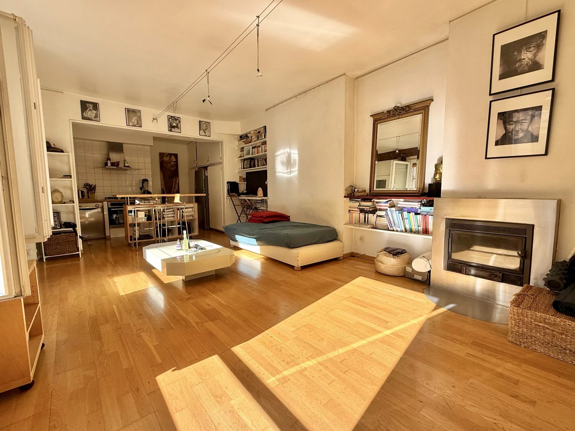 L’appartement se compose d’un séjour avec cheminée et parquet, d’une cuisine ouverte équipée, d’une chambre, d’une salle de douche avec WC et d’un dressing. Une cave complète le bien.