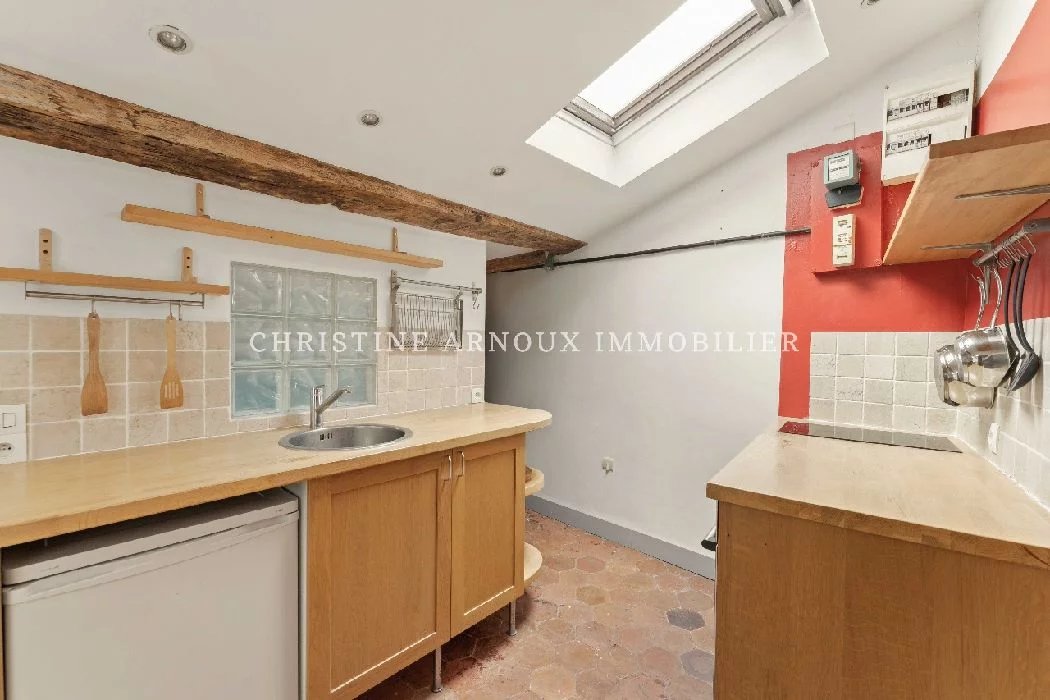 A quelques pas du Musée Picasso, perché au dernier étage d'un petit immeuble XVIIème siècle, charmant studio parfaitement optimisé qui présente : une entrée avec rangements, une cuisnie aménaée avec coin repas, une chambre en alcôve et une salle de bains avec baignoire.