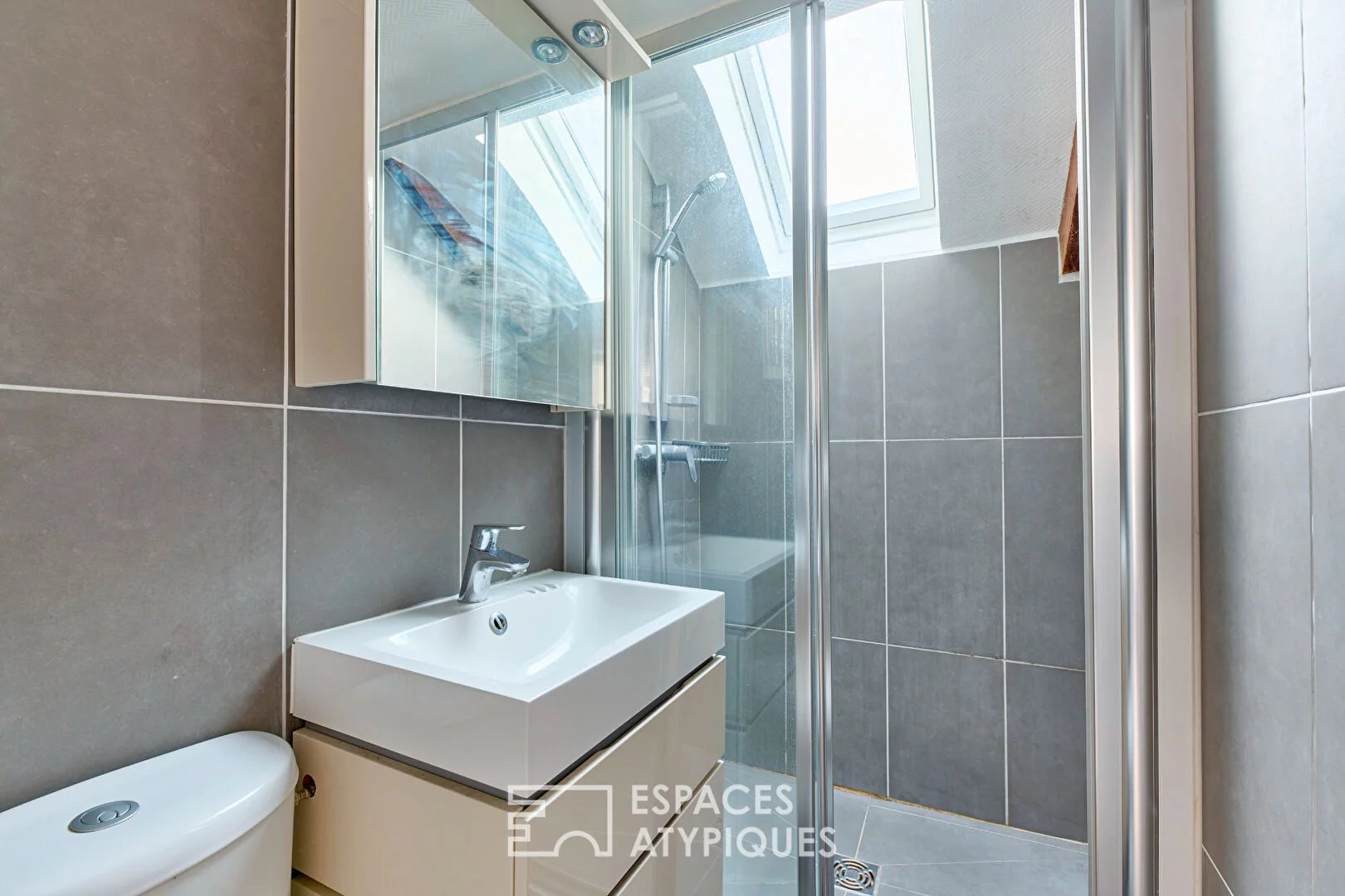 Au coeur de l'un des quartiers les plus recherchés de la capitale, cet appartement incarne l'équilibre rare entre refuge sous les toits et panorama parisien, idéal pour un premier achat ou un pied à terre.