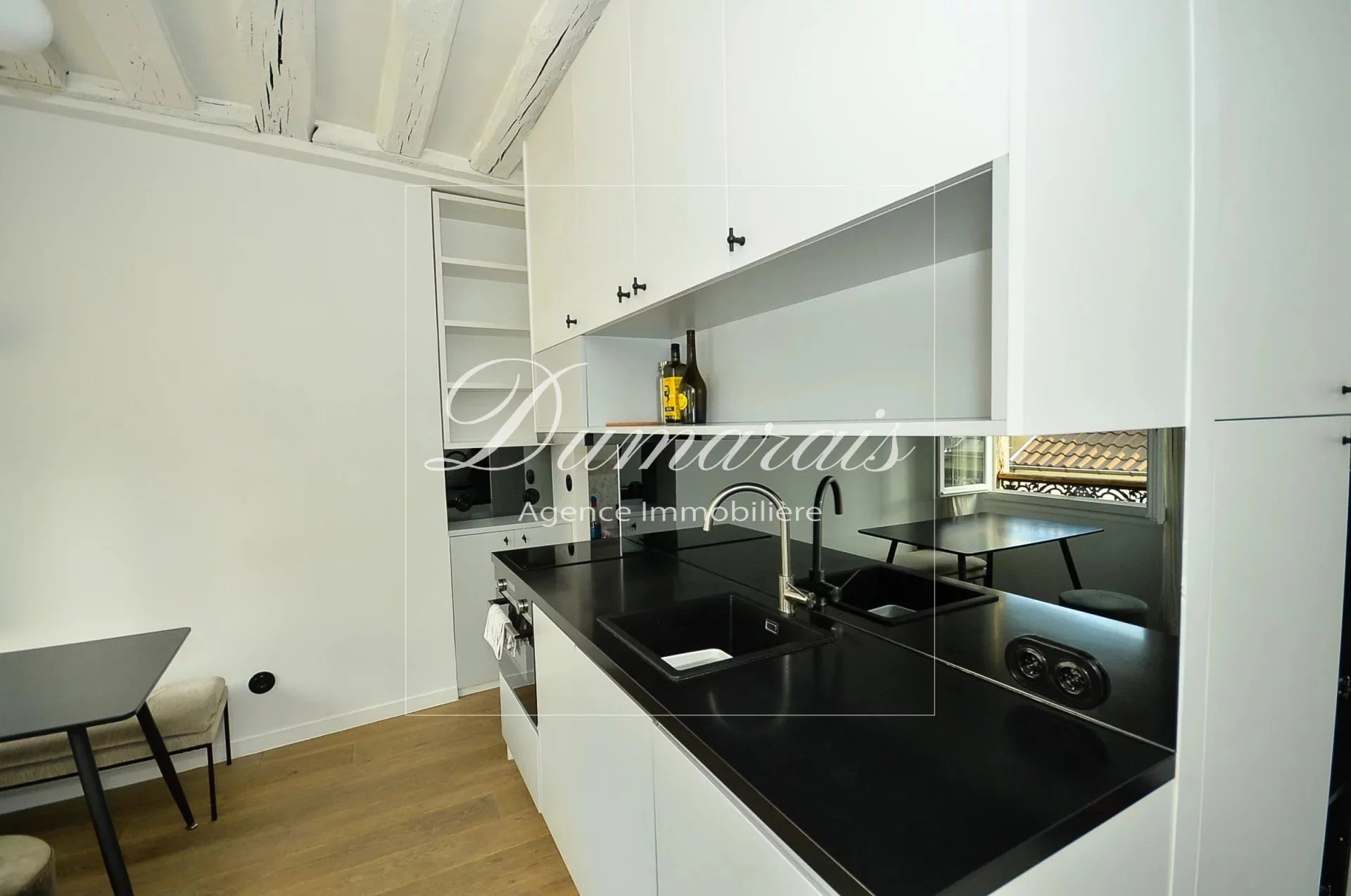 - COEUR DU MARAIS - Appartement 2 pièces entièrement rénové par architecte d'une surface de 23 m2 (dont 19.35 m2 Carrez) , exposé plein sud, au 4ème étage. Il se compose d'une entrée avec rangements, un séjour lumineux avec 2 fenêtres, une belle cuisine ouverte, une chambre avec rangements, salle d'eau avec douche et toilettes. Idéal primo-accédant ou investissement locatif.Parfaitement rénové avec matériaux de qualité.