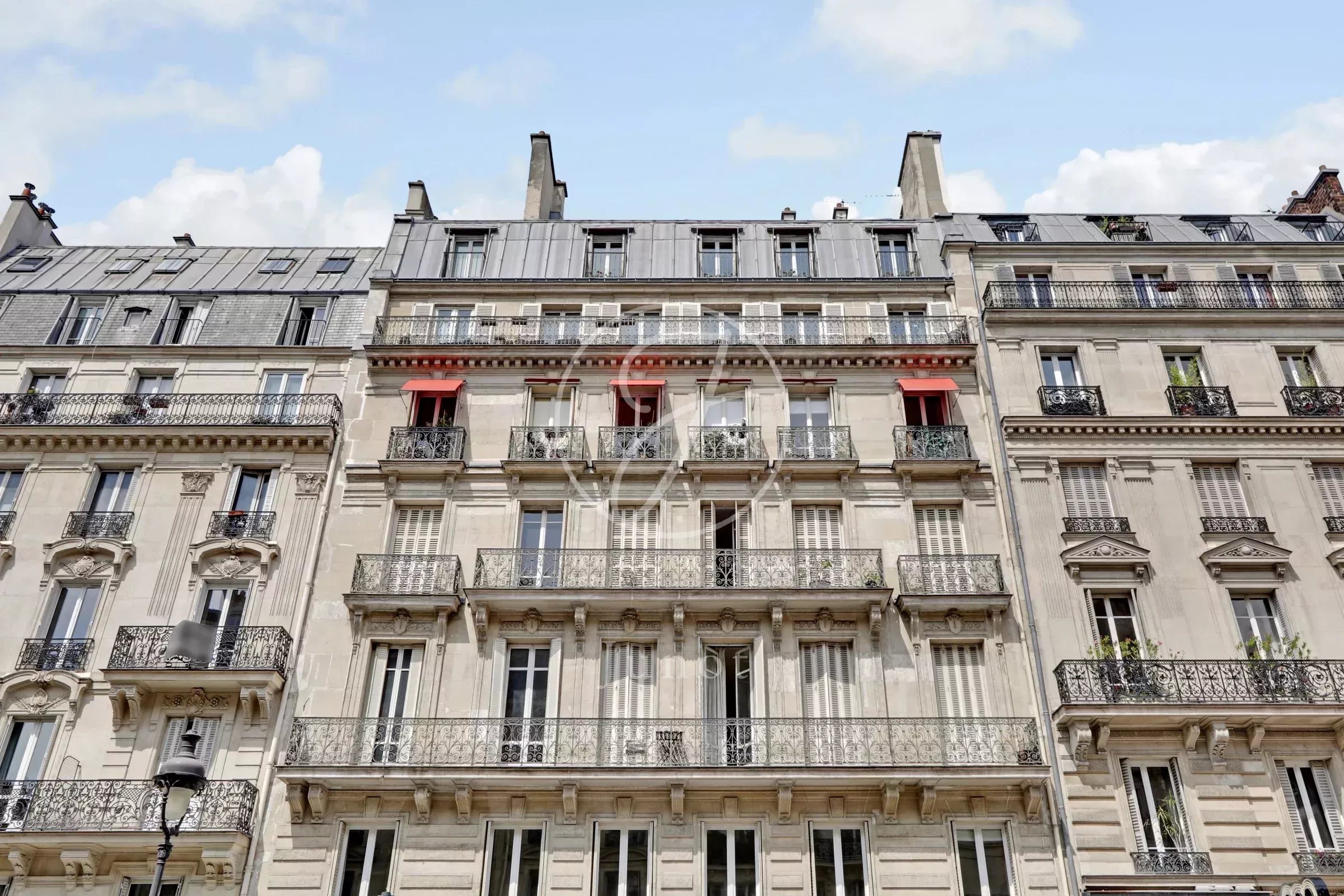 appartement rénové se situe dans un immeuble haussmannien en pierre de taille édifié en 1878.