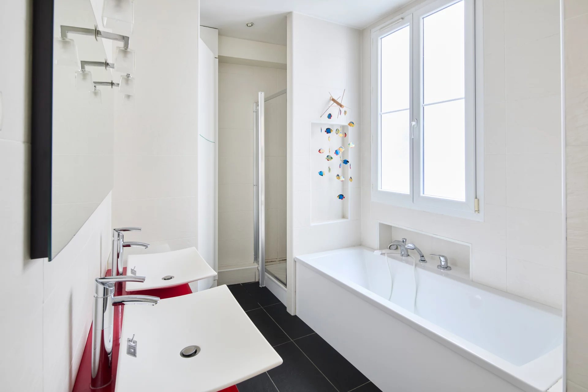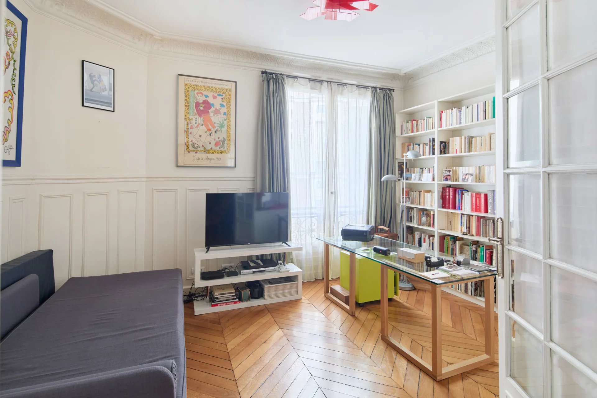 Au cœur du très recherché marché Saint-Germain, rue Montfaucon, un appartement de 95,5 m² (loi Carrez) situé au 2ᵉ étage avec ascenseur d’un bel immeuble post-Haussmannien. Il se compose comme suit :
