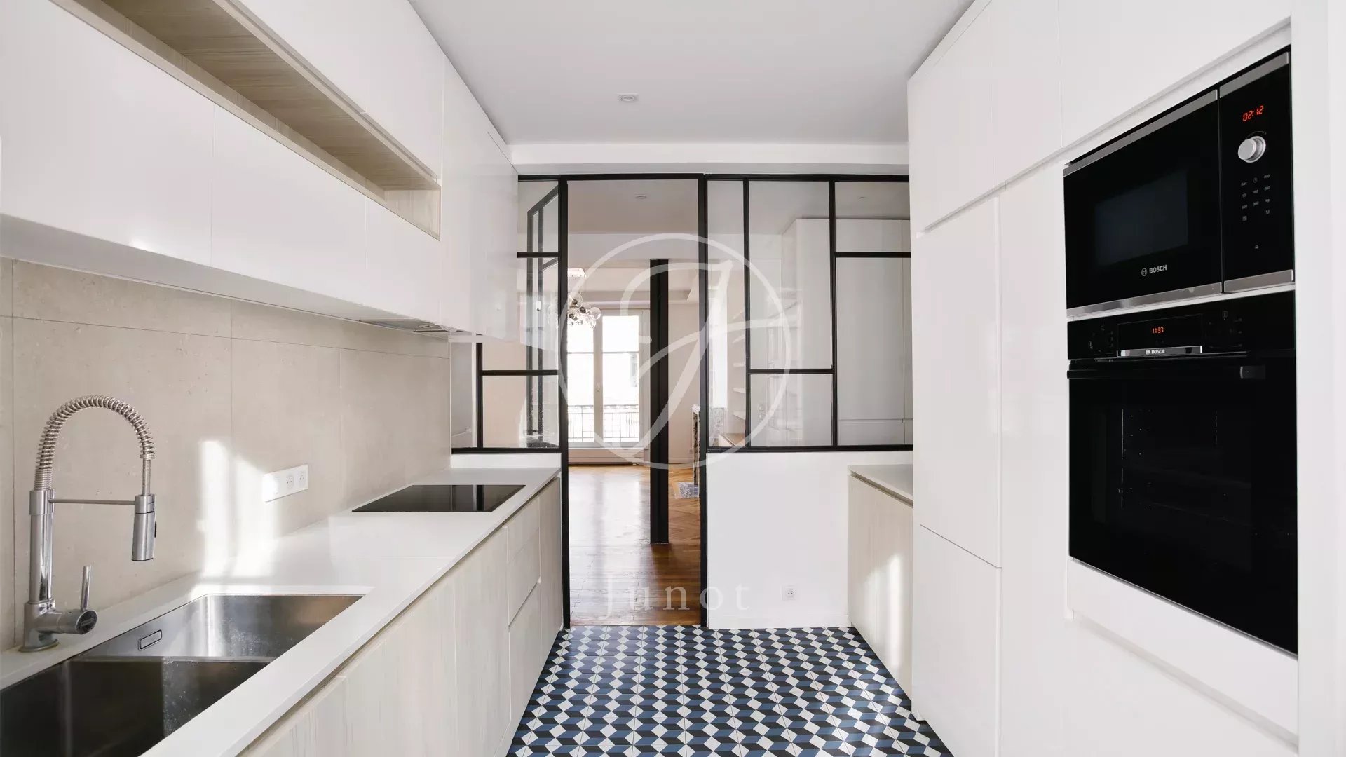 Rénové avec goût et des matériaux de qualité, il comporte une double réception d'environ 55m² avec cheminée, une grande cuisine dînatoire avec verrière à proximité des réceptions, trois chambres avec dressing, une salle de bains, une salle de douche et une buanderie.