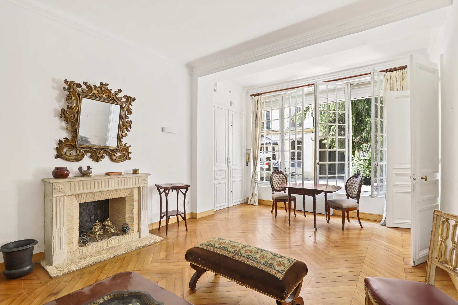 RUE DE VARENNE – Au sein d’un bel hôtel particulier, à quelques pas de l’ambassade d’Italie, cet élégant appartement en rez-de-chaussée séduit par ses volumes généreux (3m18 de hauteur sous plafond) et son ouverture sur une jolie cour pavée.