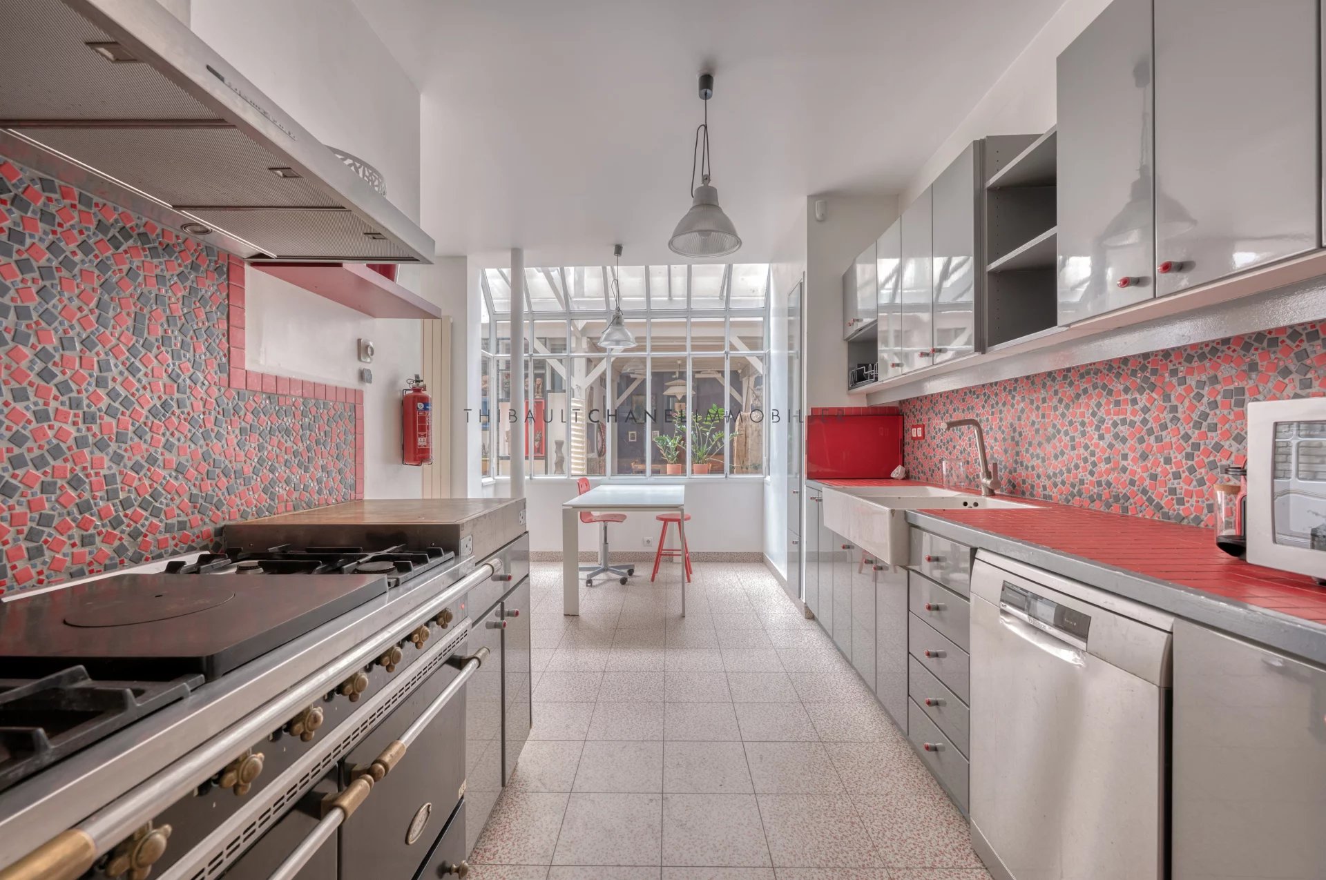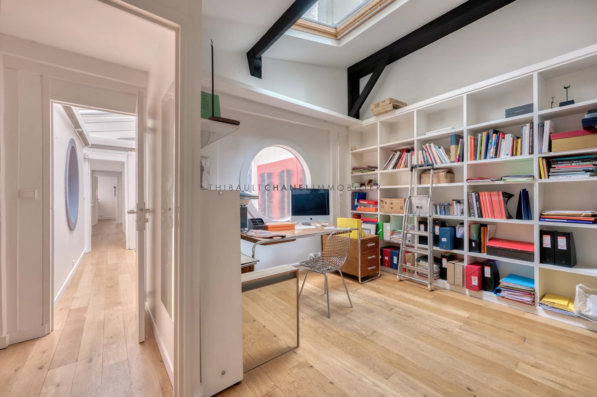 Nous vous proposons, comme une maison, niché au fond d'une cour, rue Saint Dominique, un loft spectaculaire de 240,65 m² Loi Carrez. Ce bien se compose au rez de chaussée d'une entrée, d'un salon de 83 m², d'une cuisine séparée, d'une buanderie, d'un bureau, d'une bibliothèque, d'une salle d'eau et de toilettes séparés. A l'étage par l'escalier d'origine qui date de 1880, 3 chambres, un bureau et 2 salle de bains avec des toilettes. Un box qui jouxte le loft et une cave complètent ce bien. Ce loft d'exception, vous séduira par ses volumes incroyables, sa belle hauteur sous plafond allant jusqu'à 5m40, sa luminosité, son calme, son charme, son coté secret et privilégié.