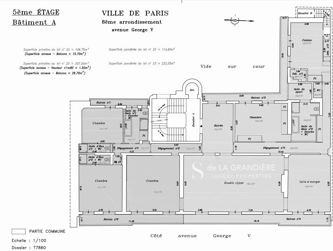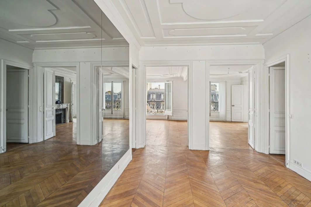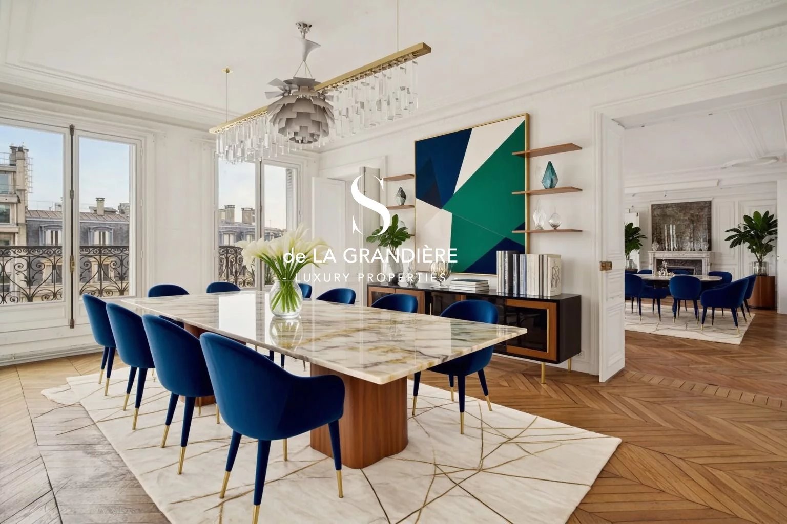7 800 000 €Avenue George V, à deux pas des Champs-Elysées et du célèbre Fouquet's, en étage élevé, surplombant les arbres et les toitures parisiennes d'immeubles luxueux, cet élégant appartement de 315 m² seul au au 5ème étage d’un immeuble de grand standing se compose de : galerie d’entrée, vaste double séjour de près de 70 m2 avec cheminée, salle à manger, 4 grandes chambres, deux salles de bains, deux salles de douche, 4 WC. Les balcons filants autour de l'appartement offrent une surface extérieure totale de 46 m². Traversant et baigné de soleil, il séduit par ses volumes, sa hauteur sous plafond de 2,9 m et son élégance classique. Une cave complète ce bien. Libre immédiatement, il constitue le lieu idéal pour créer une résidence prestigieuse sur mesure. Une opportunité rare dans l’un des quartiers les plus recherchés de Paris.