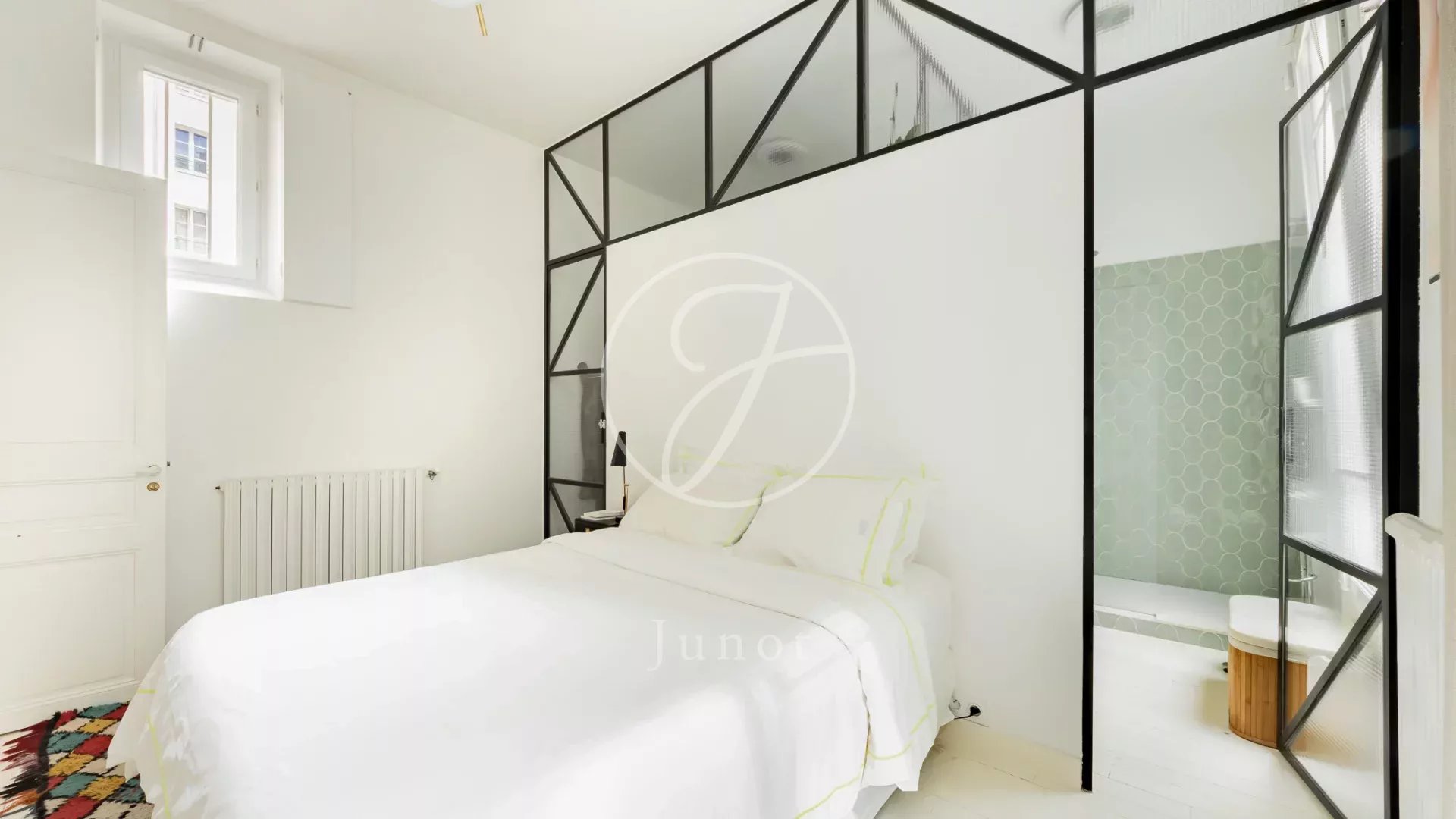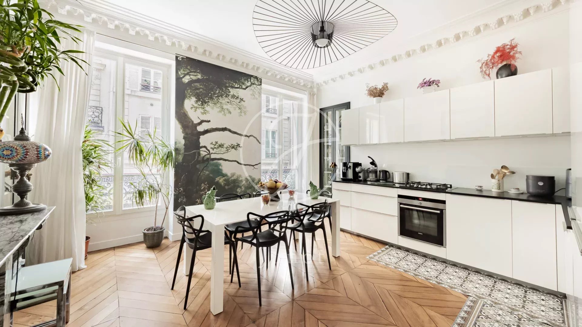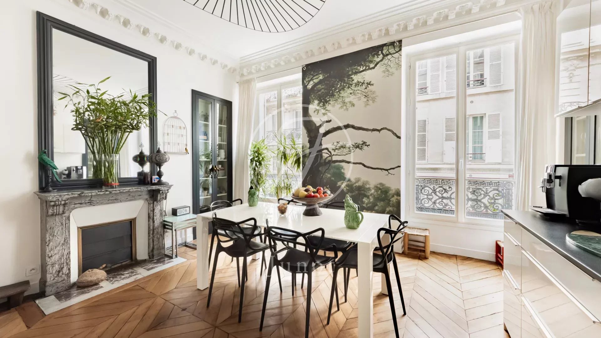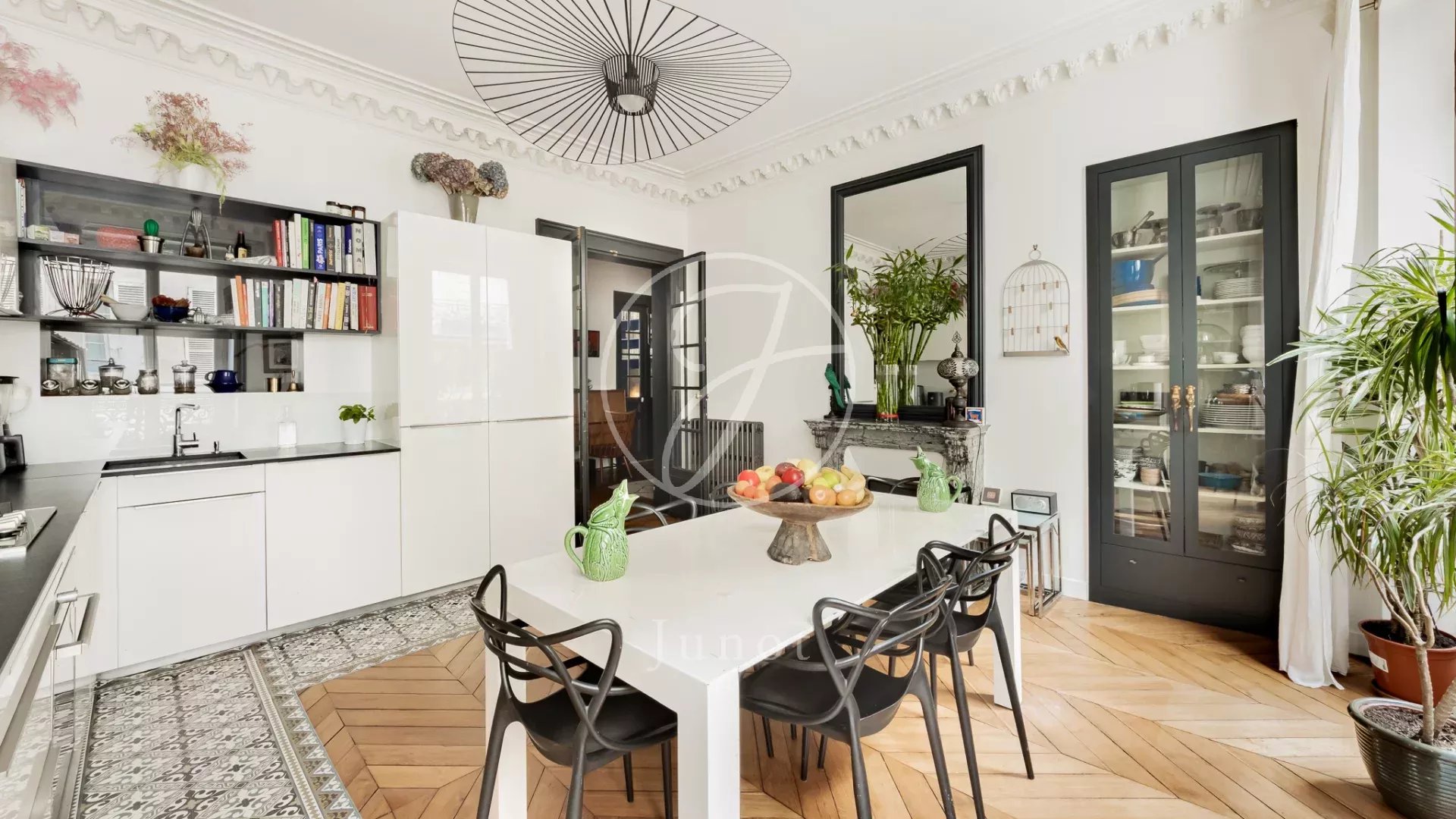 Le cachet de l’ancien est préservé avec un magnifique parquet d’époque en point de Hongrie, des moulures et une cheminée. Les volumes généreux (3m de hauteur sous plafond et plus) confèrent à ce bien une atmosphère unique.