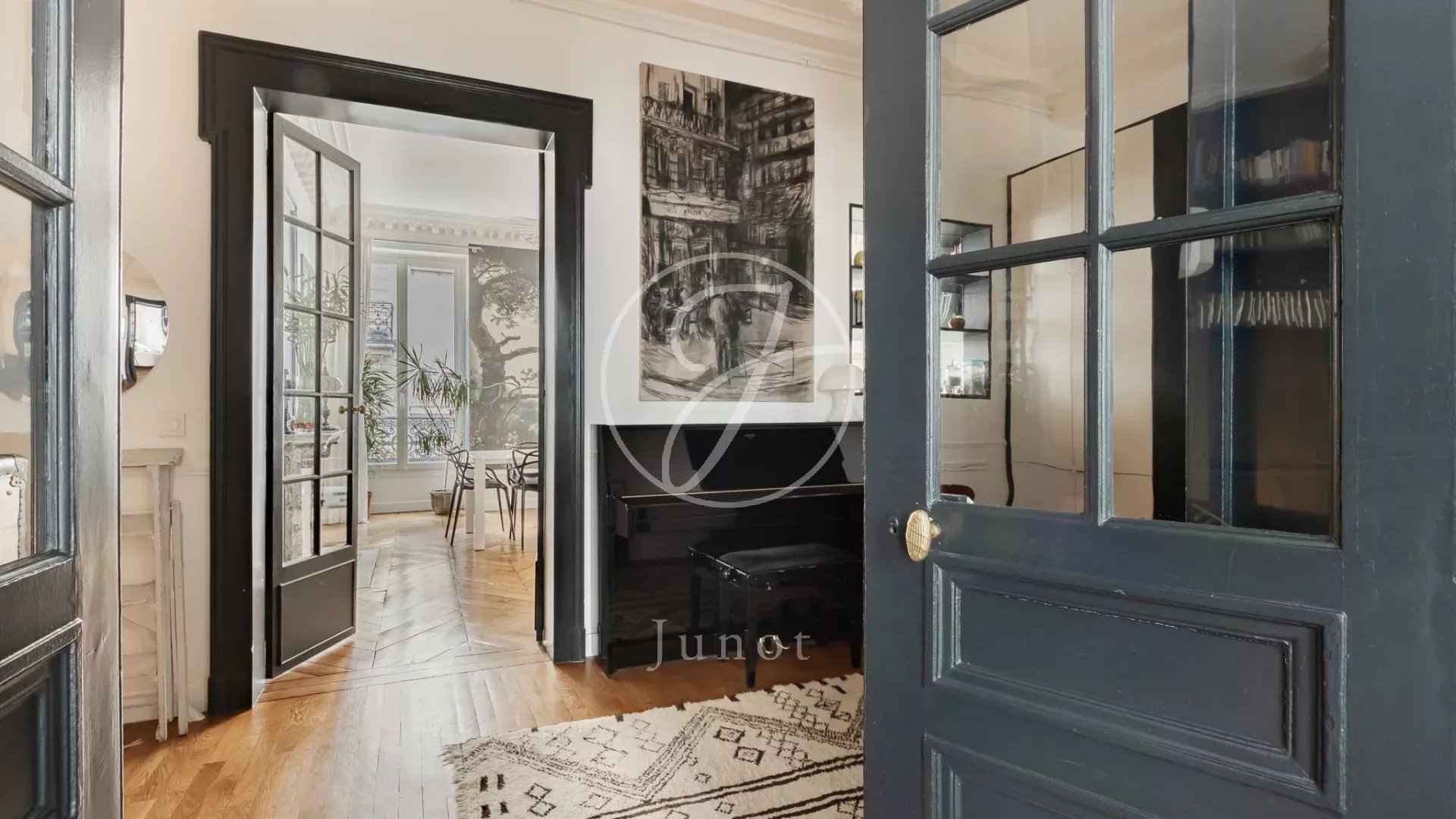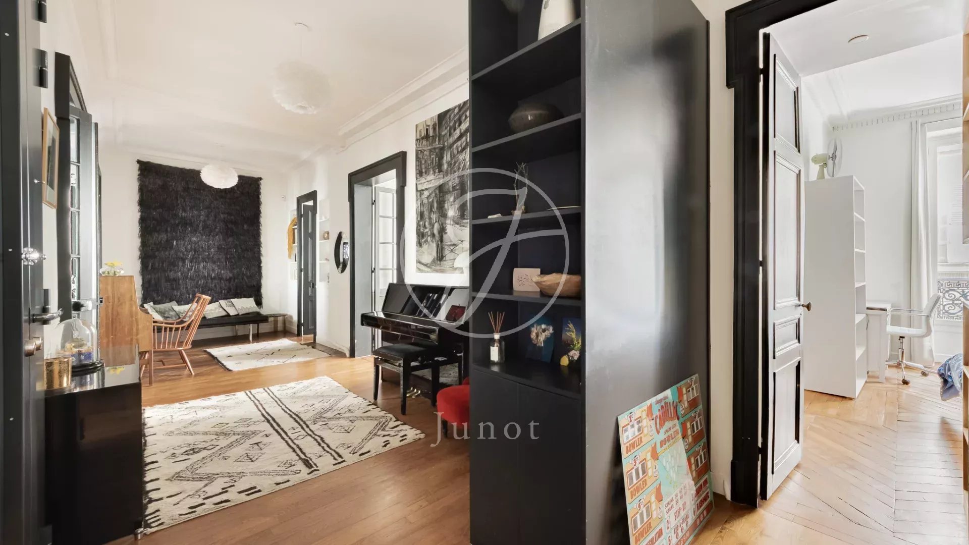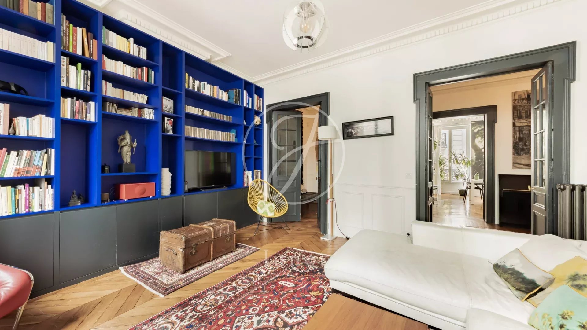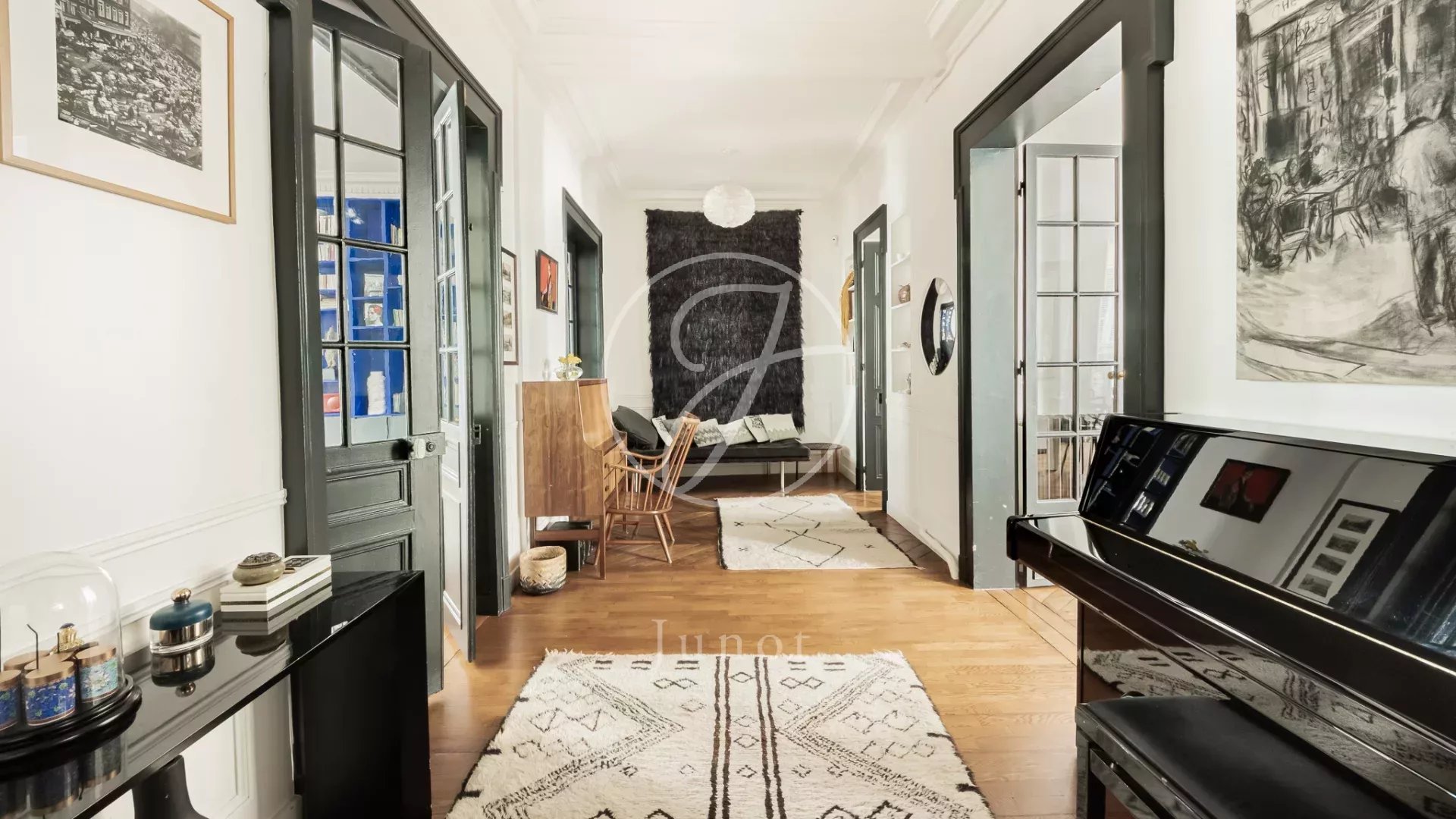 Situé dans un bel immeuble en pierre de taille, cet élégant appartement familial et de réception de 137,45m² loi Carrez (141,15m² au sol) séduit par son charme et son agencement traversant.