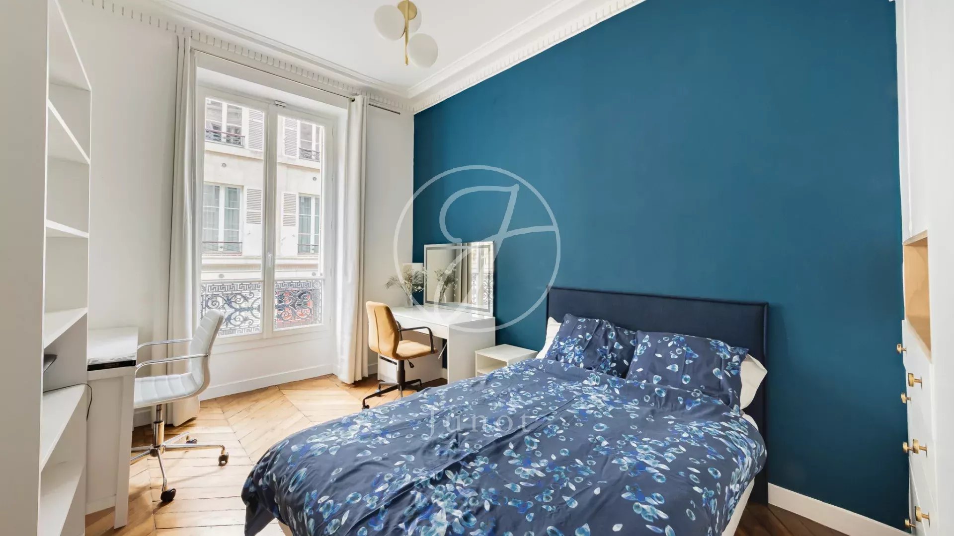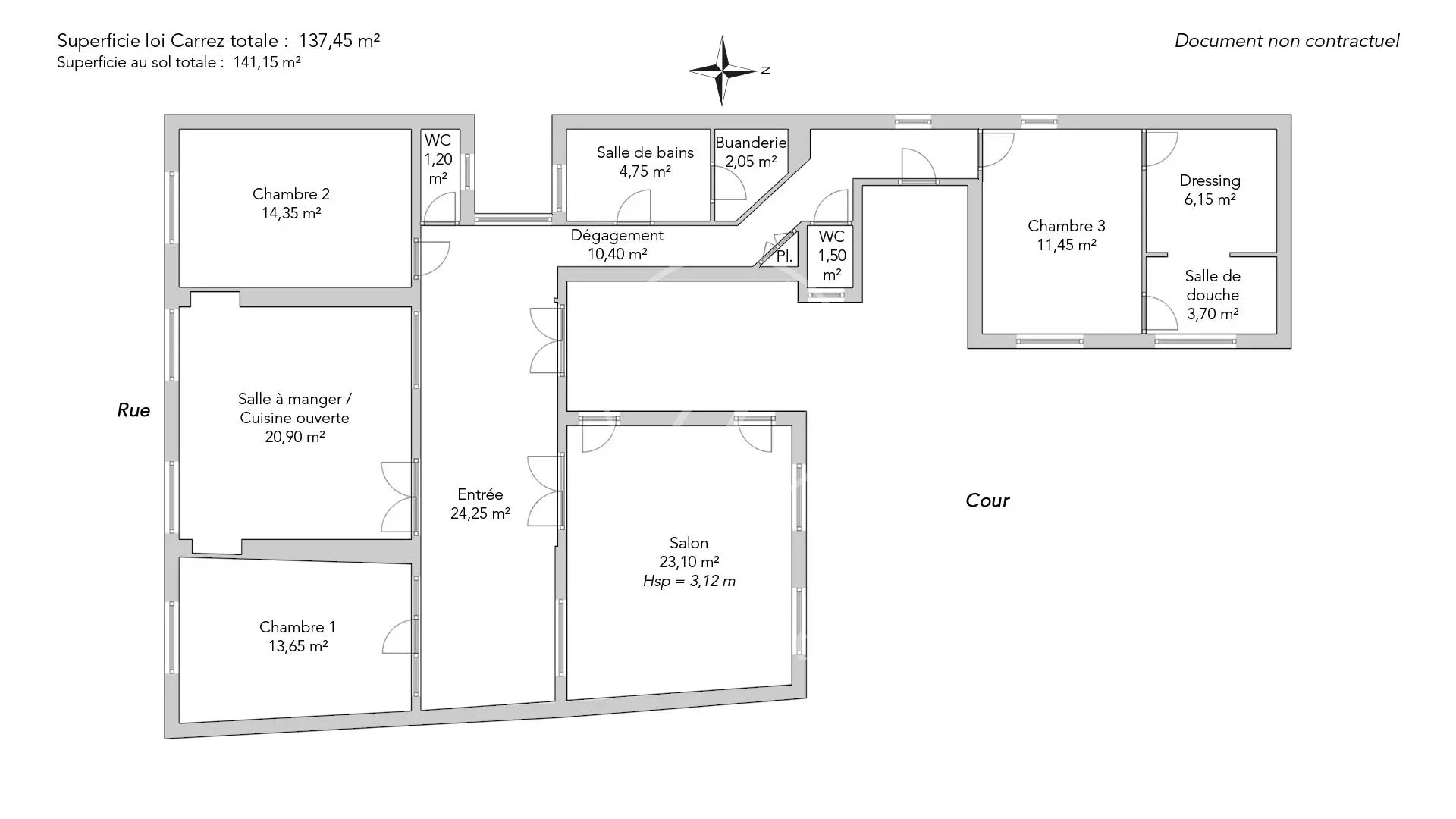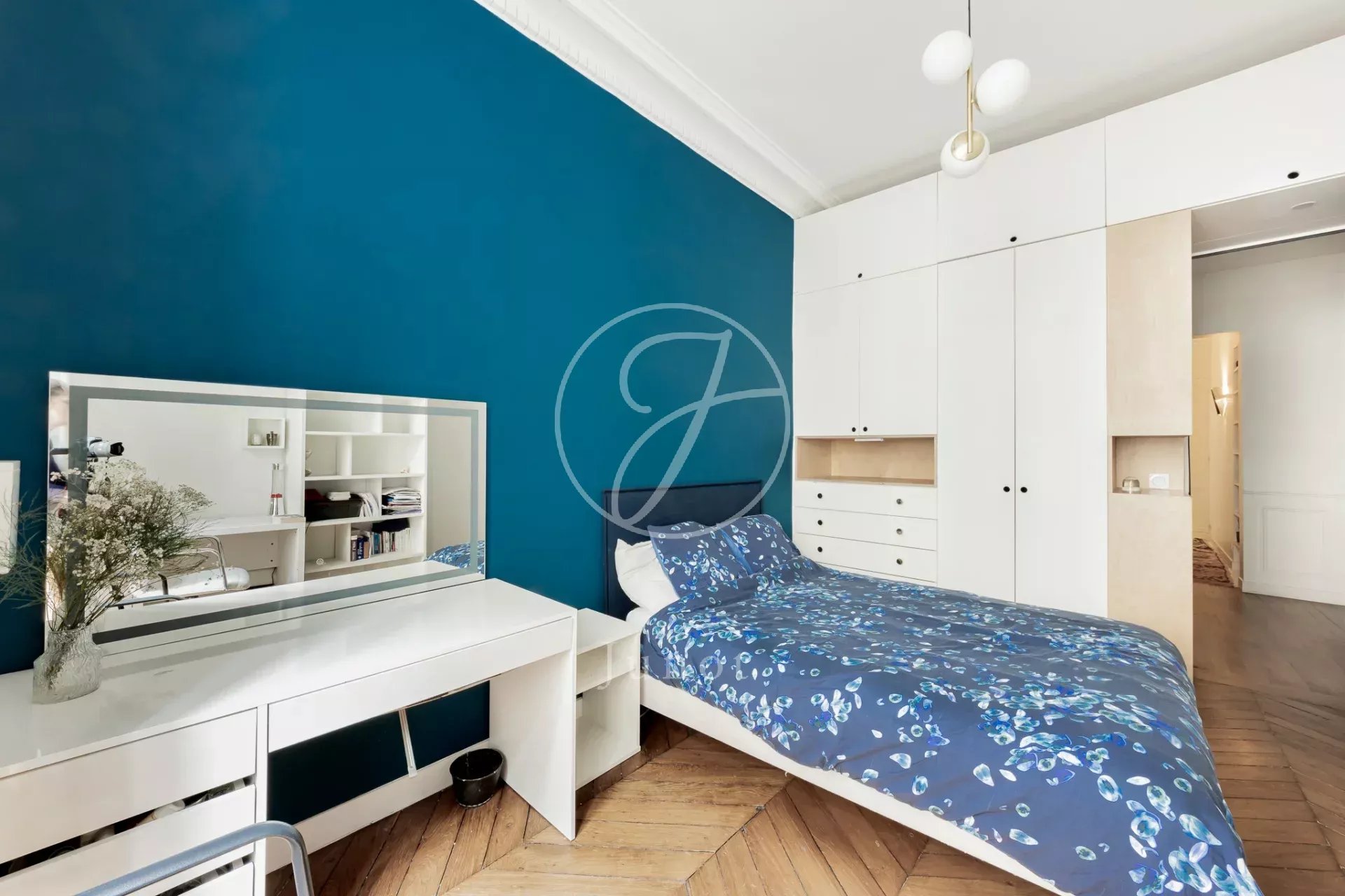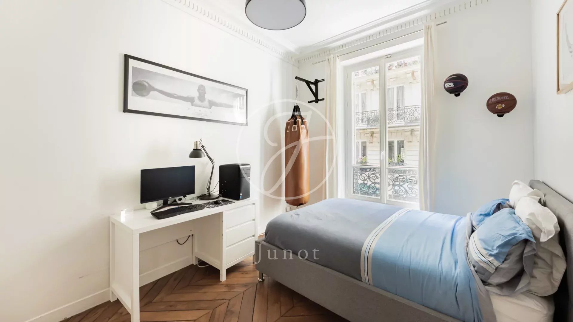Situé dans un bel immeuble en pierre de taille, cet élégant appartement familial et de réception de 137,45m² loi Carrez (141,15m² au sol) séduit par son charme et son agencement traversant.