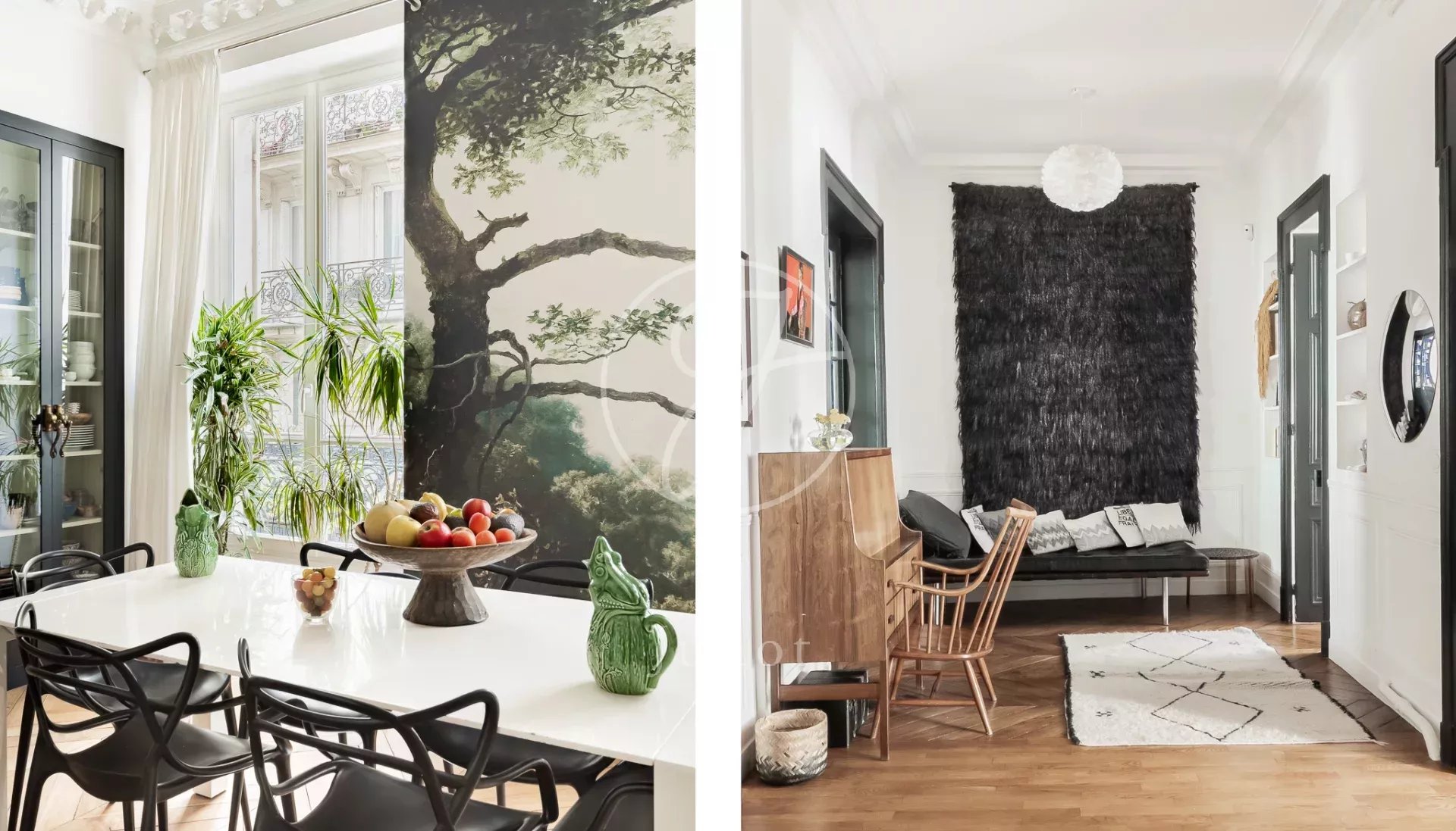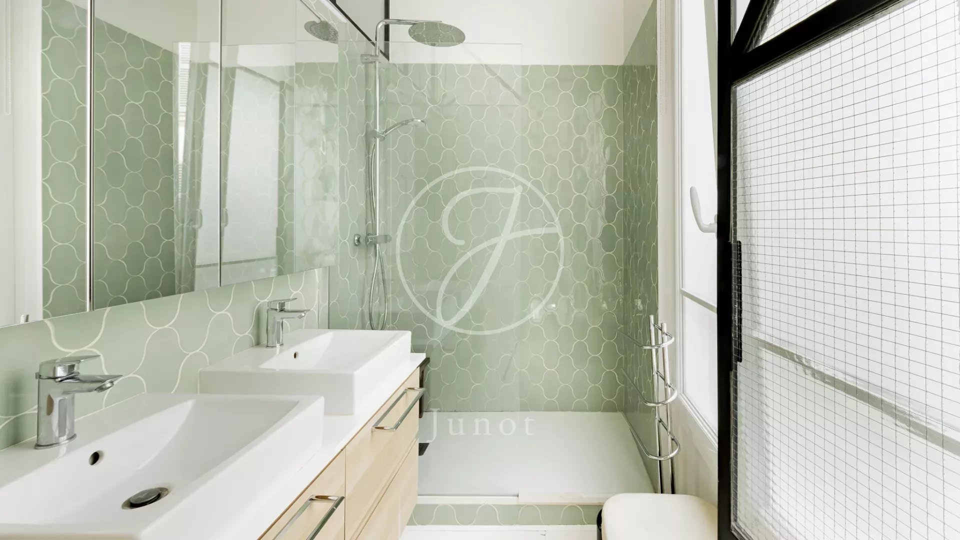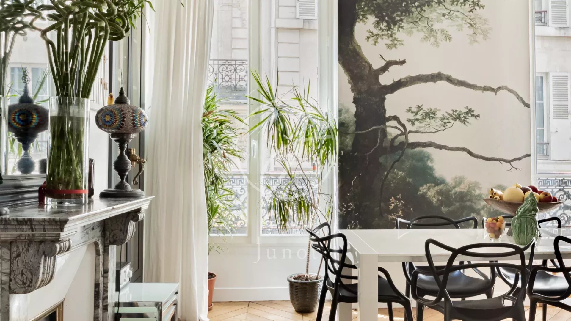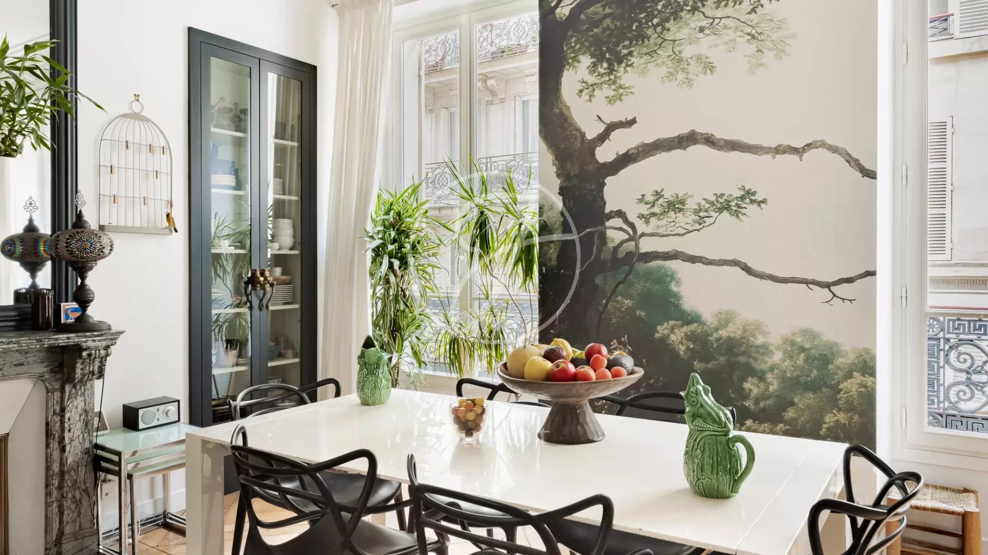 Il s'ouvre sur une vaste entrée menant à une agréable cuisine salle à manger très conviviale, avec parquet et cheminée. Le séjour, chaleureux et intimiste, offre une vue paisible sur la cour végétalisée de l'immeuble. Côté nuit, trois belles chambres dont une suite parentale, isolée avec salle de douche et dressing, assurent confort et intimité. Une salle de bains avec espace buanderie, deux toilettes séparées et de nombreux rangements intégrés complètent l’ensemble.