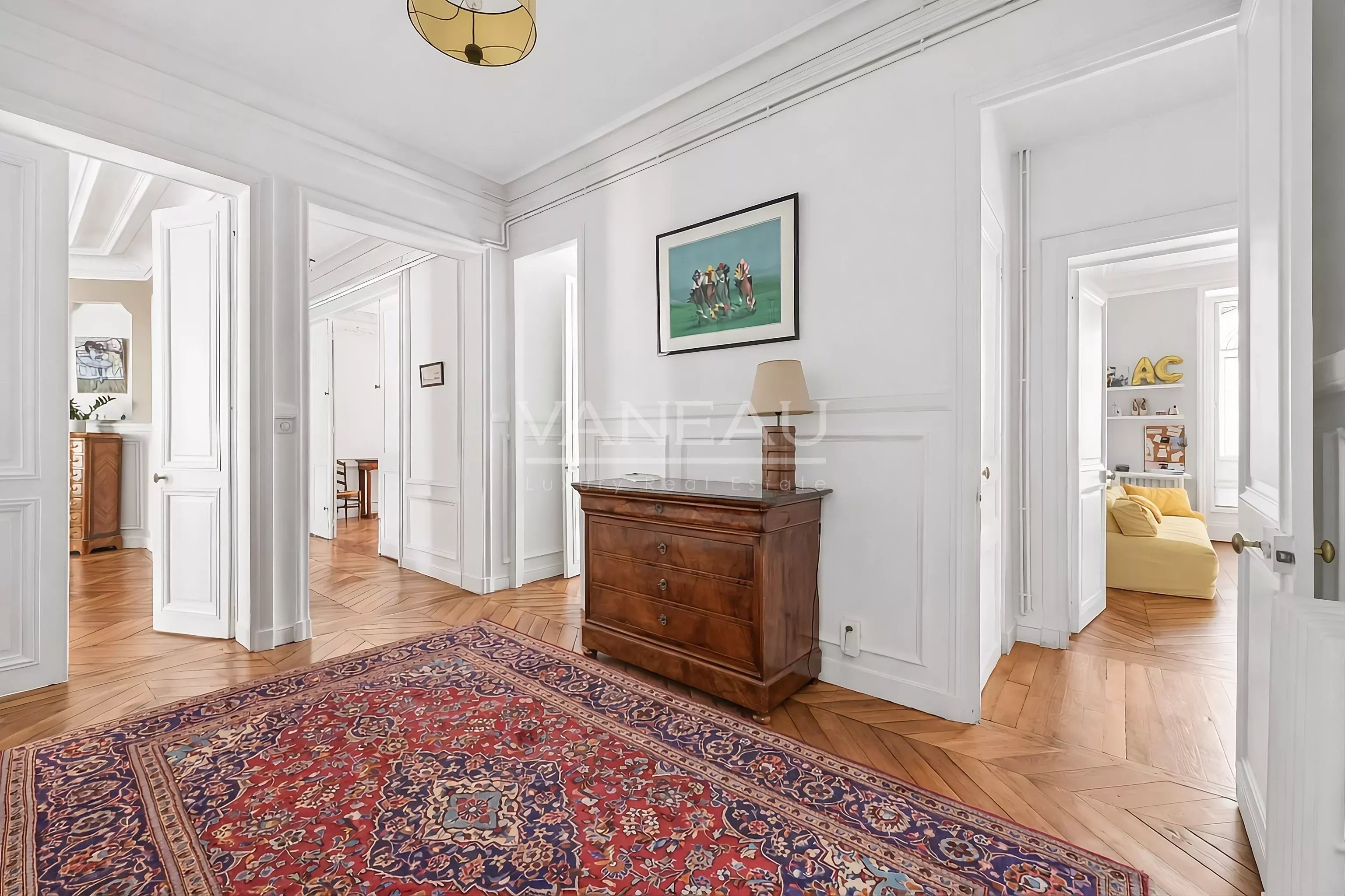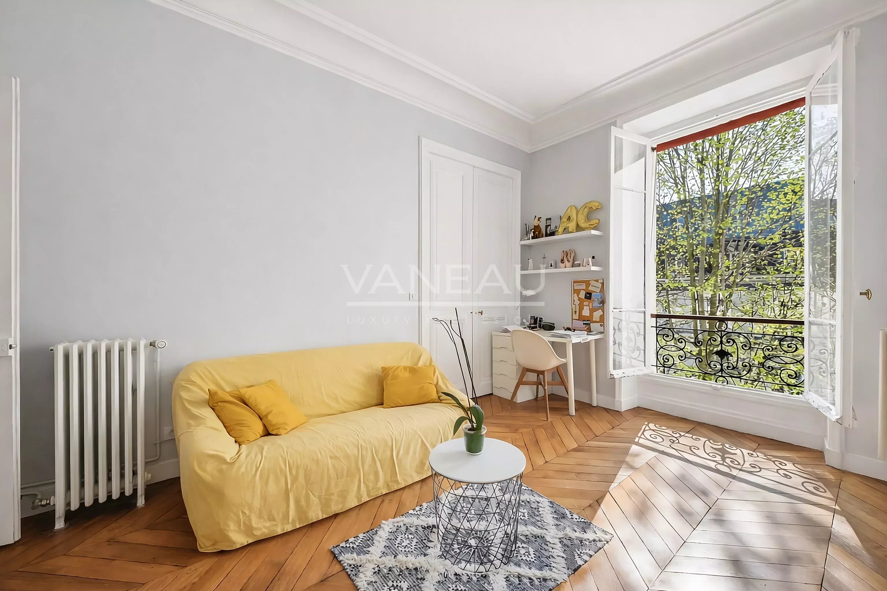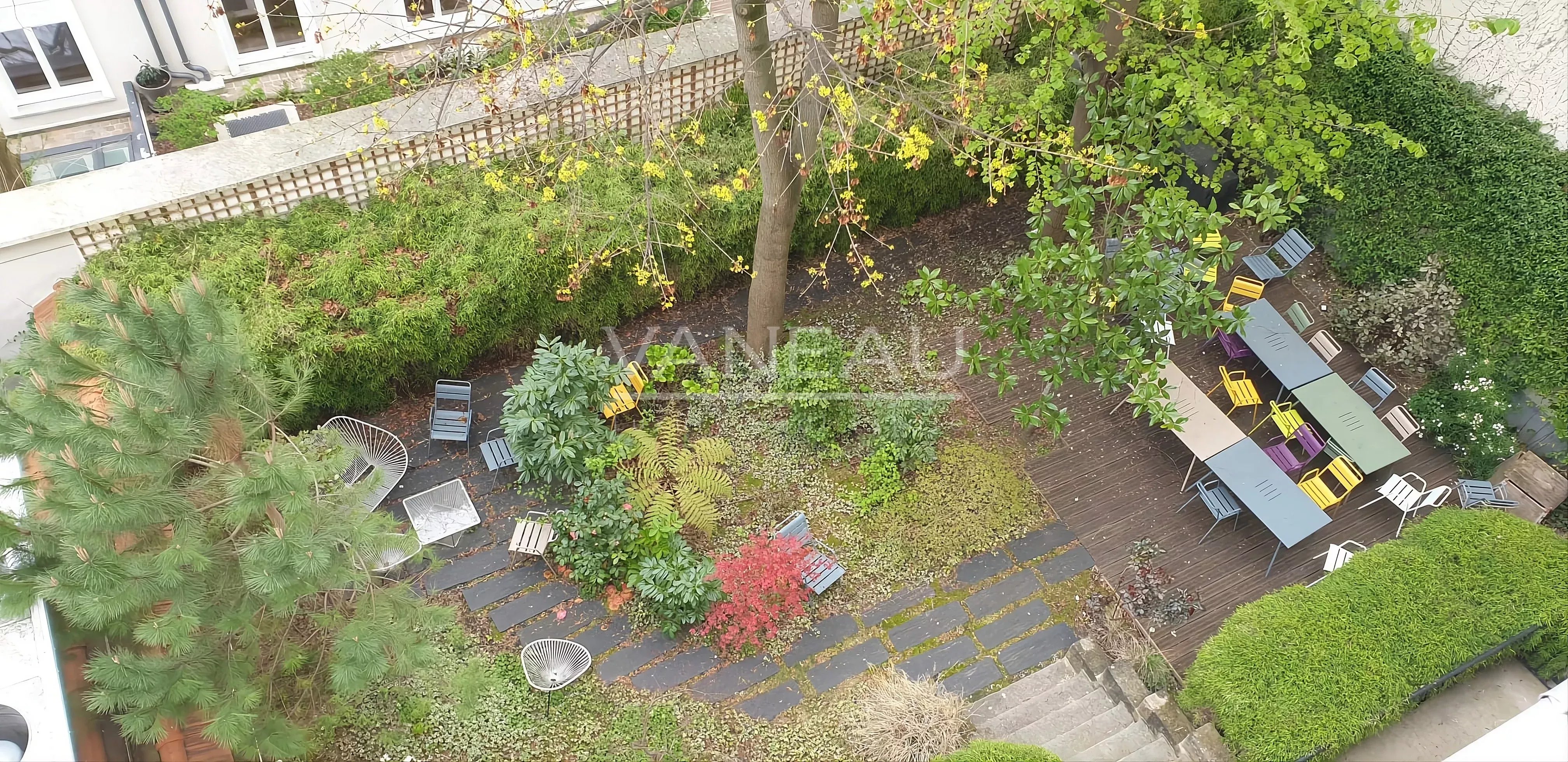 Atouts: luminosité, calme, vue jardin arboré (avec chant des oiseaux en prime), bon état d'usage (rénovation 2017) et offrant tout le cachet du bel ancien de standing (parquet point de Hongrie, moulures et cheminées) et en même temps toutes les fonctionnalités recherchées par les familles, y compris la sectorisation Collège Condorcet.