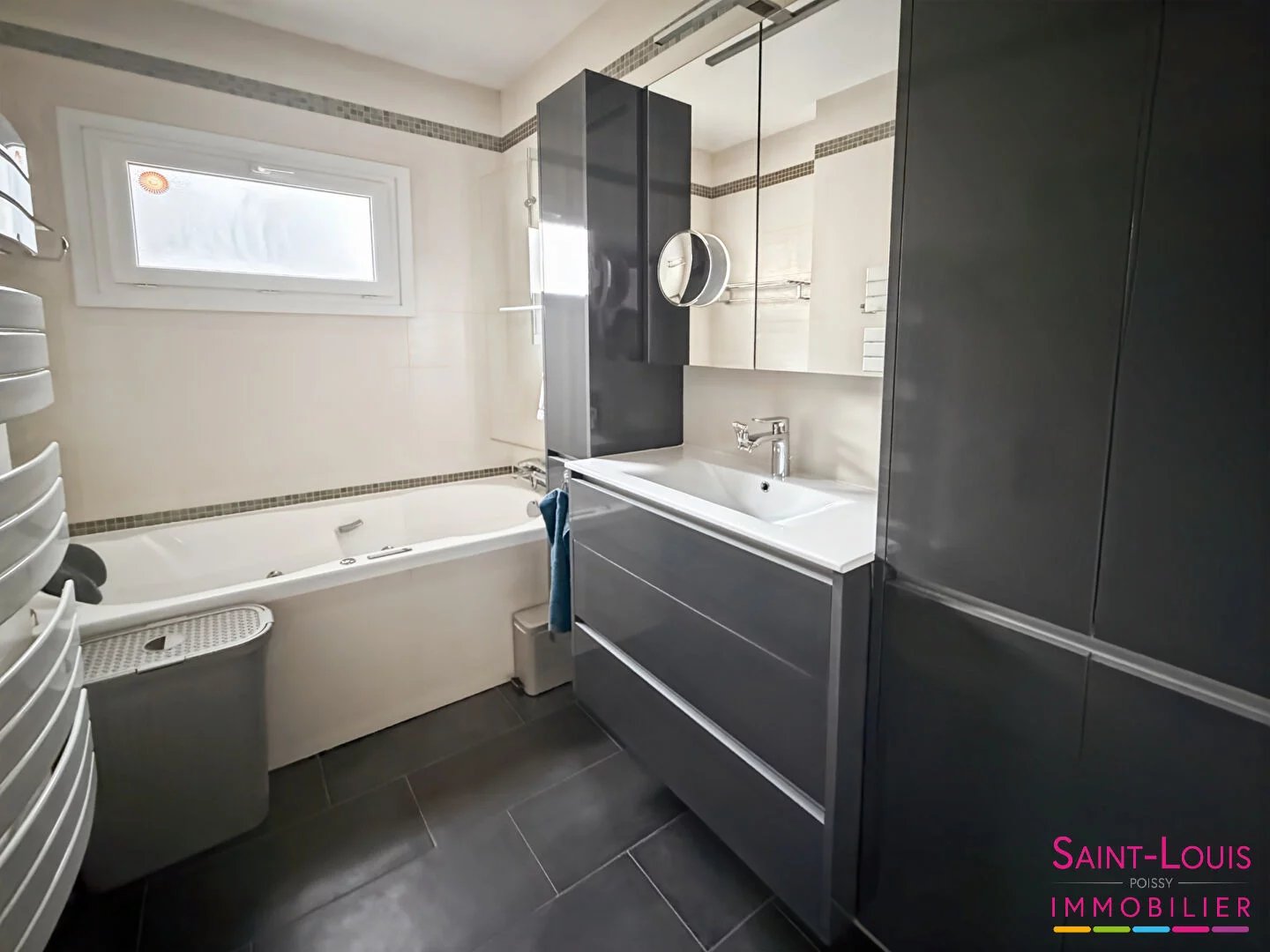 Grand F4 offrant : entrée, séjour double avec terrasse, cuisine équipée avec ilot central, 2 chambres avec balcon (possible 3), salle d'eau, salle de bains balnéo, wc. Cave et double box. Entièrement rénovés il offre des prestations de qualités, lumineux, donnant sur les jardins intérieurs, proches commerces et RER A. Venez vite le découvrir