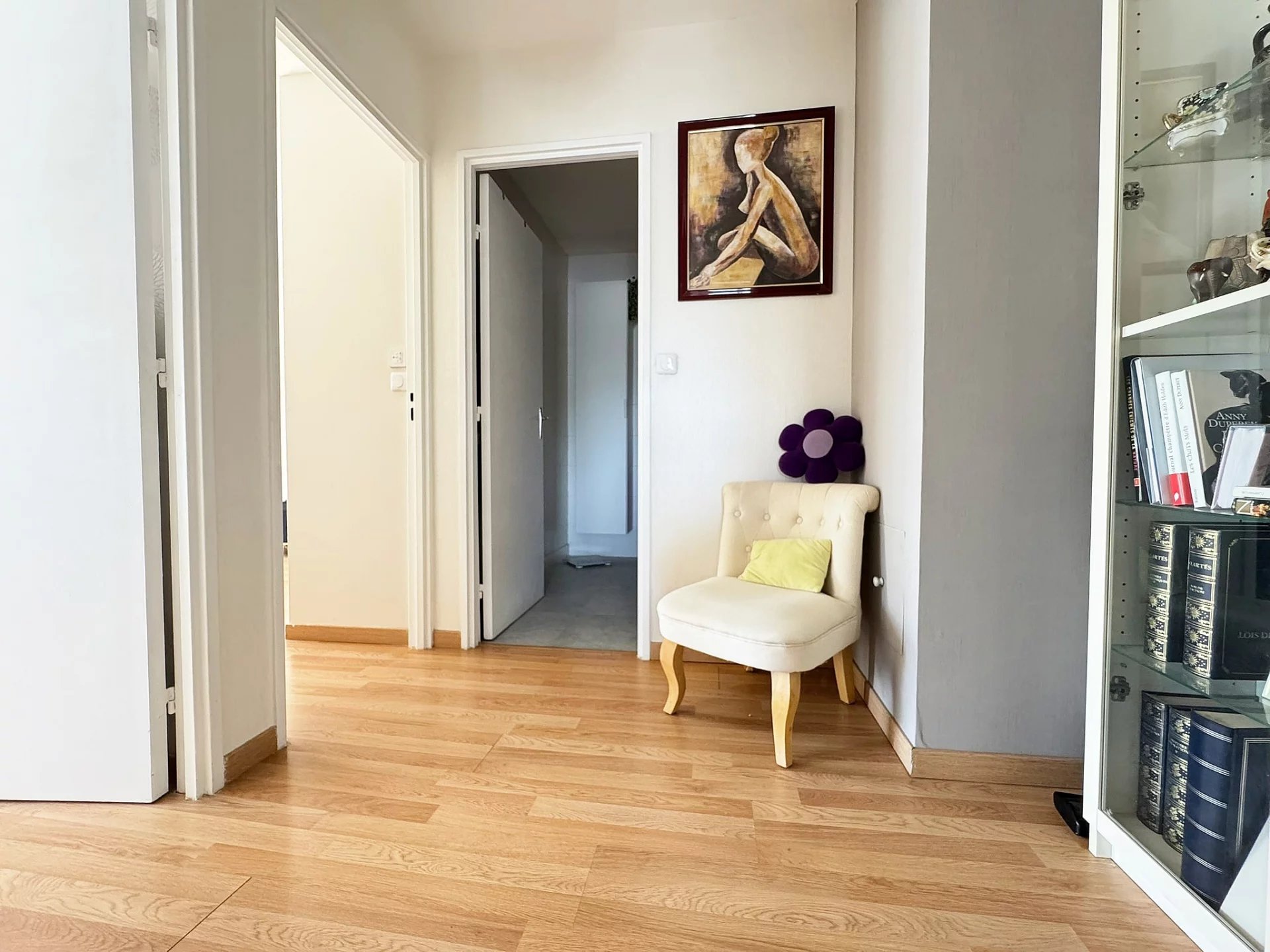 Entrée avec grand placard, séjour double ouvert sur le premier balcon, cuisine aménagée et équipée, wc séparé avec espace pour la machine à laver et rangement, dégagement, 2 belles chambres avec le deuxième balcon dont une avec placard (13 m2 / 13 m2).