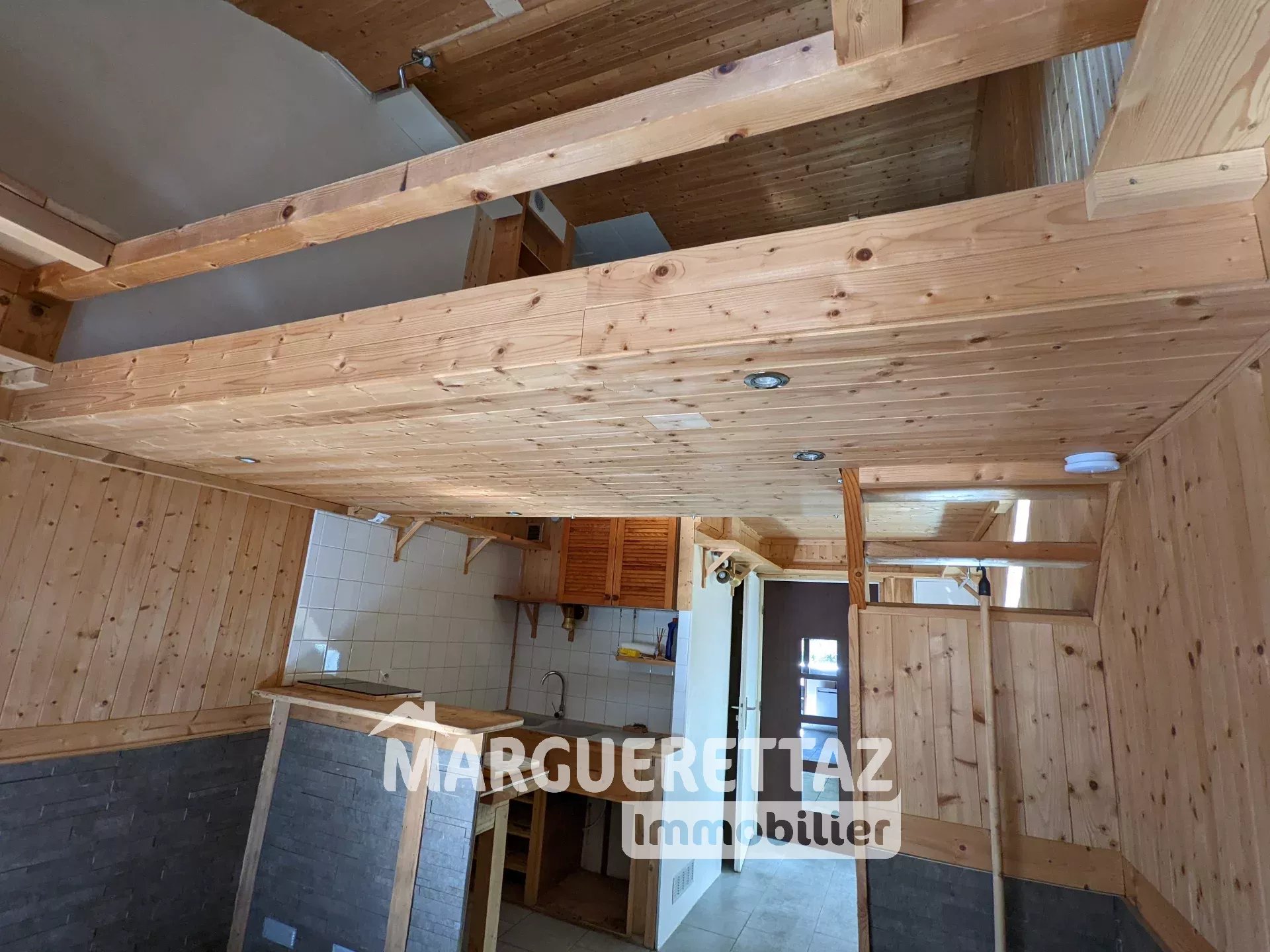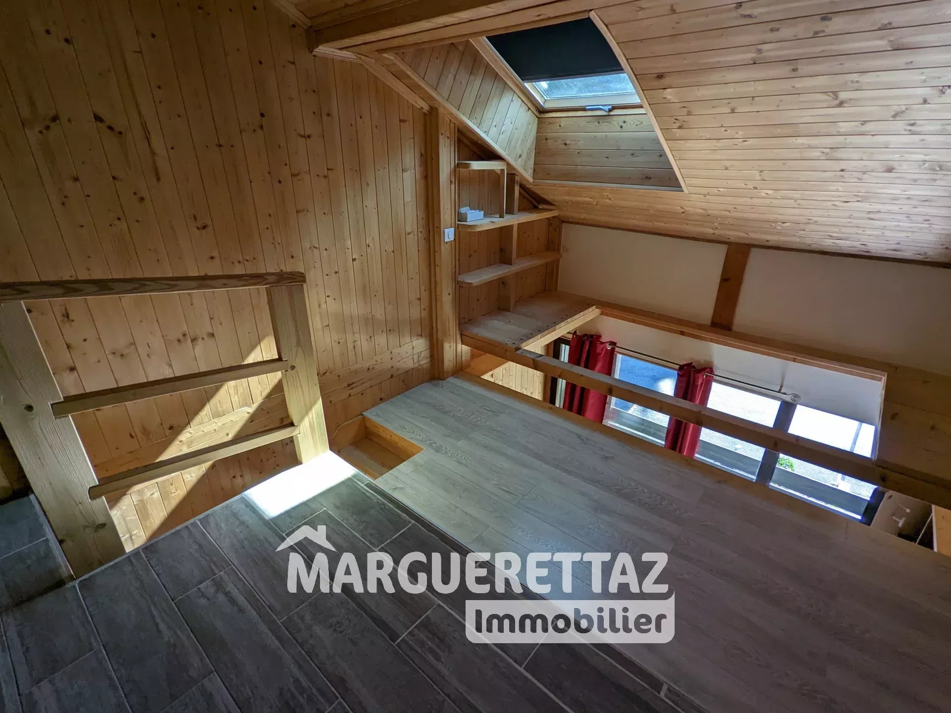A l'étage : la mezzanine ou se trouve la chambre et la salle de douche.